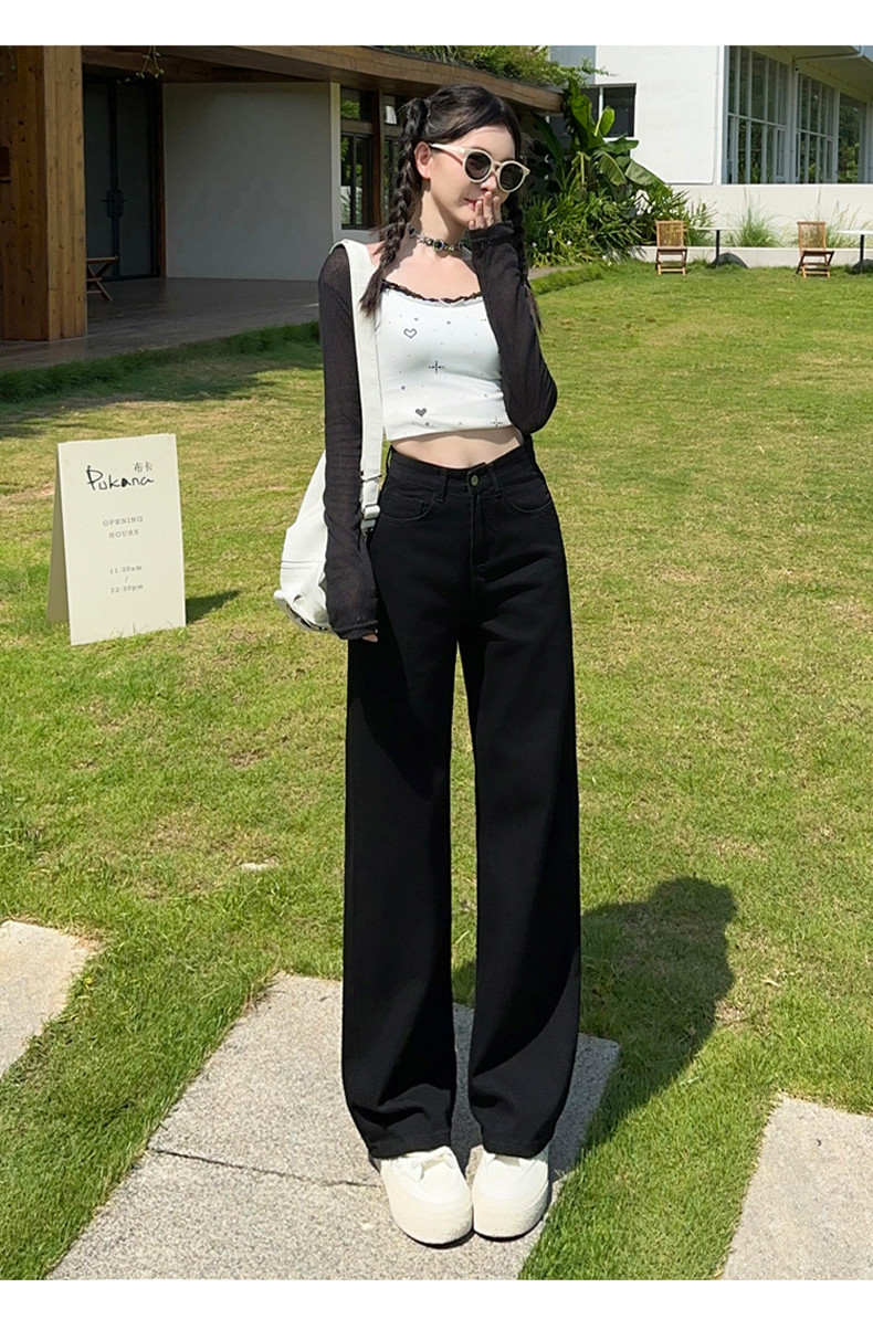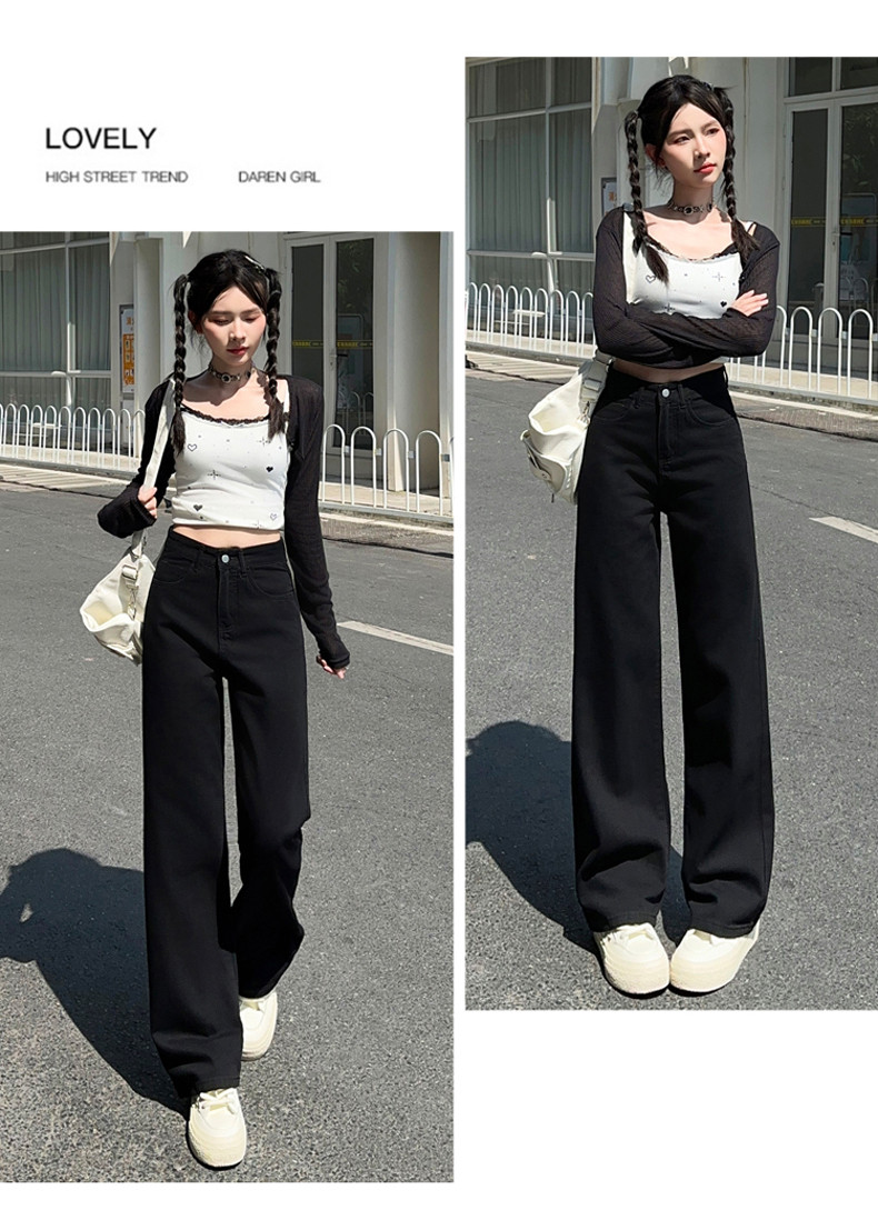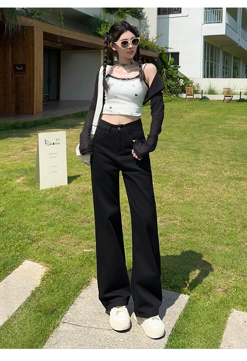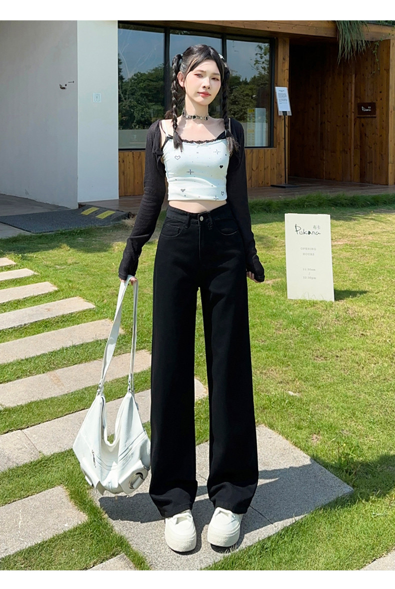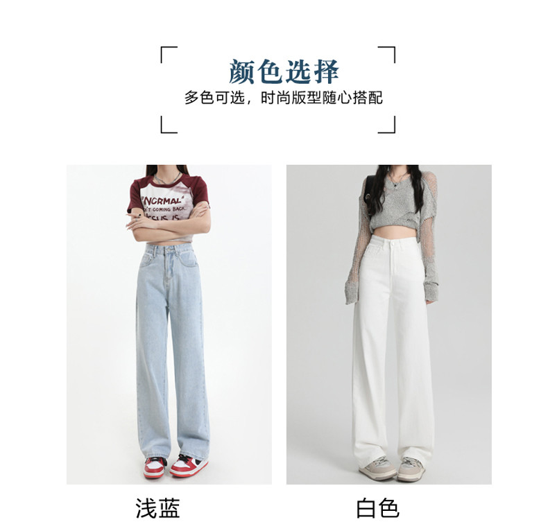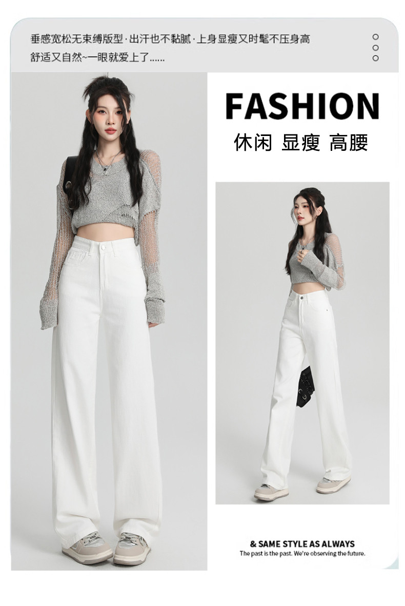 Small white jeans women's 2024 autumn new high-waisted straight wide-leg pants 150cm tall pants