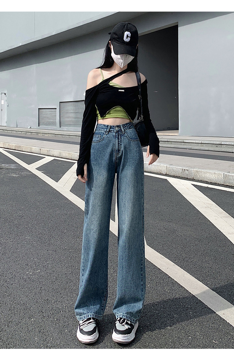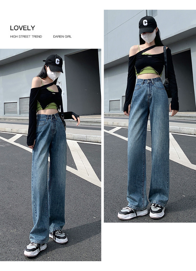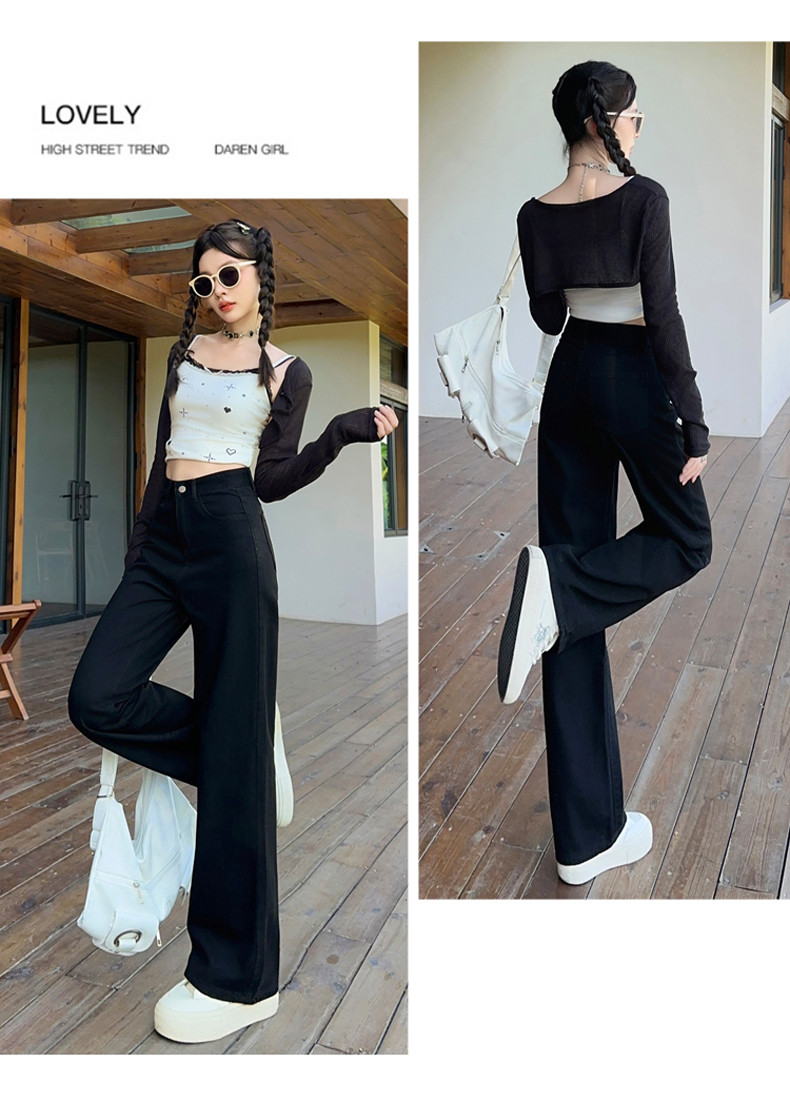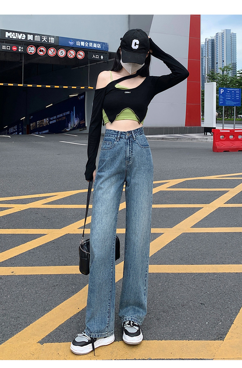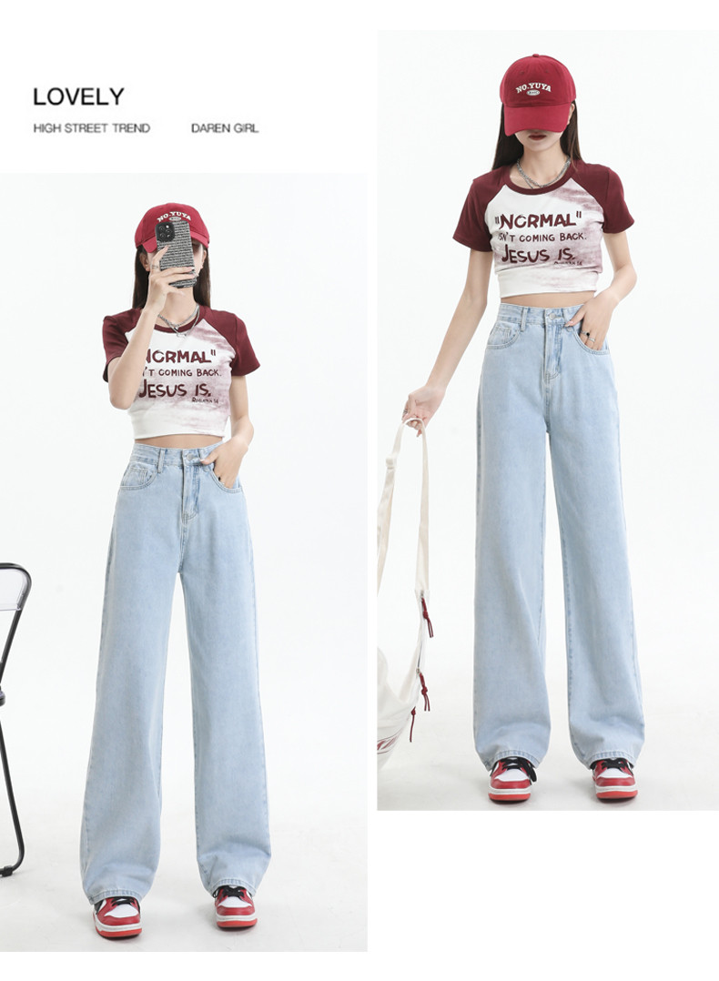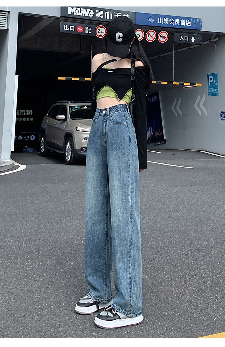 Small white jeans women's 2024 autumn new high-waisted straight wide-leg pants 150cm tall pants