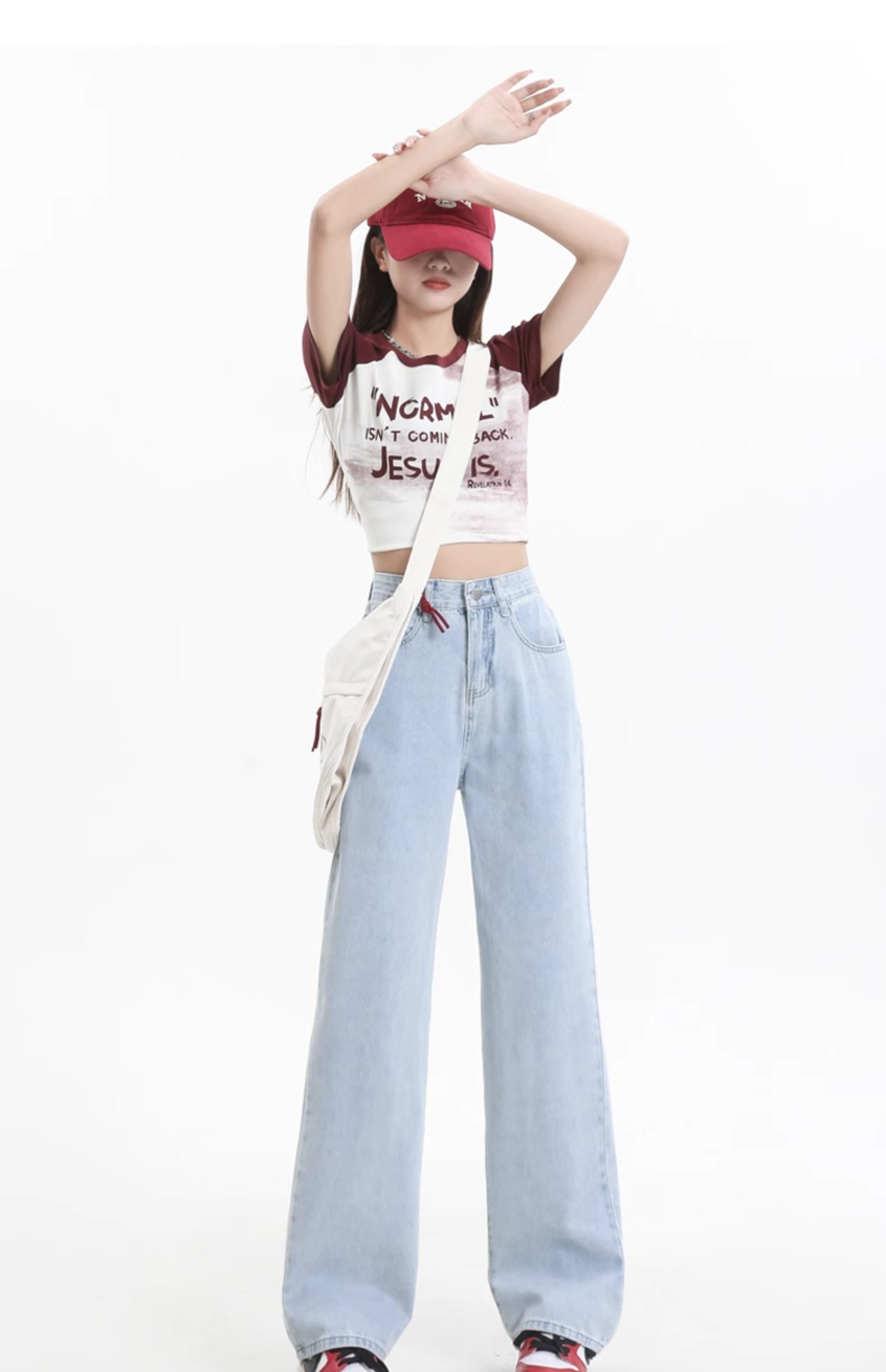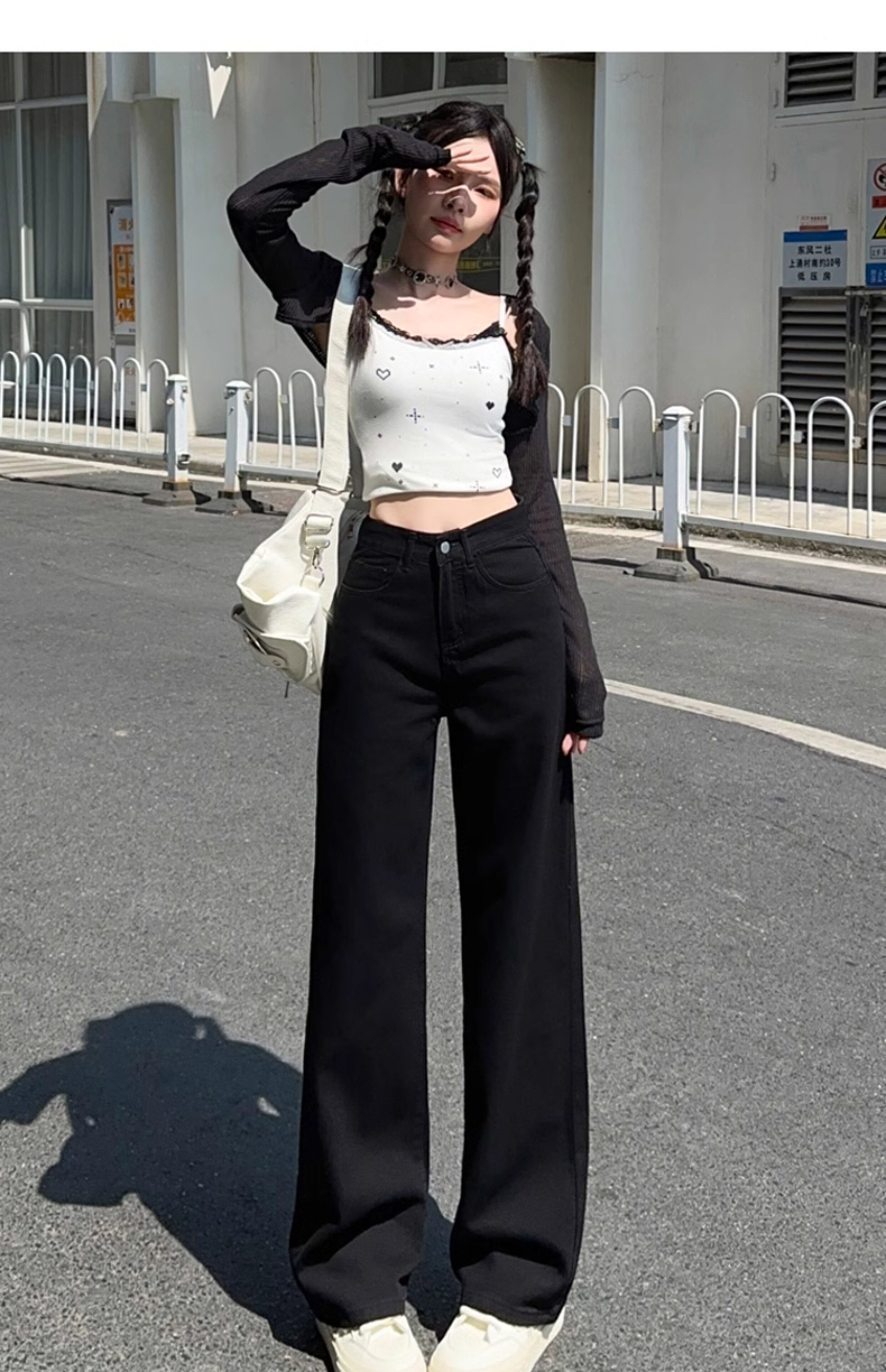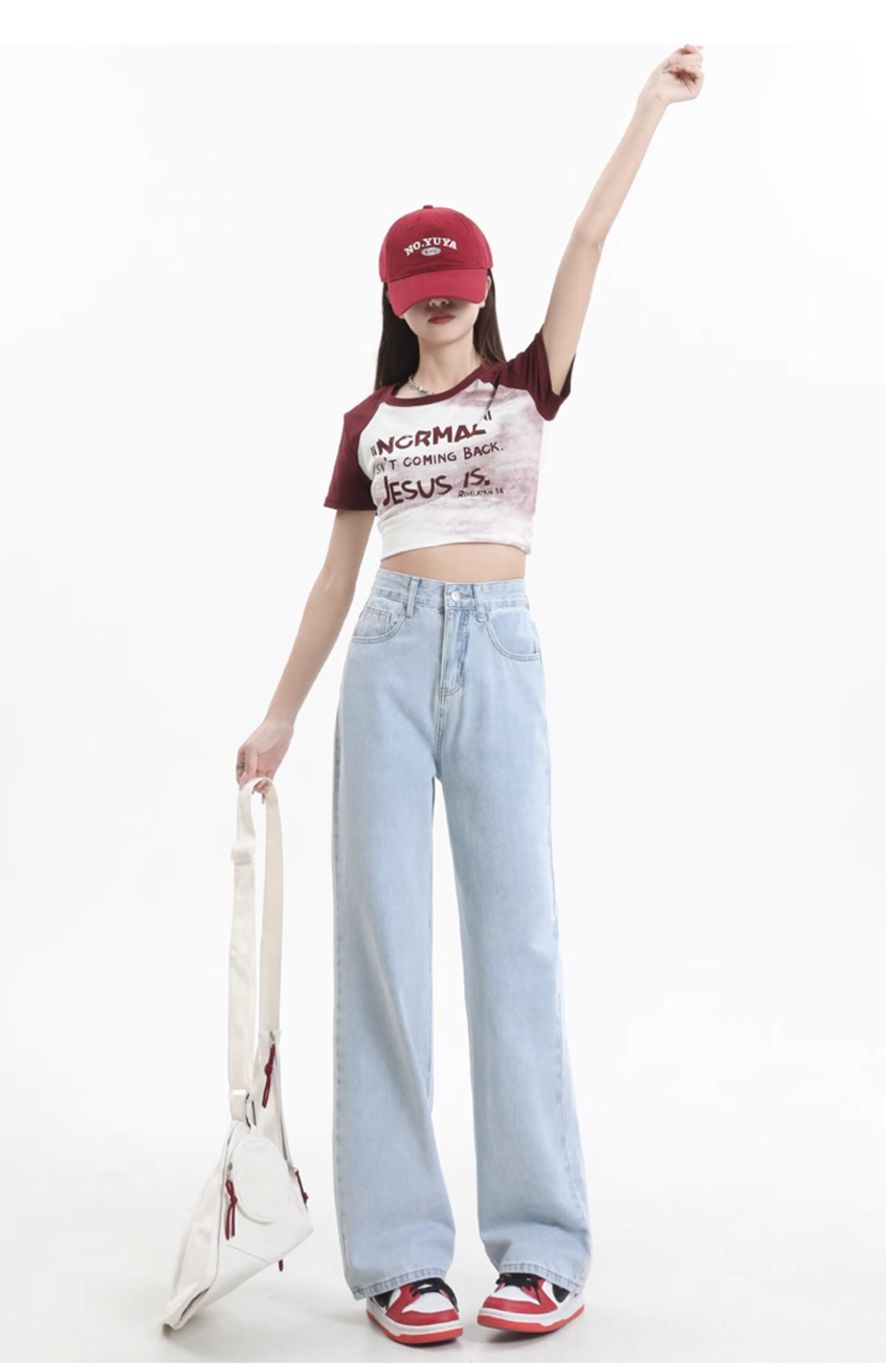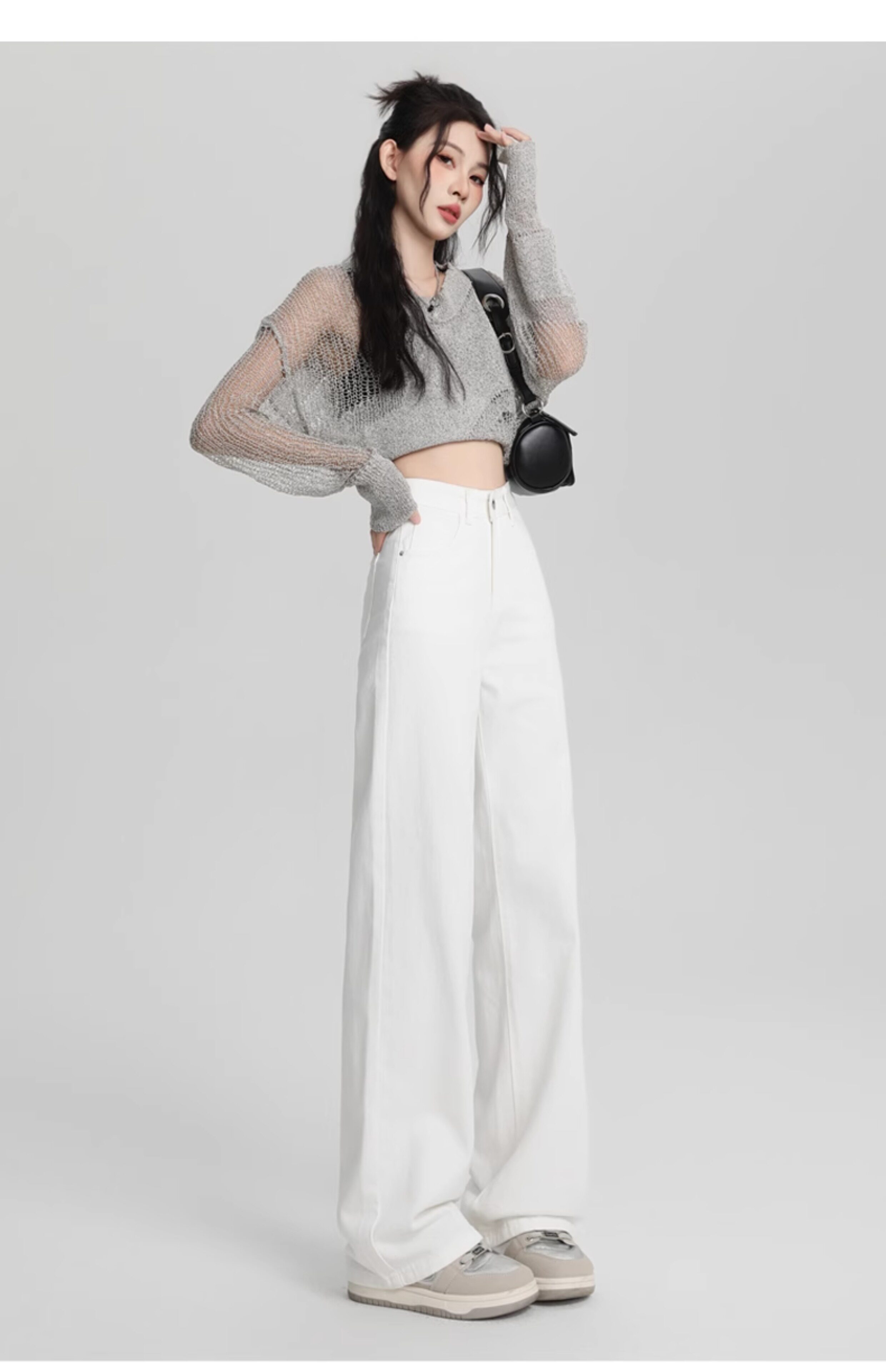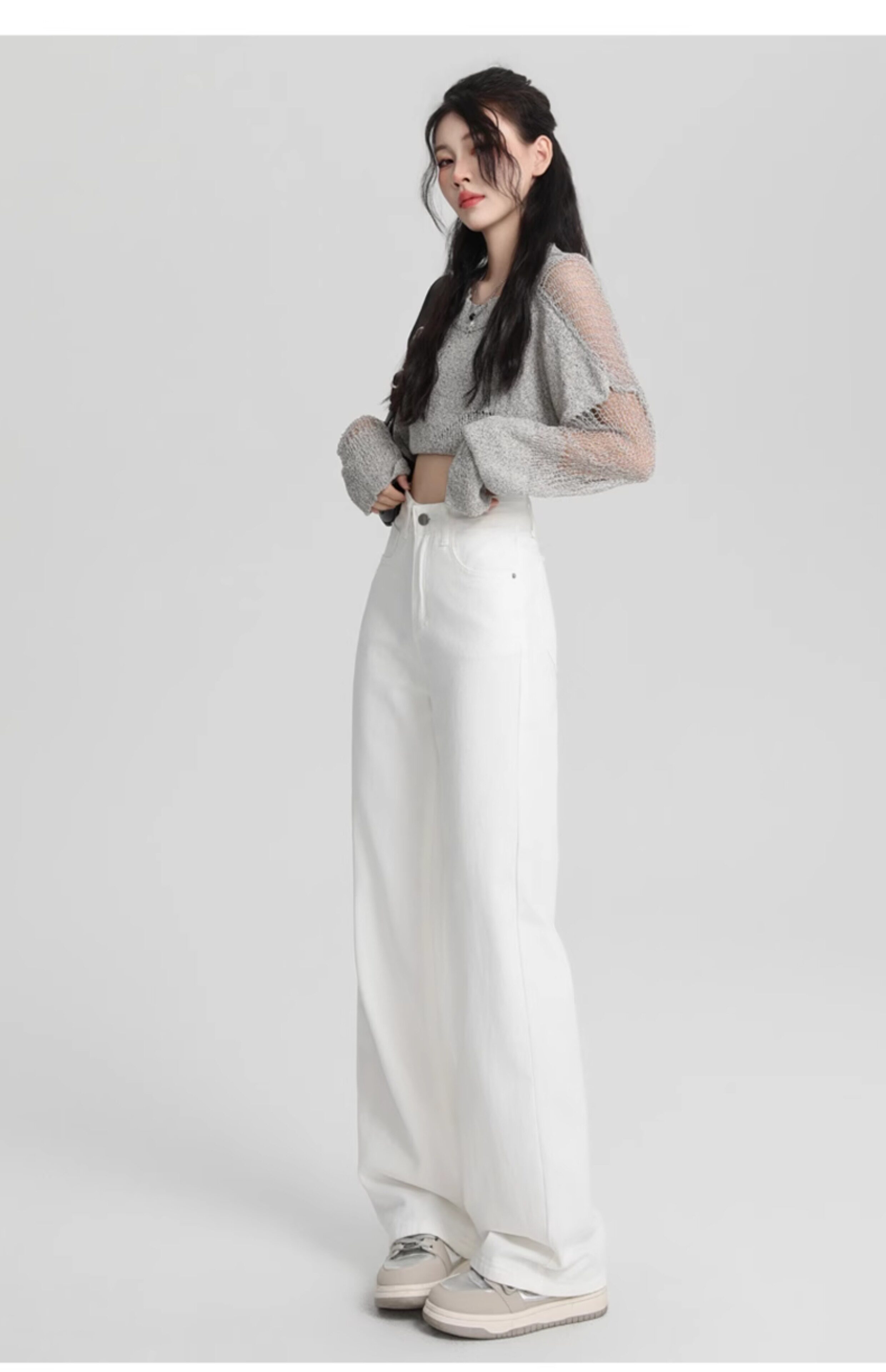 Small white jeans women's 2024 autumn new high-waisted straight wide-leg pants 150cm tall pants