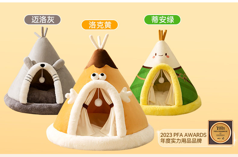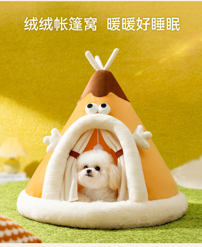 Mongolian Yurt Tent Dog House Enclosed Door Curtain Pet House Autumn and Winter Warm Thickened Cat House Small and Medium-Sized Dog House