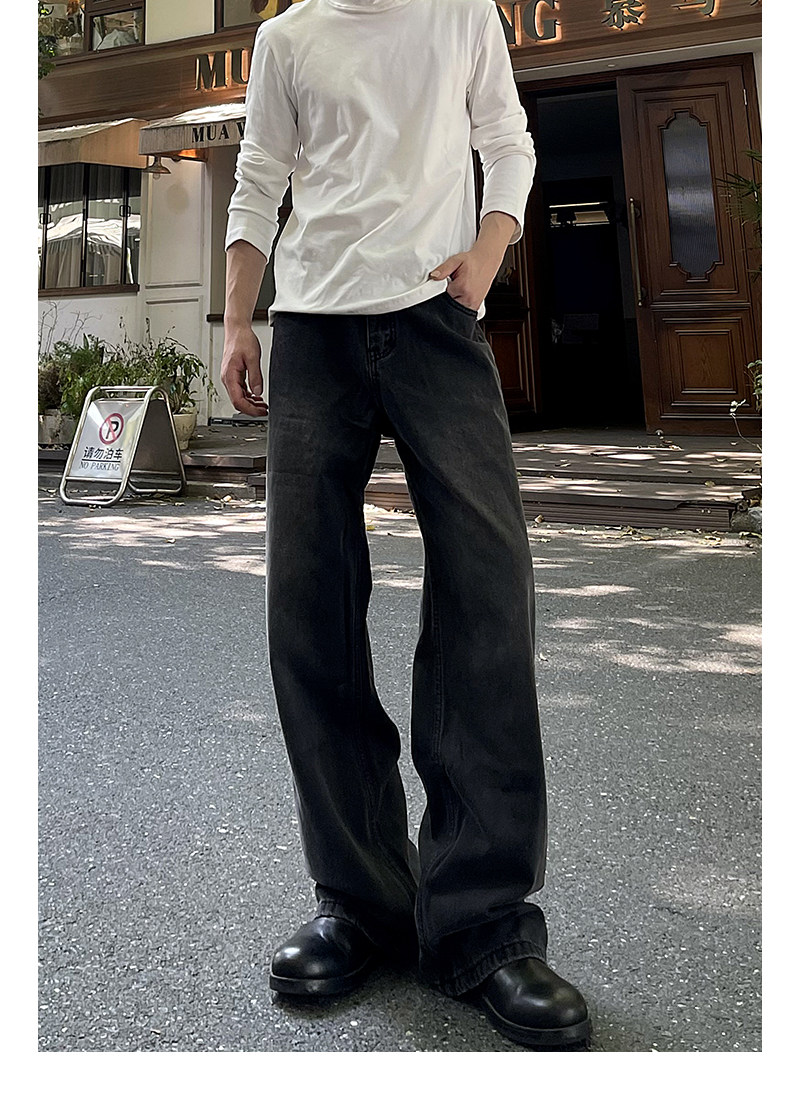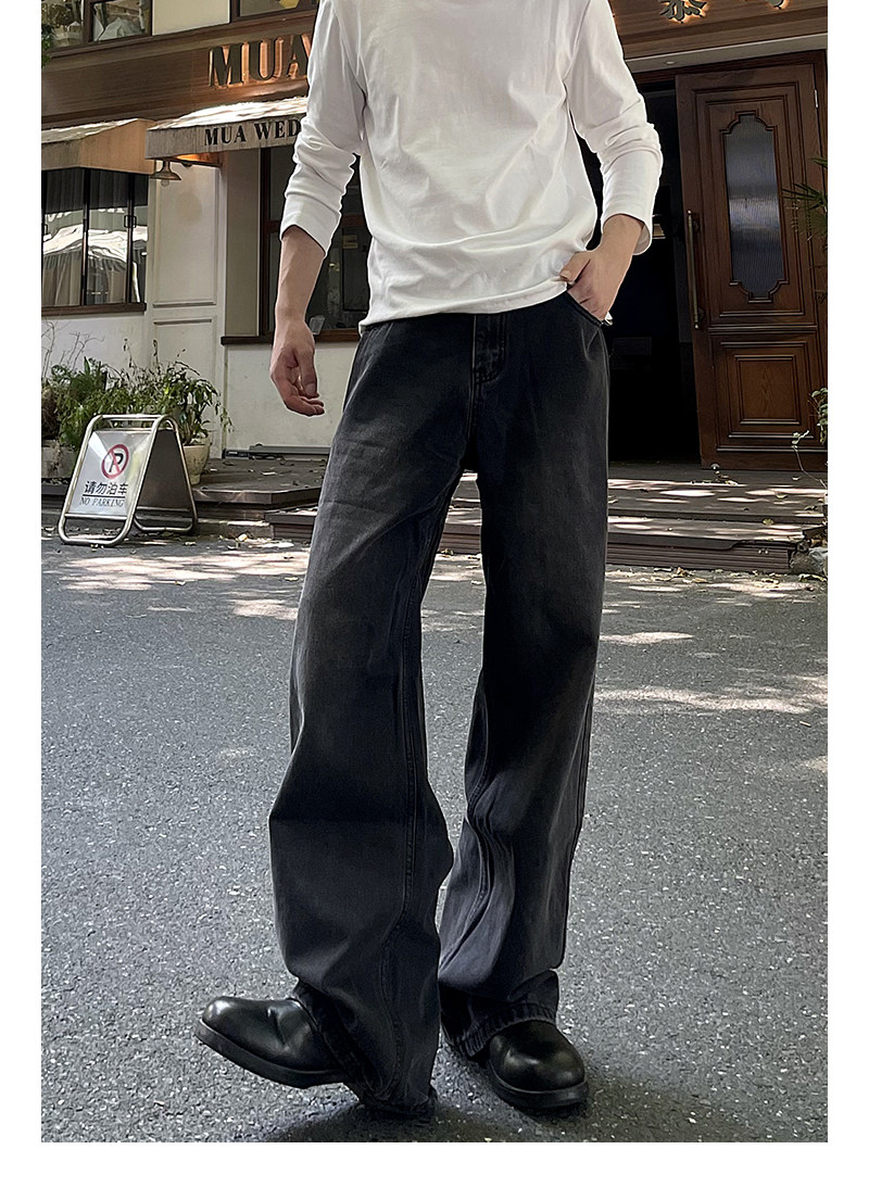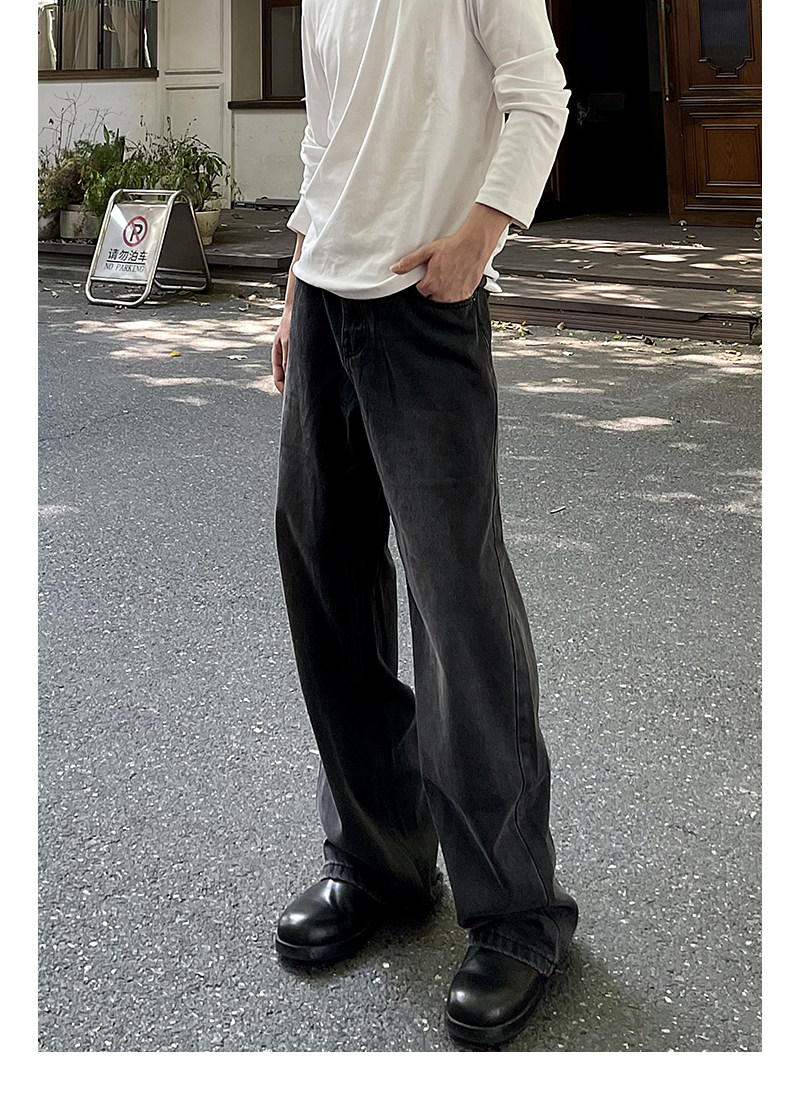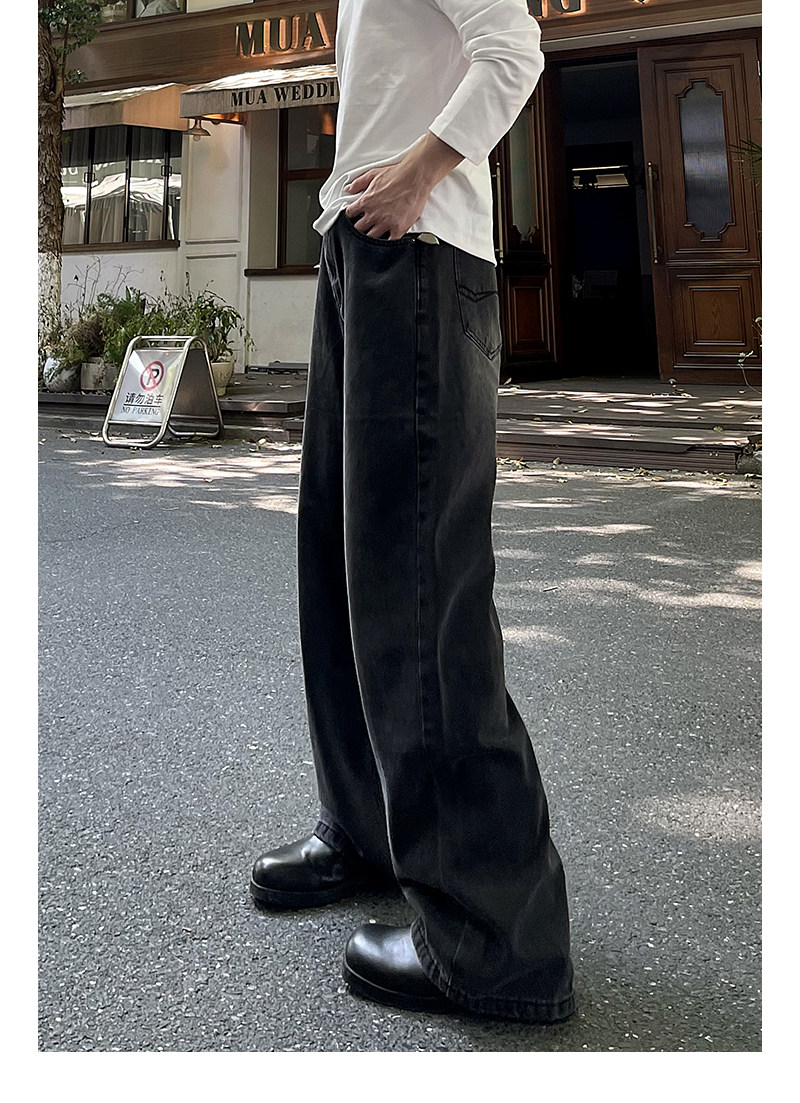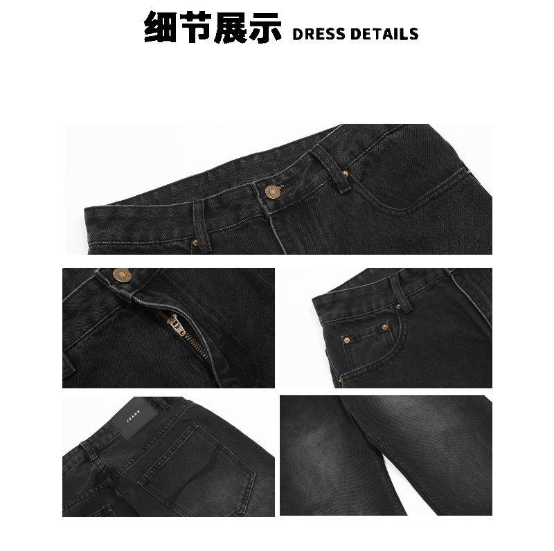 A Carton American-Style Washed Black and Gray Distressed Slim-Fit Versatile Straight-Leg Loose Wide-Leg Jeans Casual Long Pants Trendy