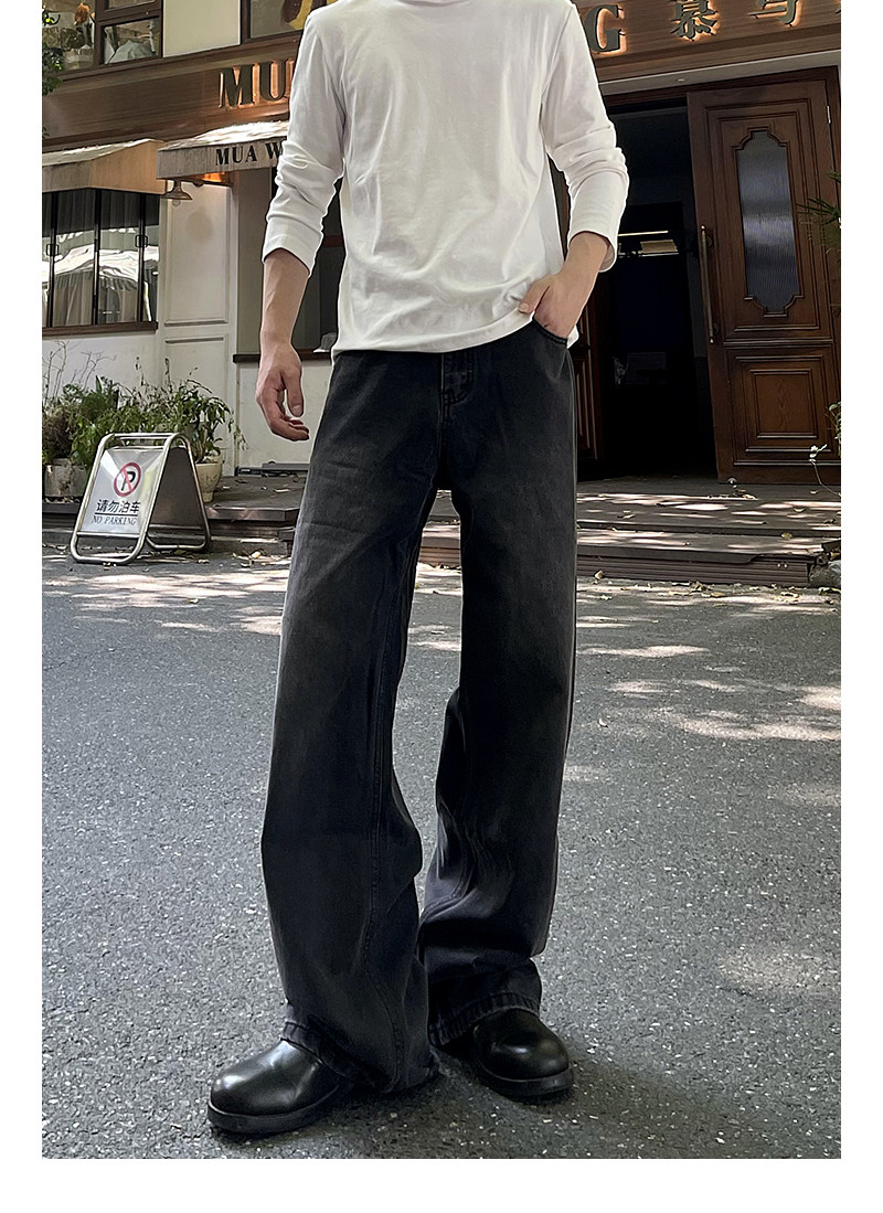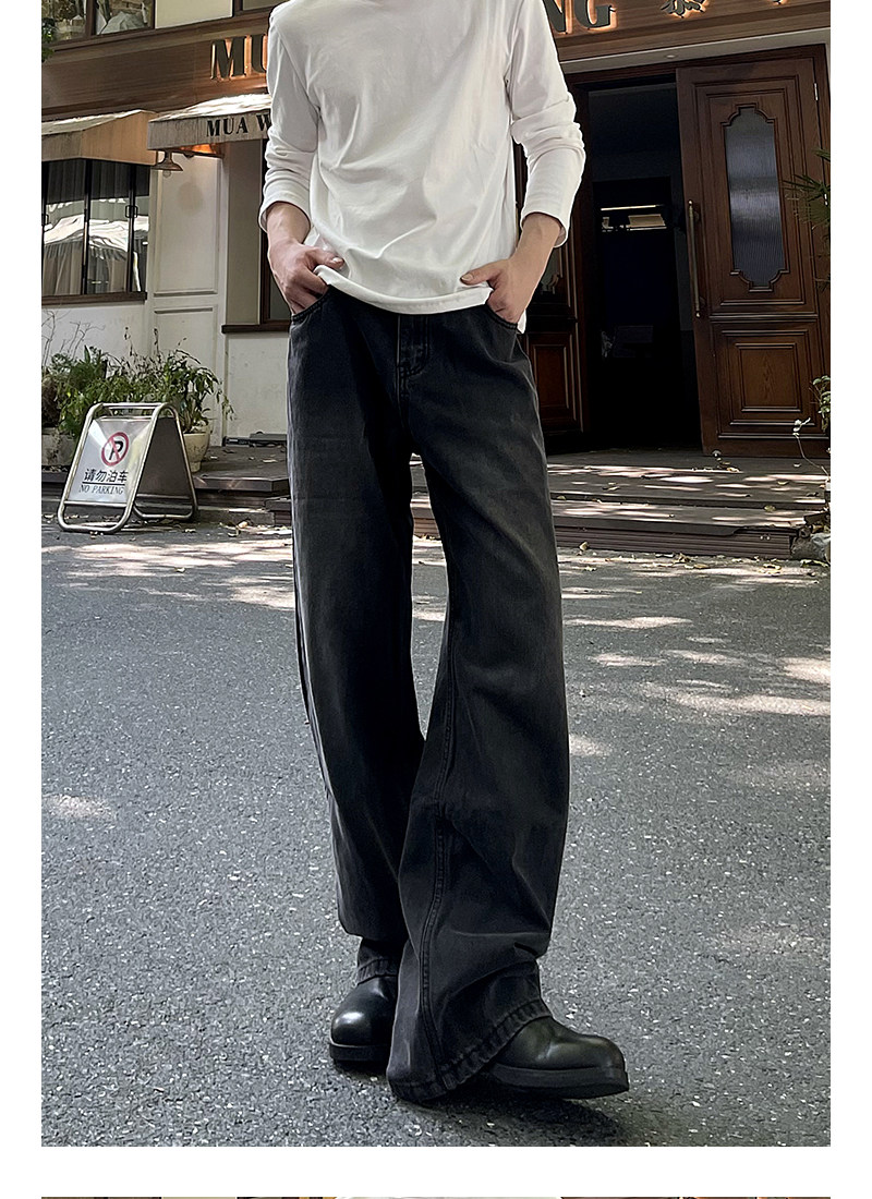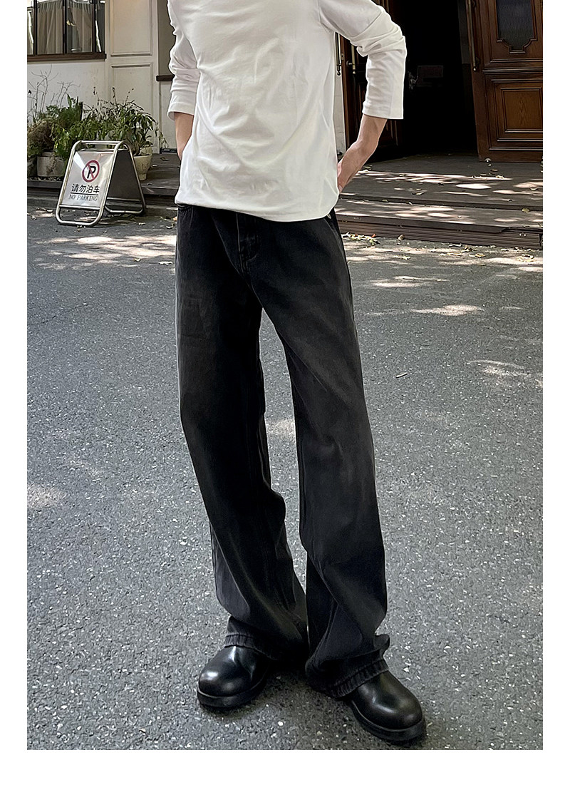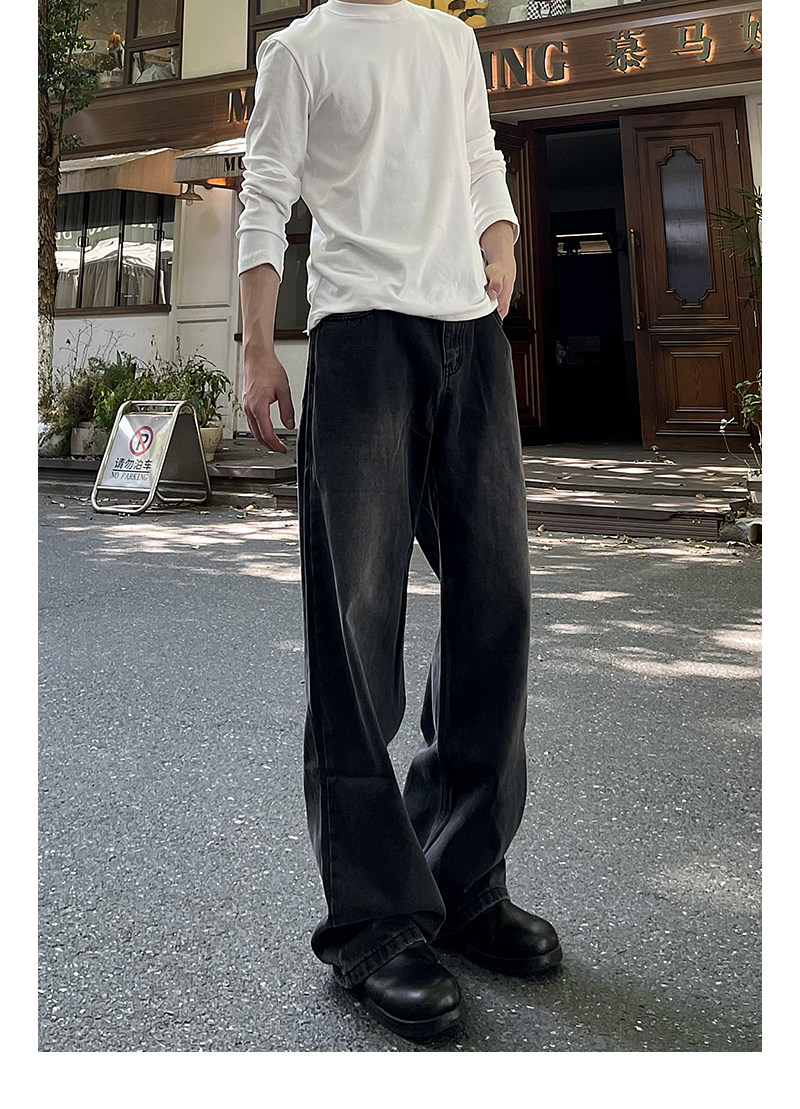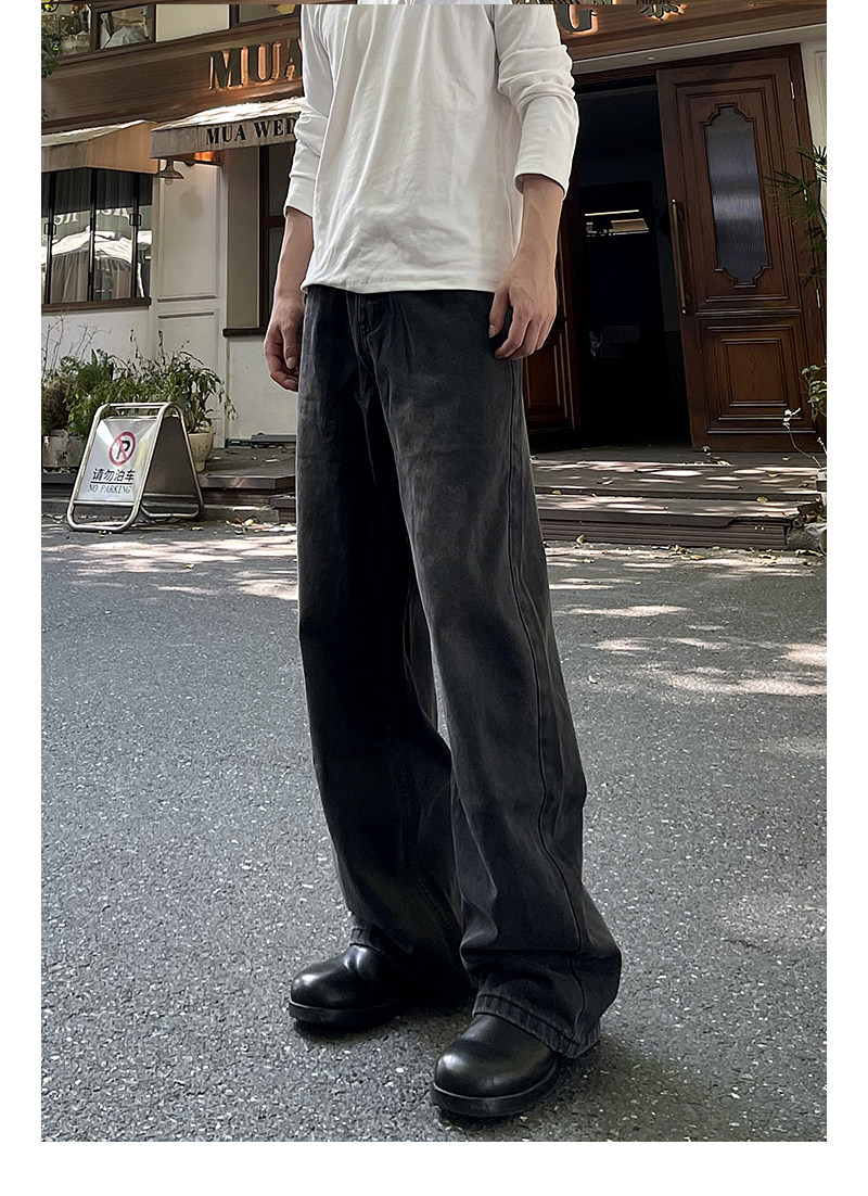 A Carton American-Style Washed Black and Gray Distressed Slim-Fit Versatile Straight-Leg Loose Wide-Leg Jeans Casual Long Pants Trendy