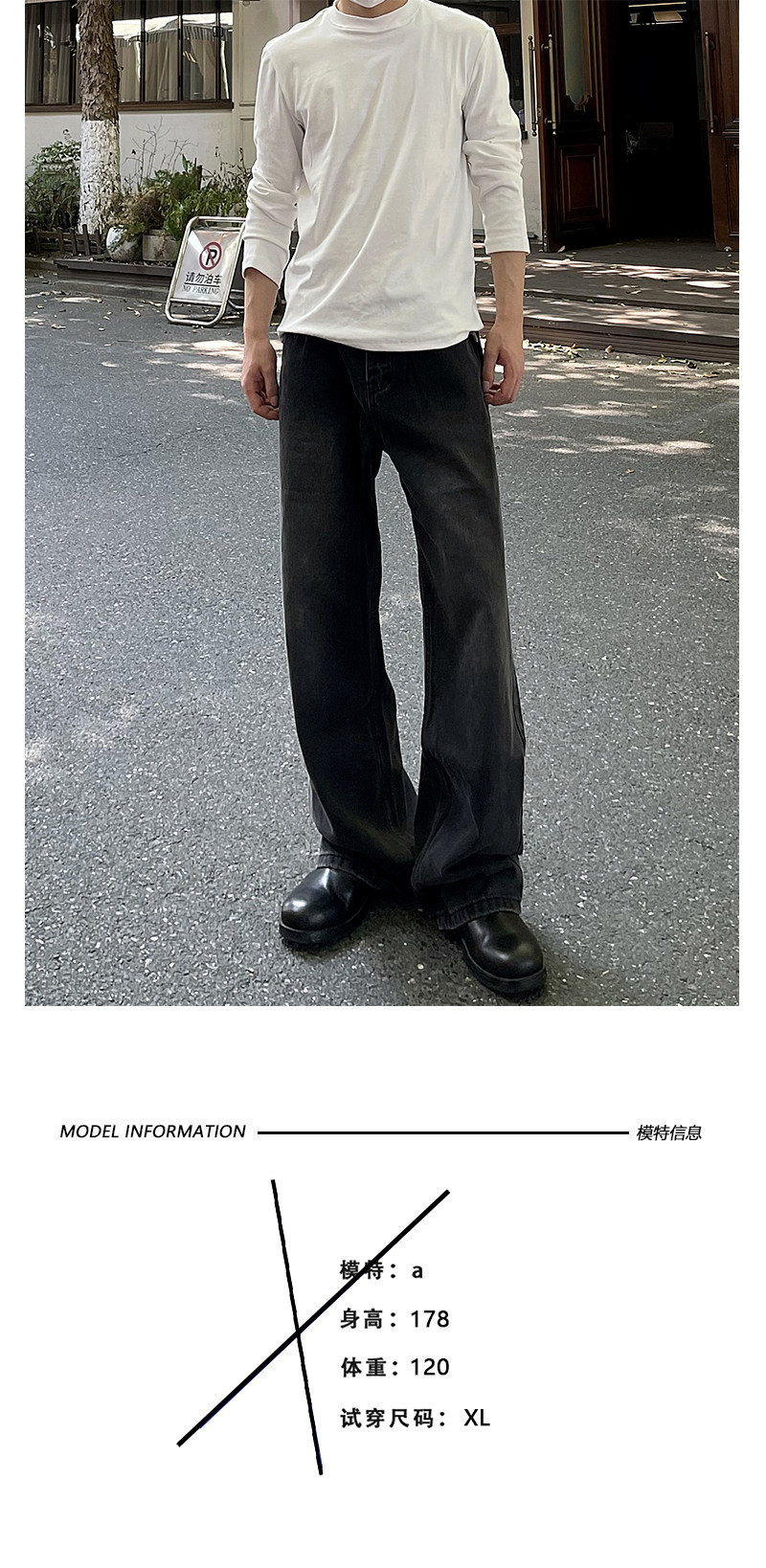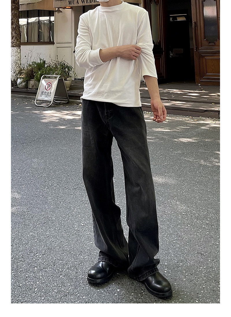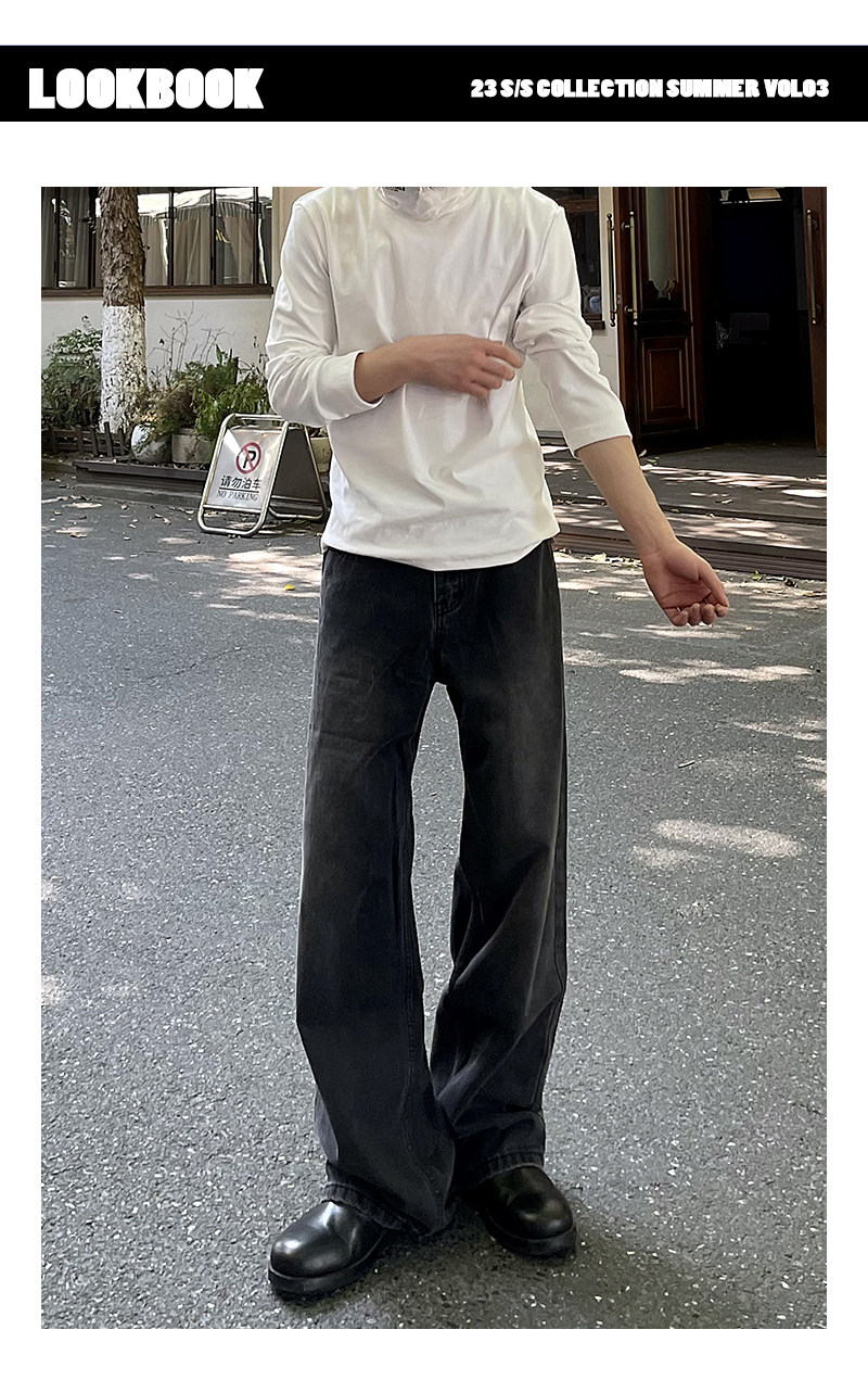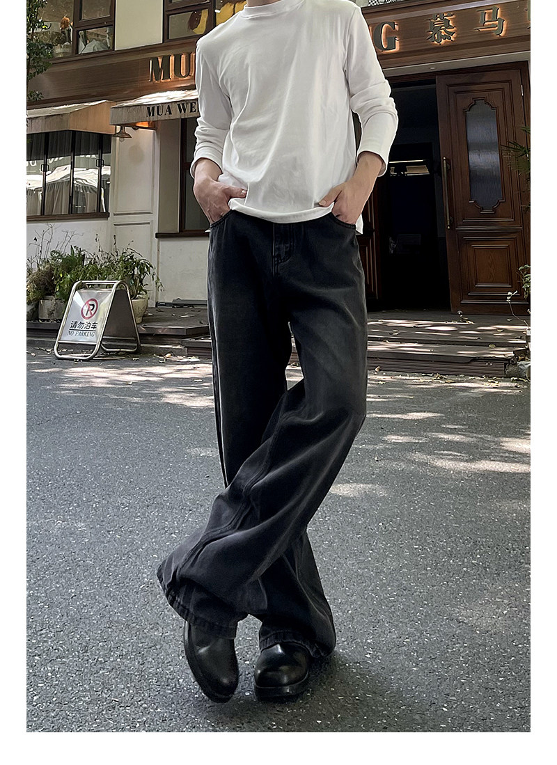 A Carton American-Style Washed Black and Gray Distressed Slim-Fit Versatile Straight-Leg Loose Wide-Leg Jeans Casual Long Pants Trendy