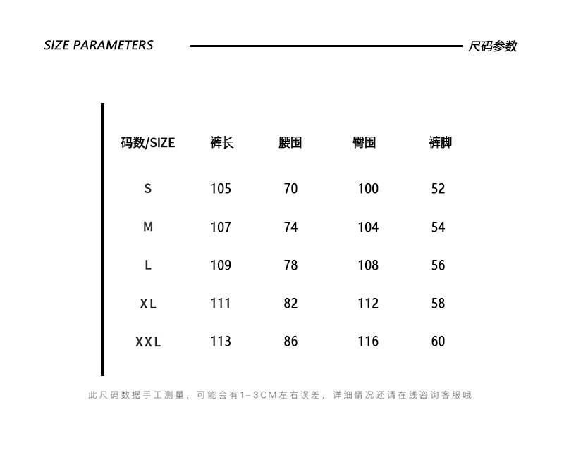 Outseam (cm) 99 cm 101.5 cm 104 cm 106.5 cm 109 cm