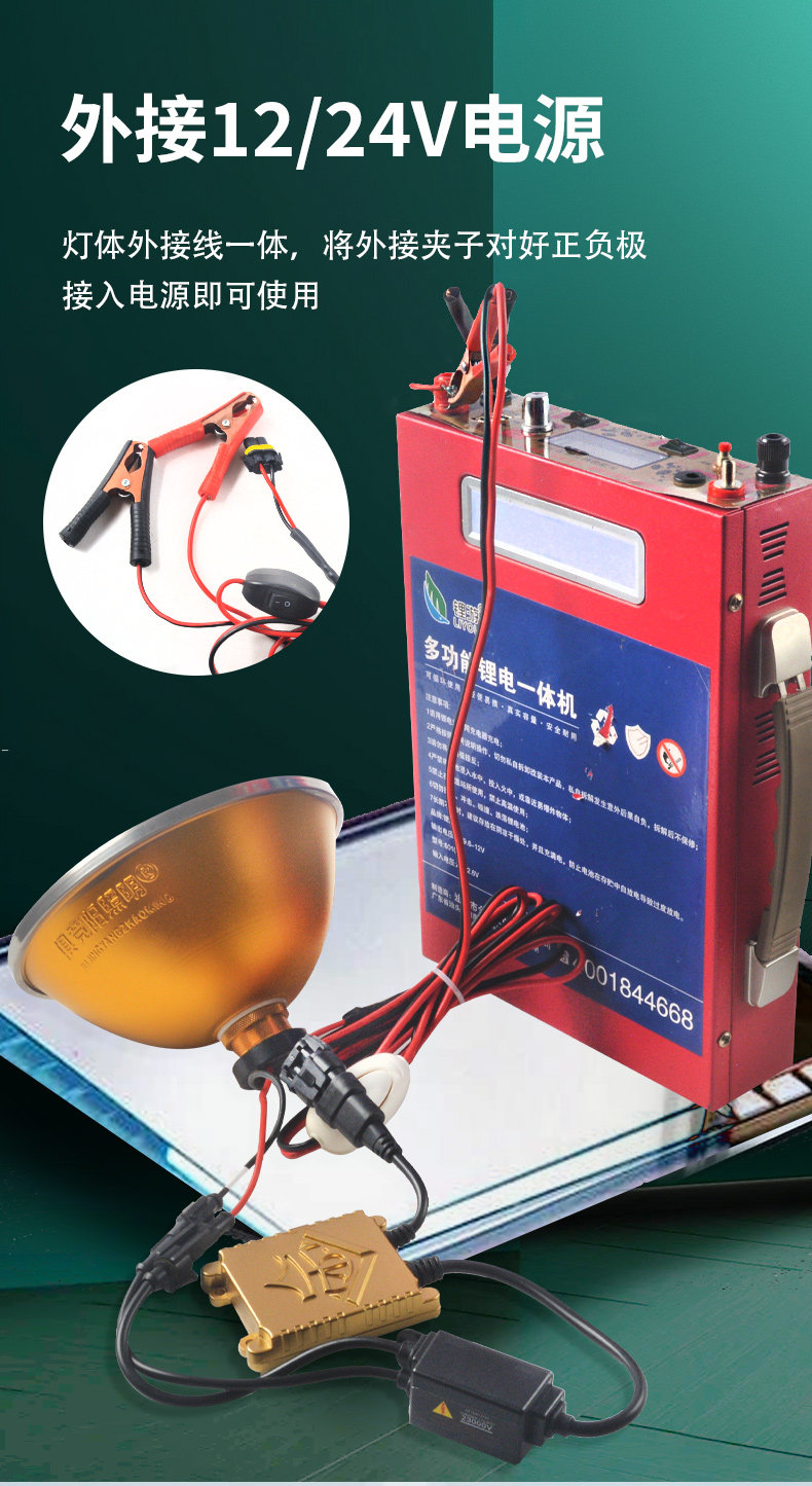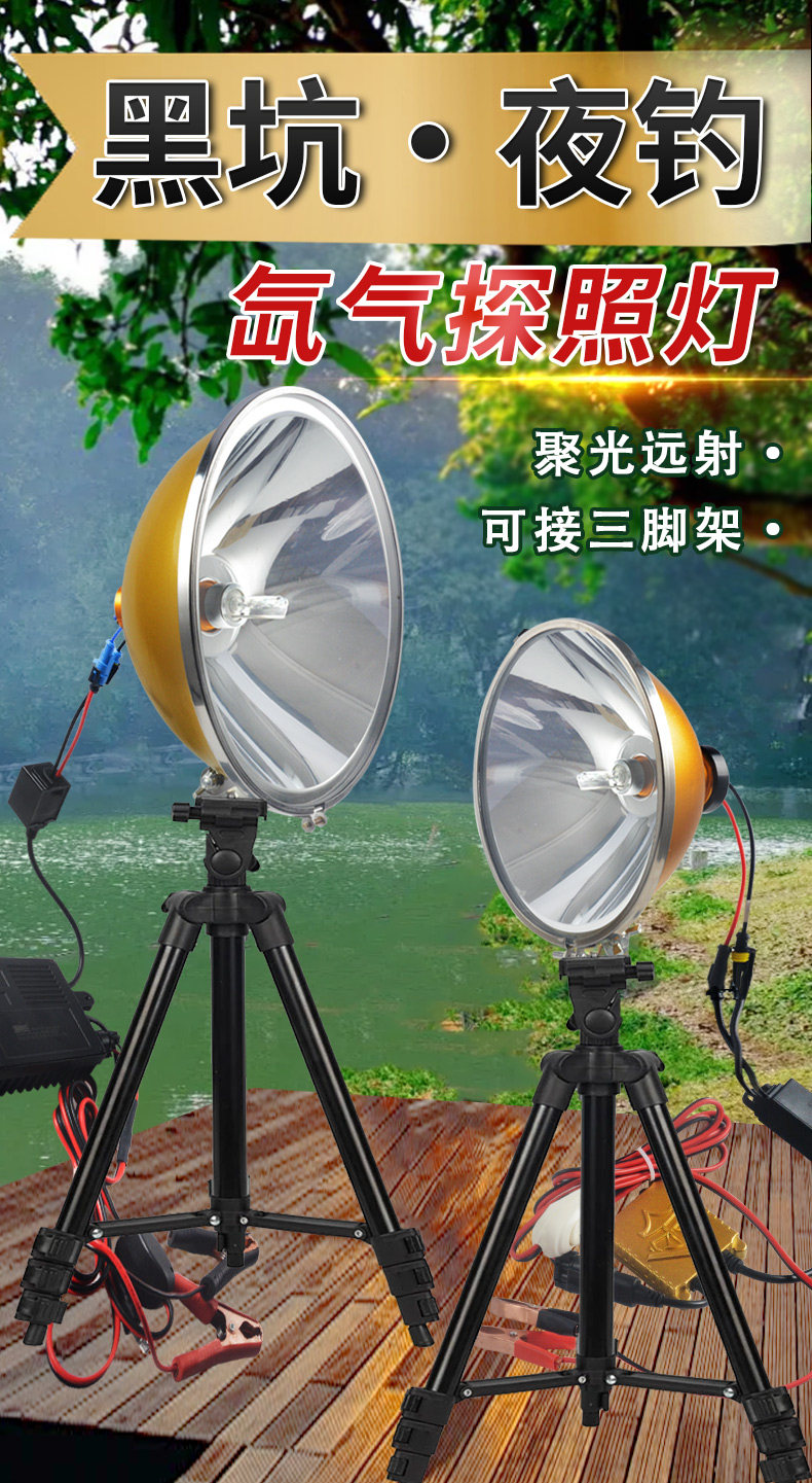Xenon Fishing Light, Strong Light, External 12V Battery, Yellow Light, Outdoor Long-Range, High-Power Night Fishing Xenon Headlight