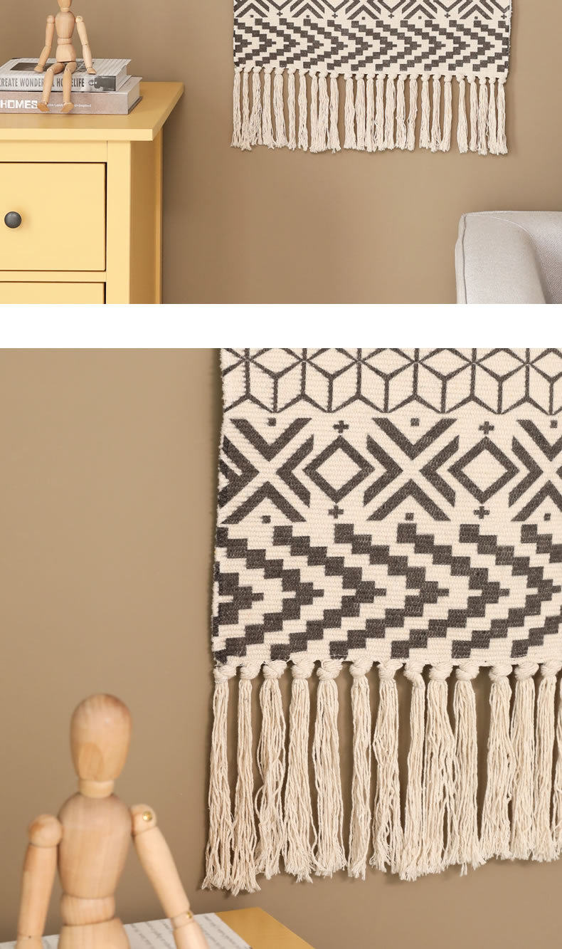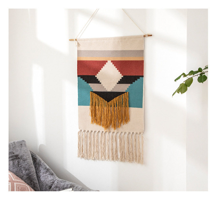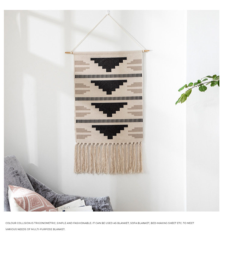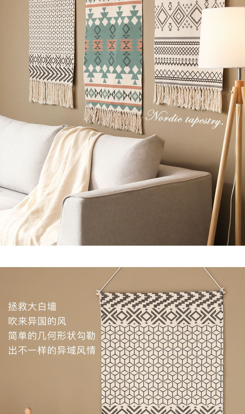 ins Scandinavian Tapestry Decorative Hanging Cloth Tassel Hand-Woven Cotton Hanging Painting Bedroom Living Room Meter Box Background Wall Cloth