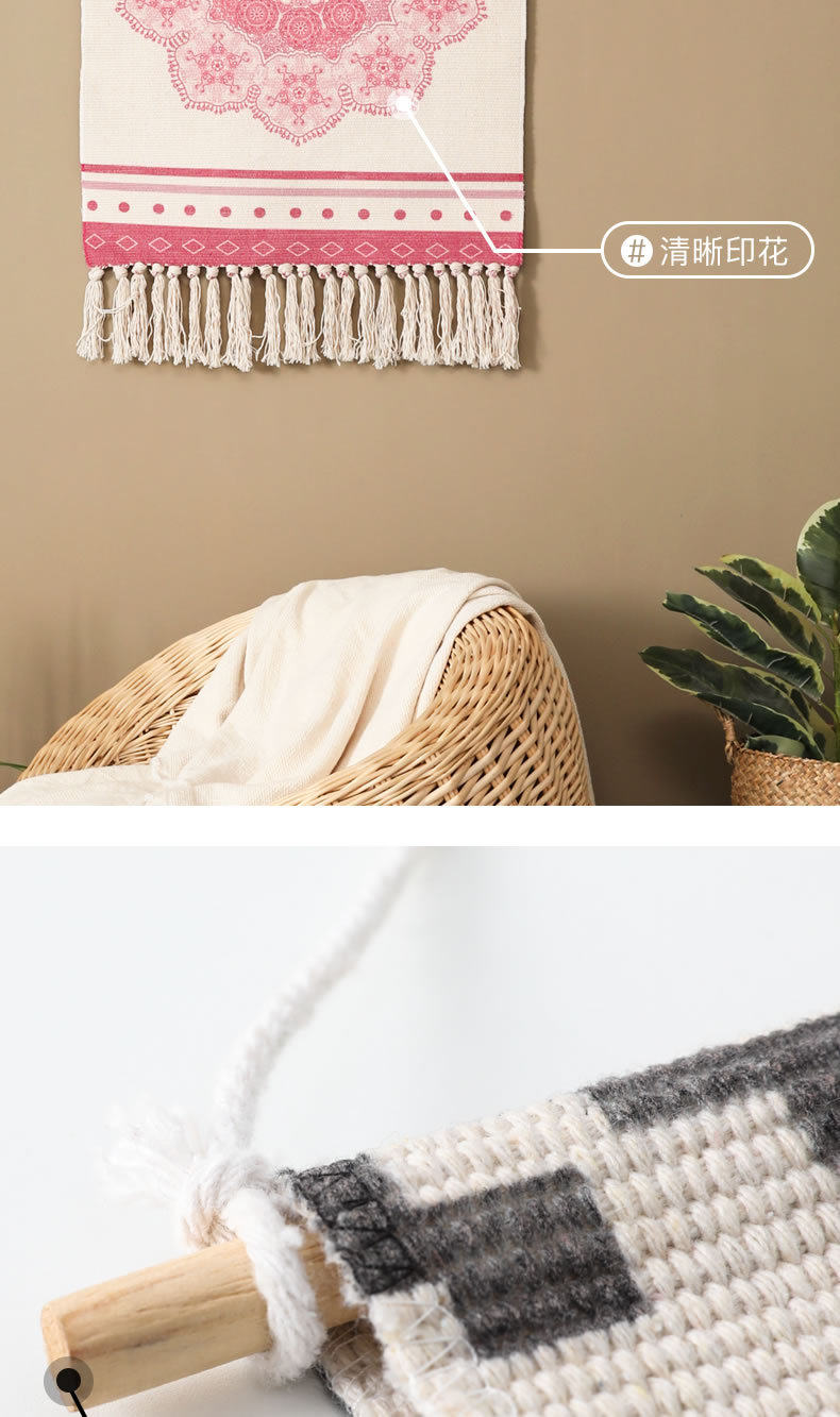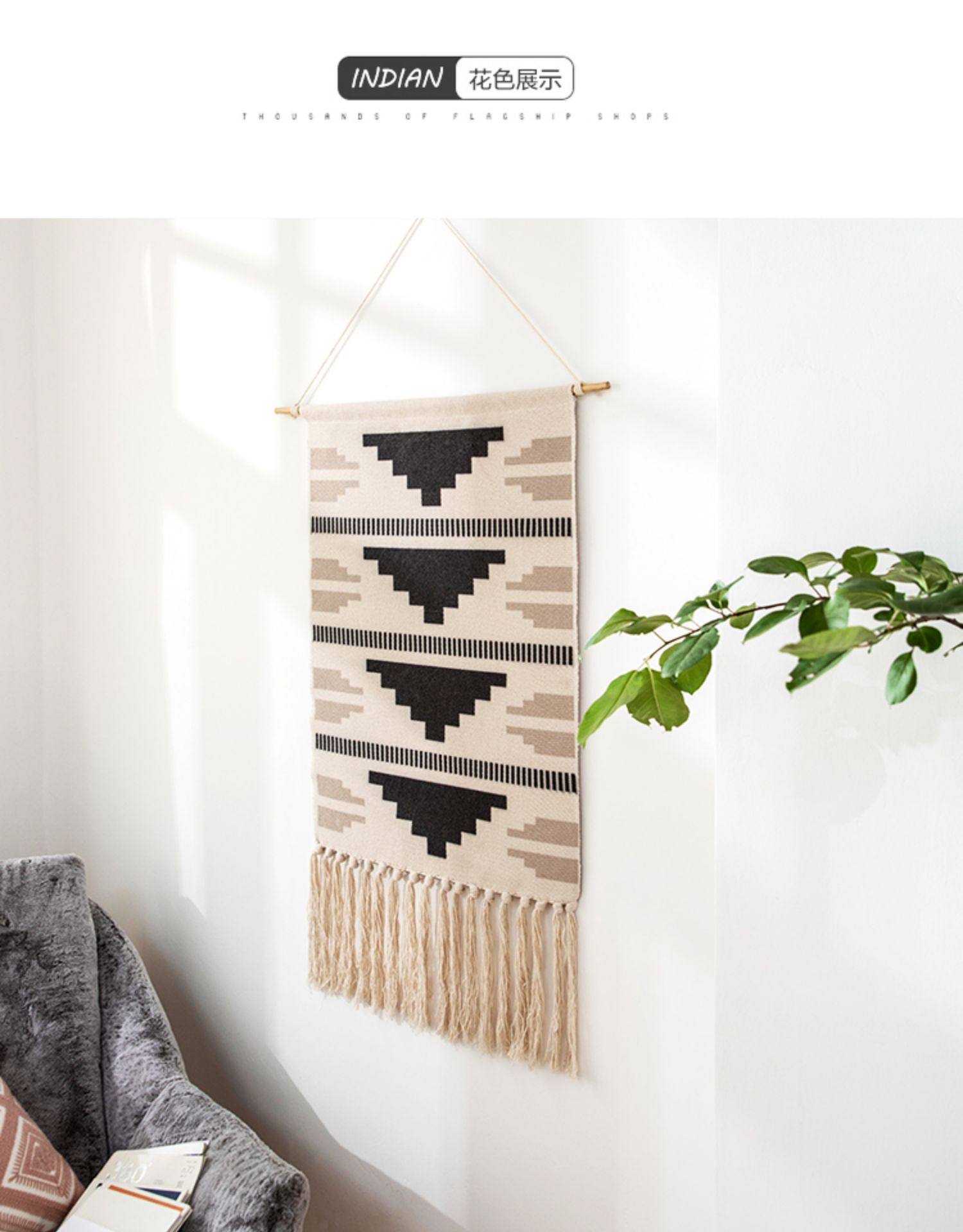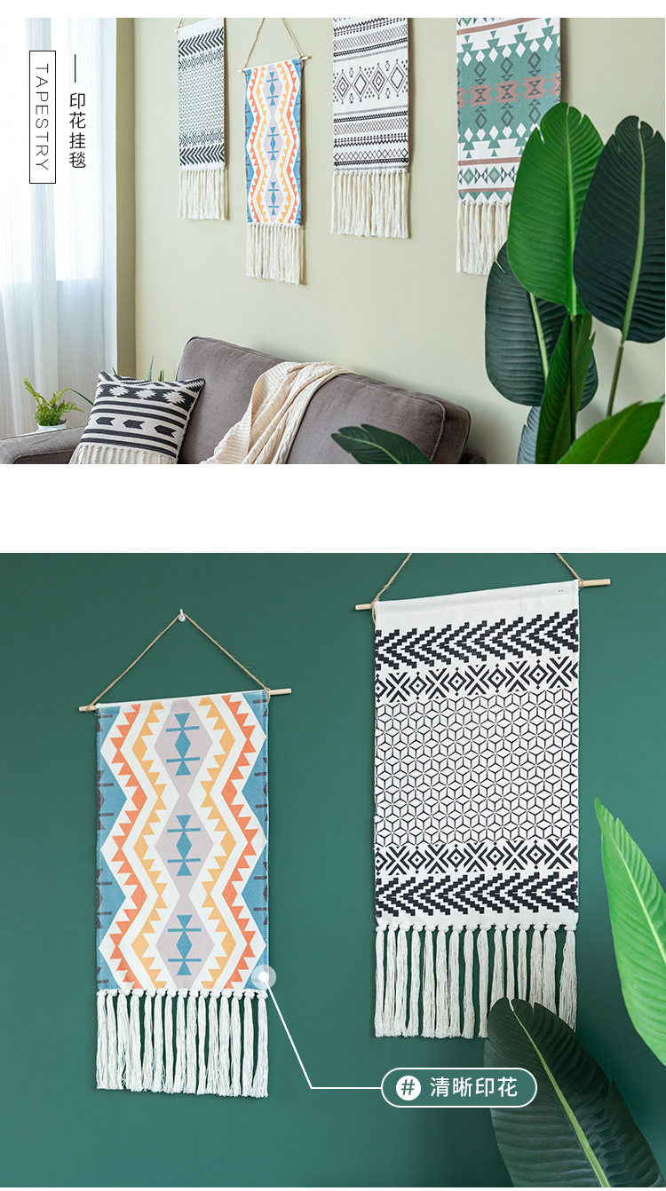 ins Scandinavian Tapestry Decorative Hanging Cloth Tassel Hand-Woven Cotton Hanging Painting Bedroom Living Room Meter Box Background Wall Cloth