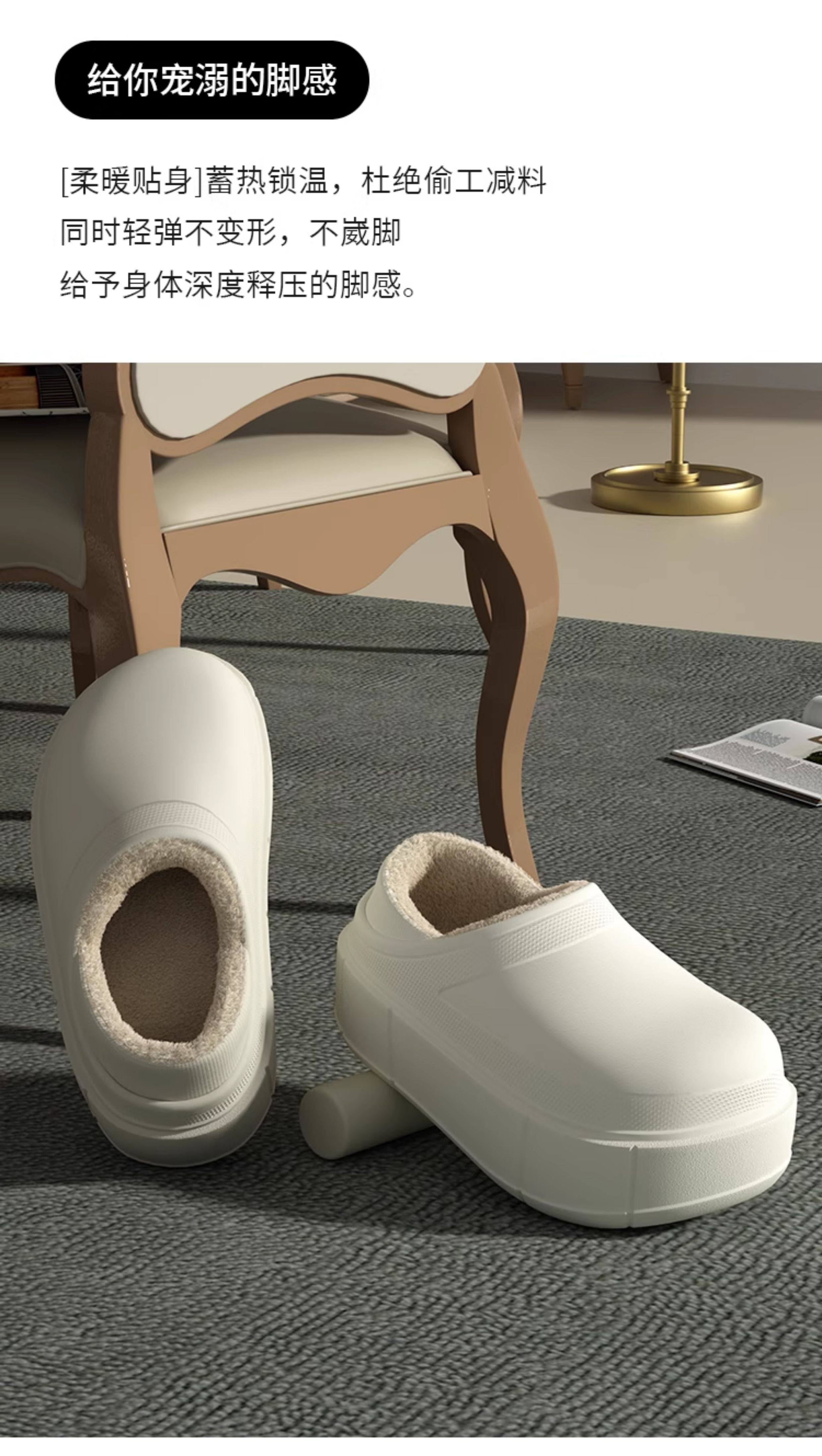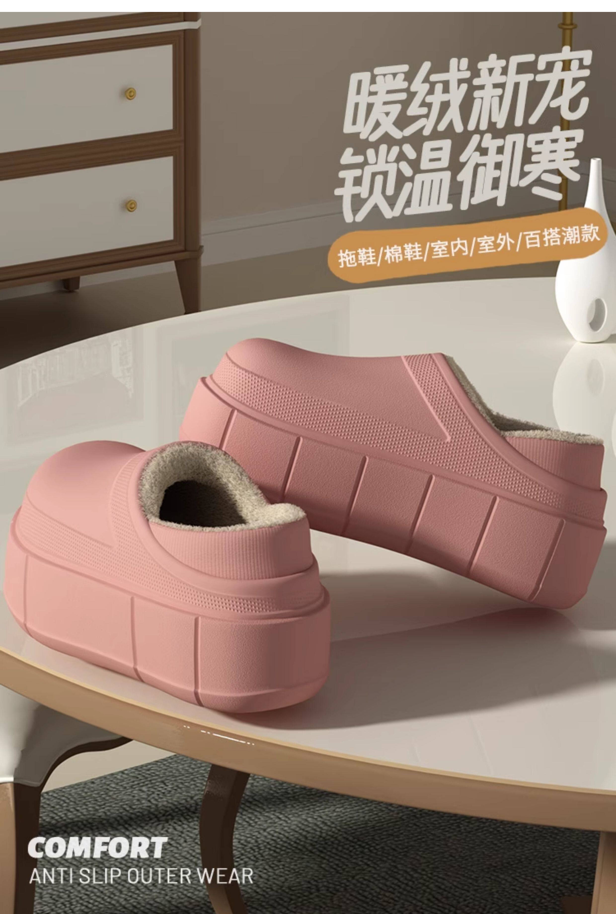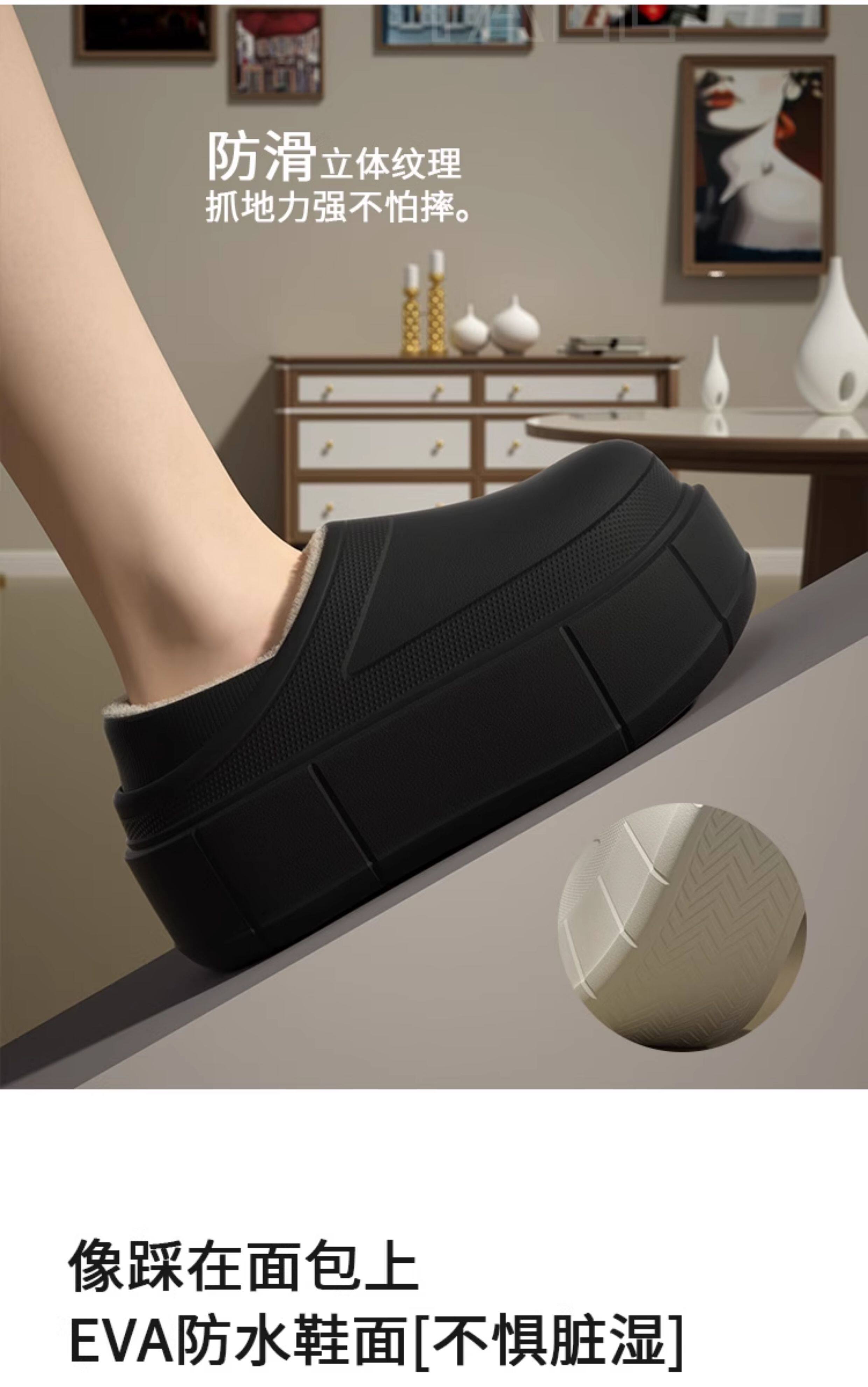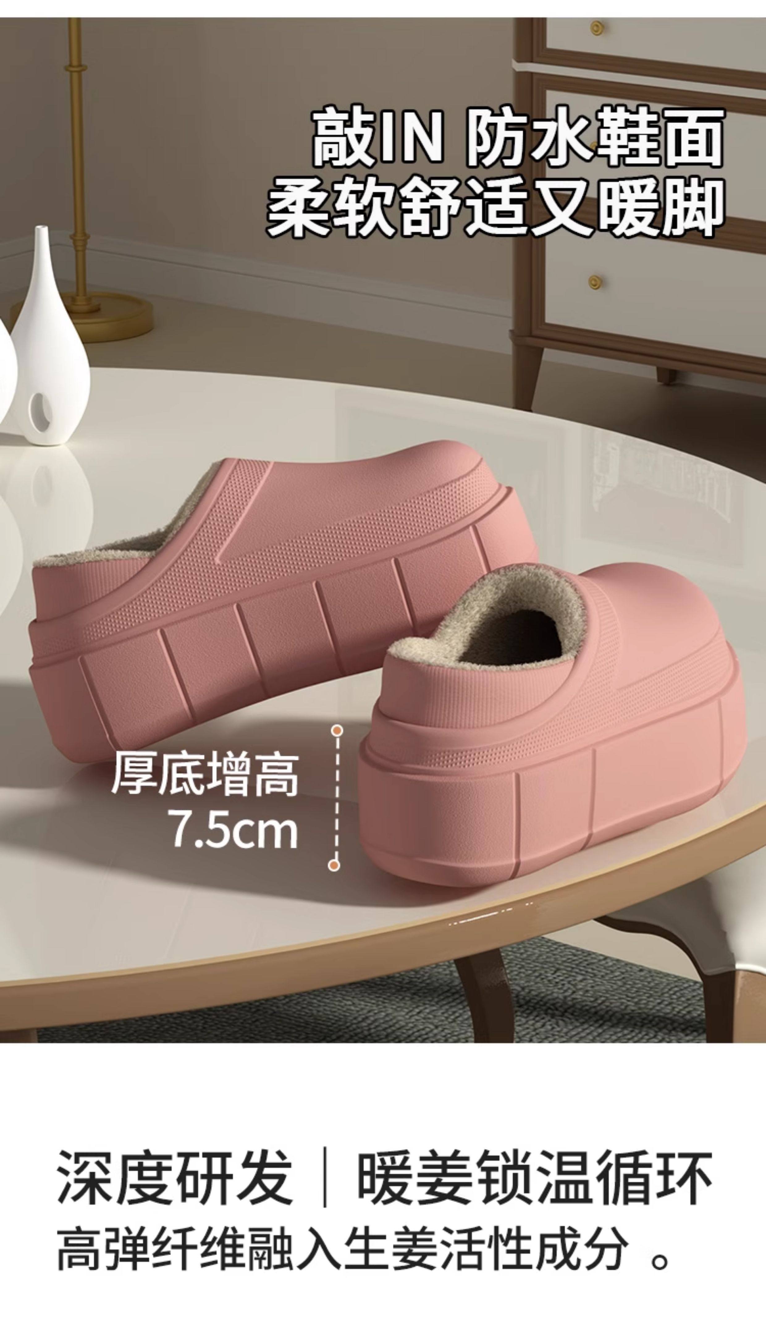 7.5 cm Thick-Soled, Height-Increasing, Waterproof, Closed-Back soft sole Cotton Slippers for Women, Suitable for Winter, Outdoor Wear, Home Use, Indoor, Fleece-Lined, Warm, and Soft