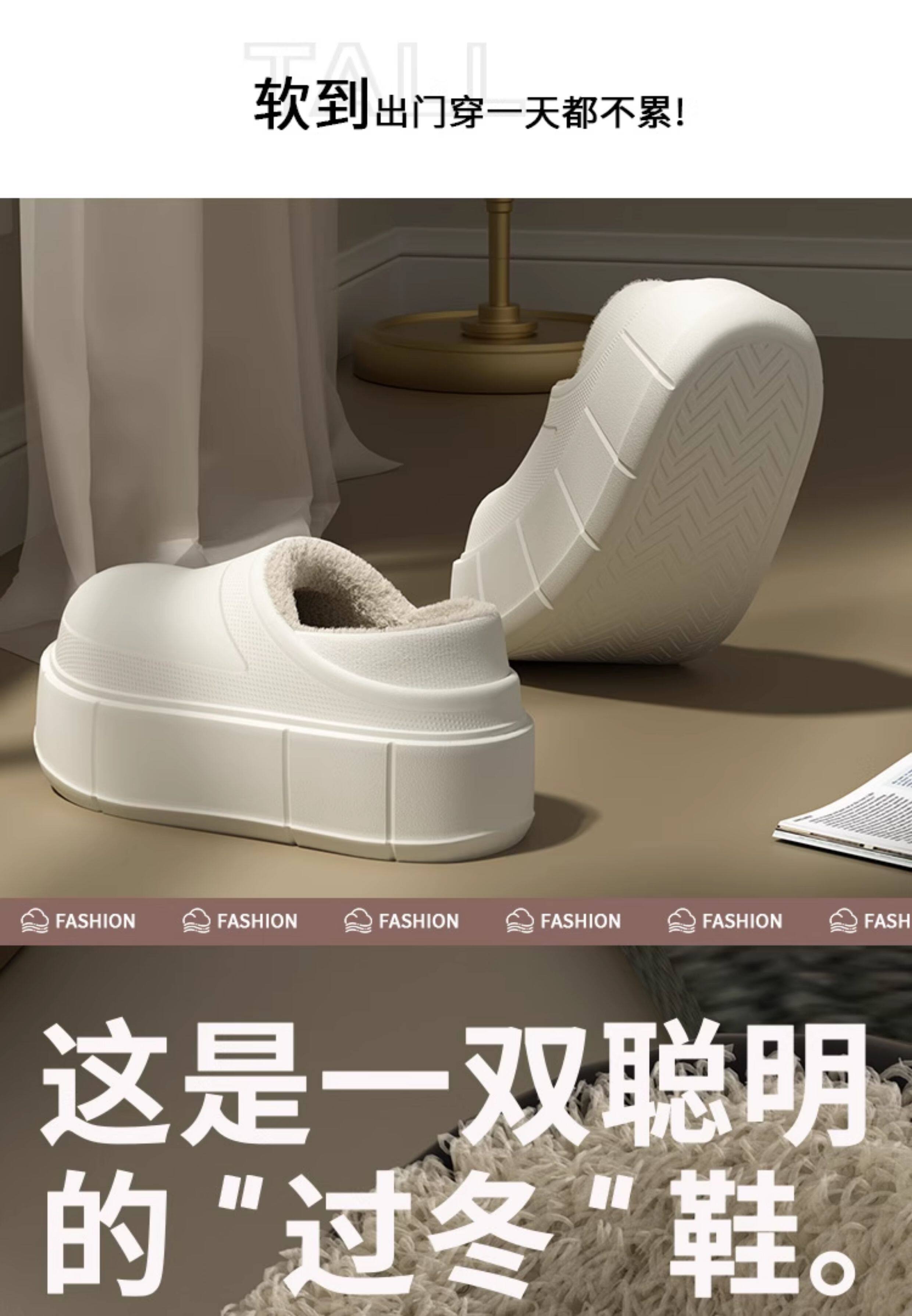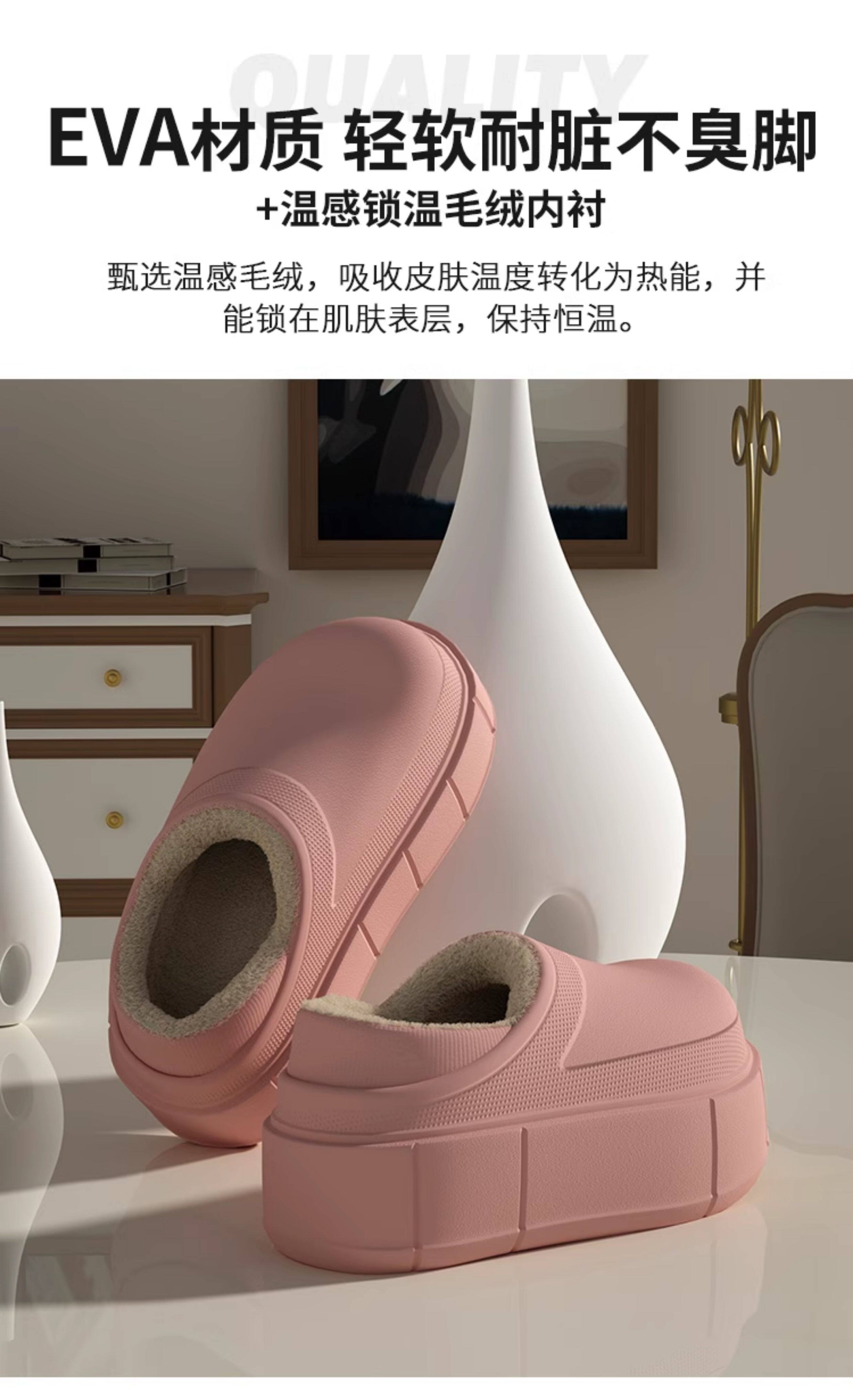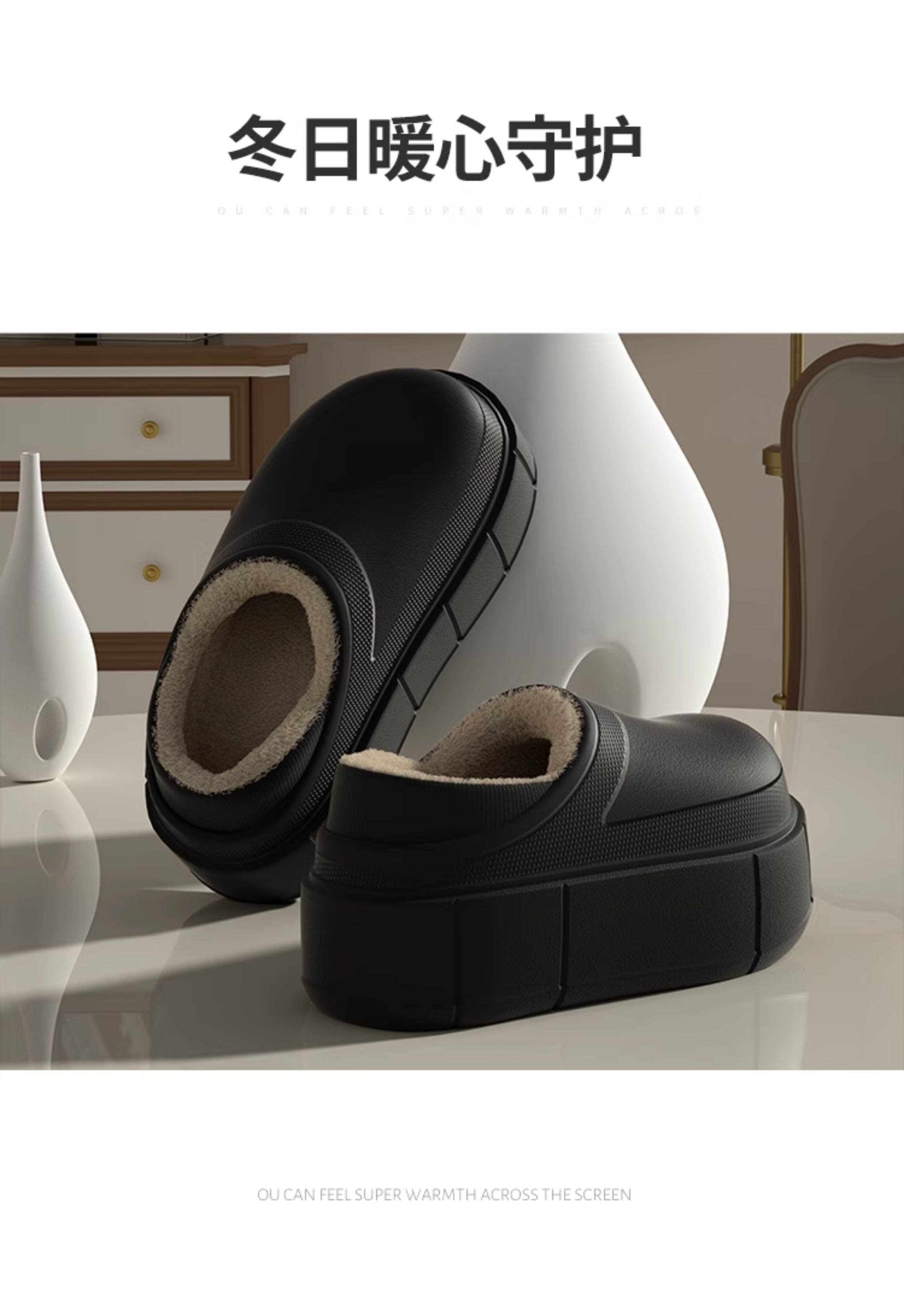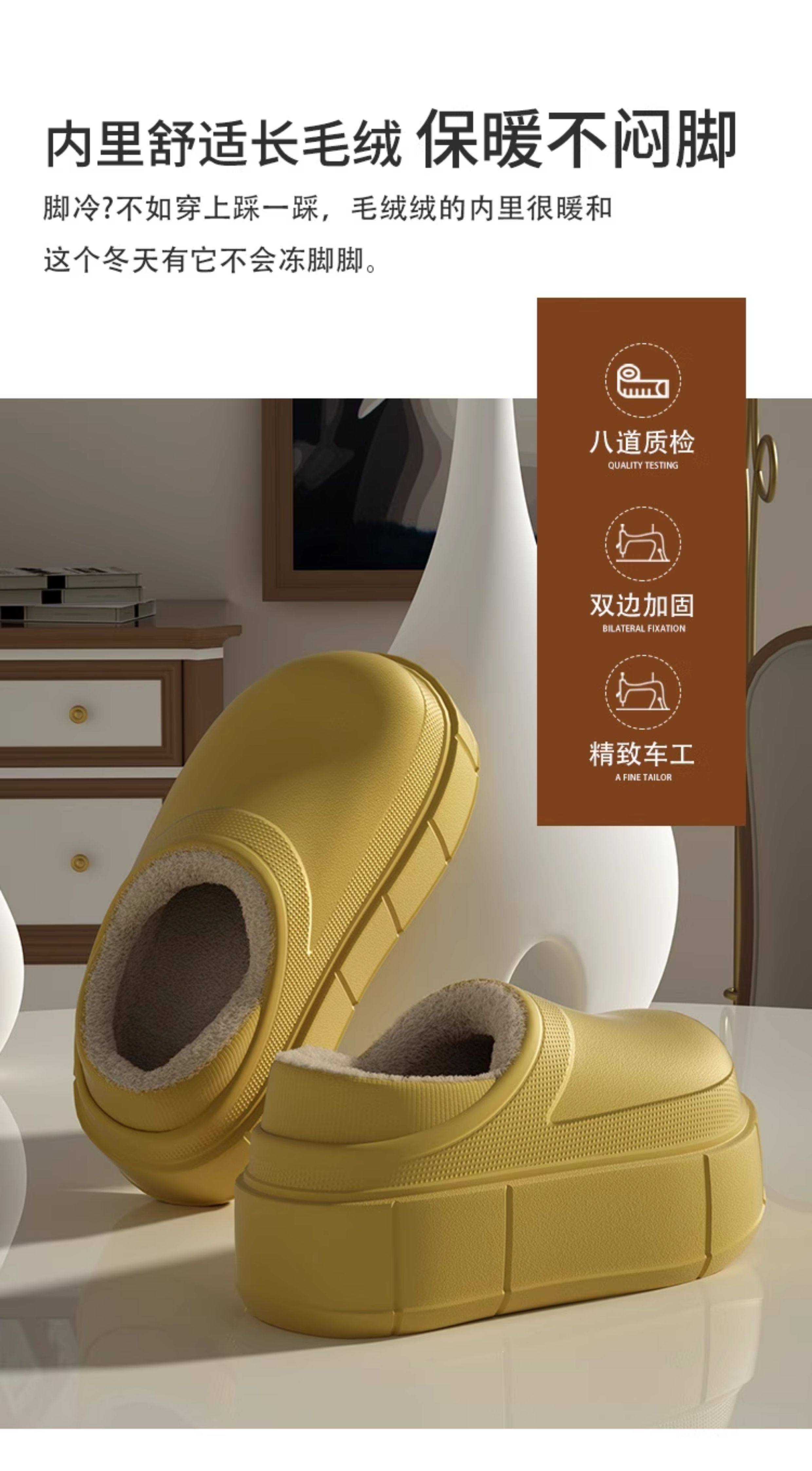 7.5 cm Thick-Soled, Height-Increasing, Waterproof, Closed-Back soft sole Cotton Slippers for Women, Suitable for Winter, Outdoor Wear, Home Use, Indoor, Fleece-Lined, Warm, and Soft
