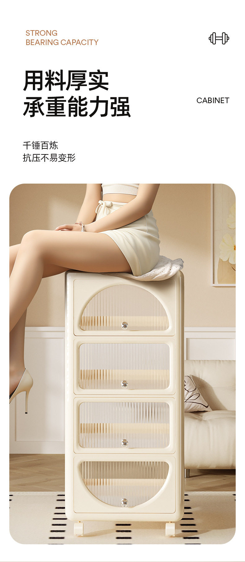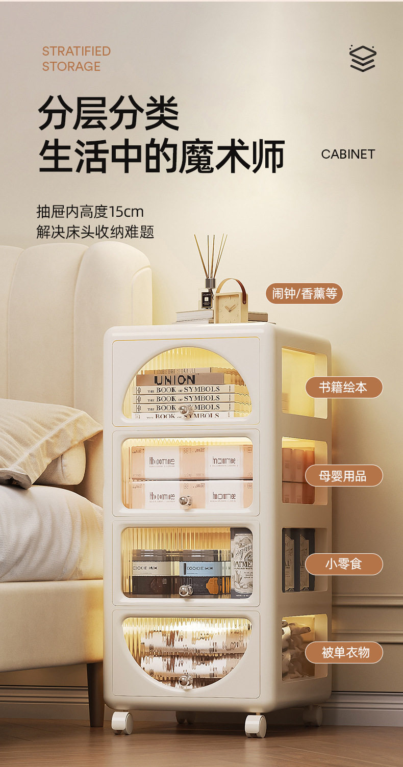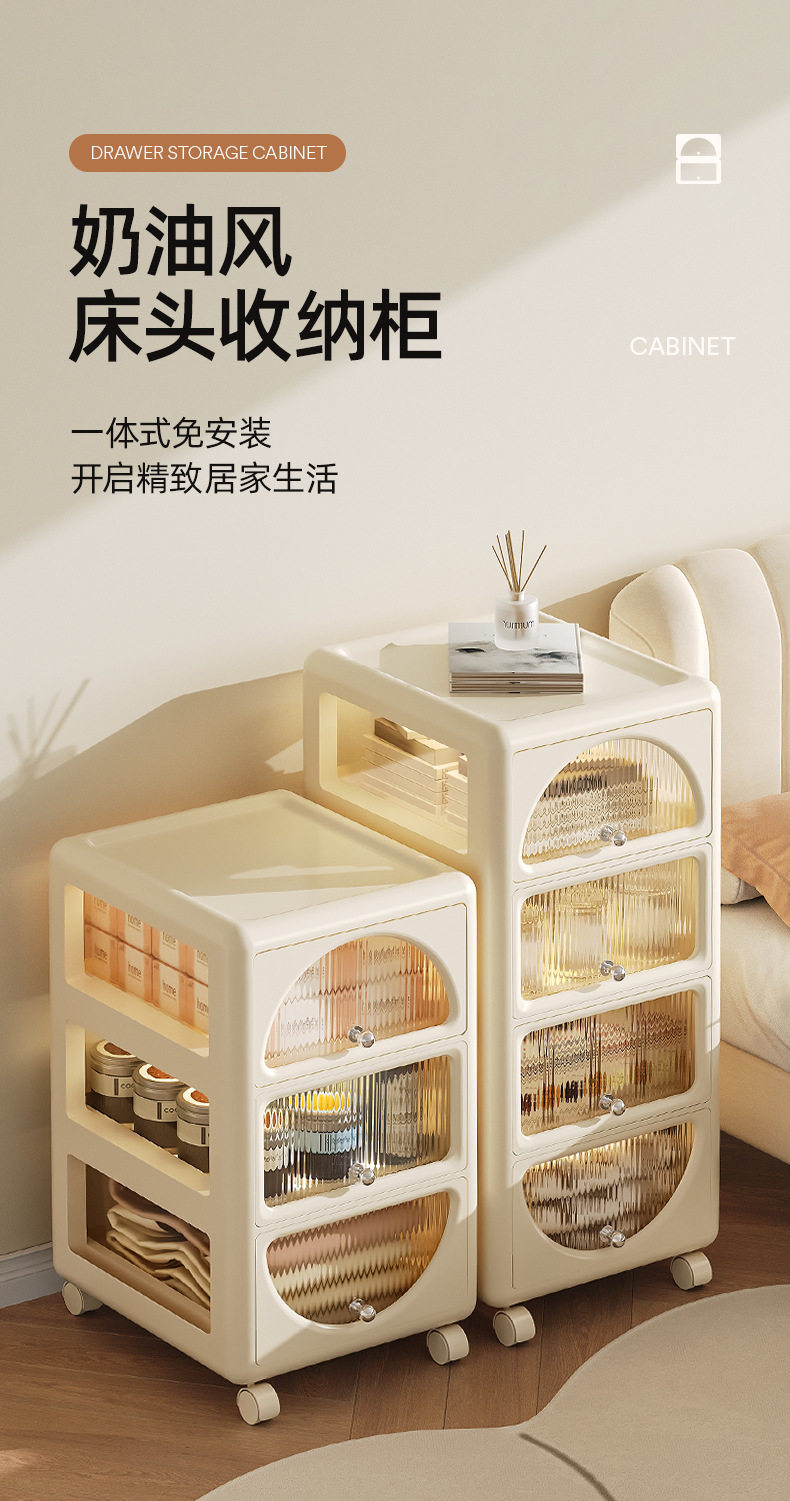 Bedside Table with Cream-Colored Drawers, Multi-Layer Storage Cabinet, Storage Box, Shelf, Simple Narrow Gap Alternative, a Must-Have Item