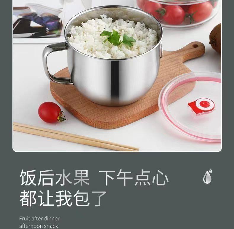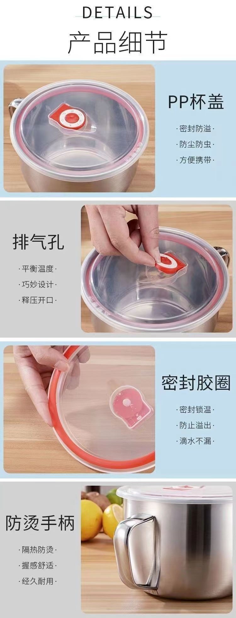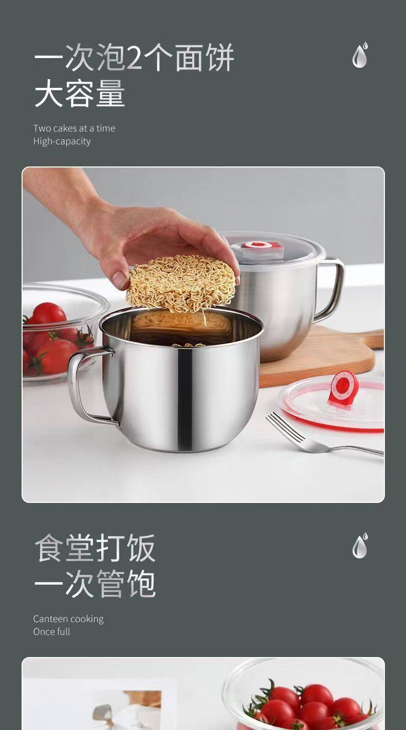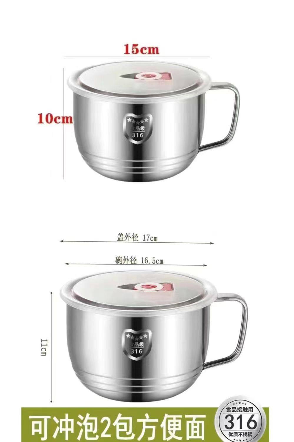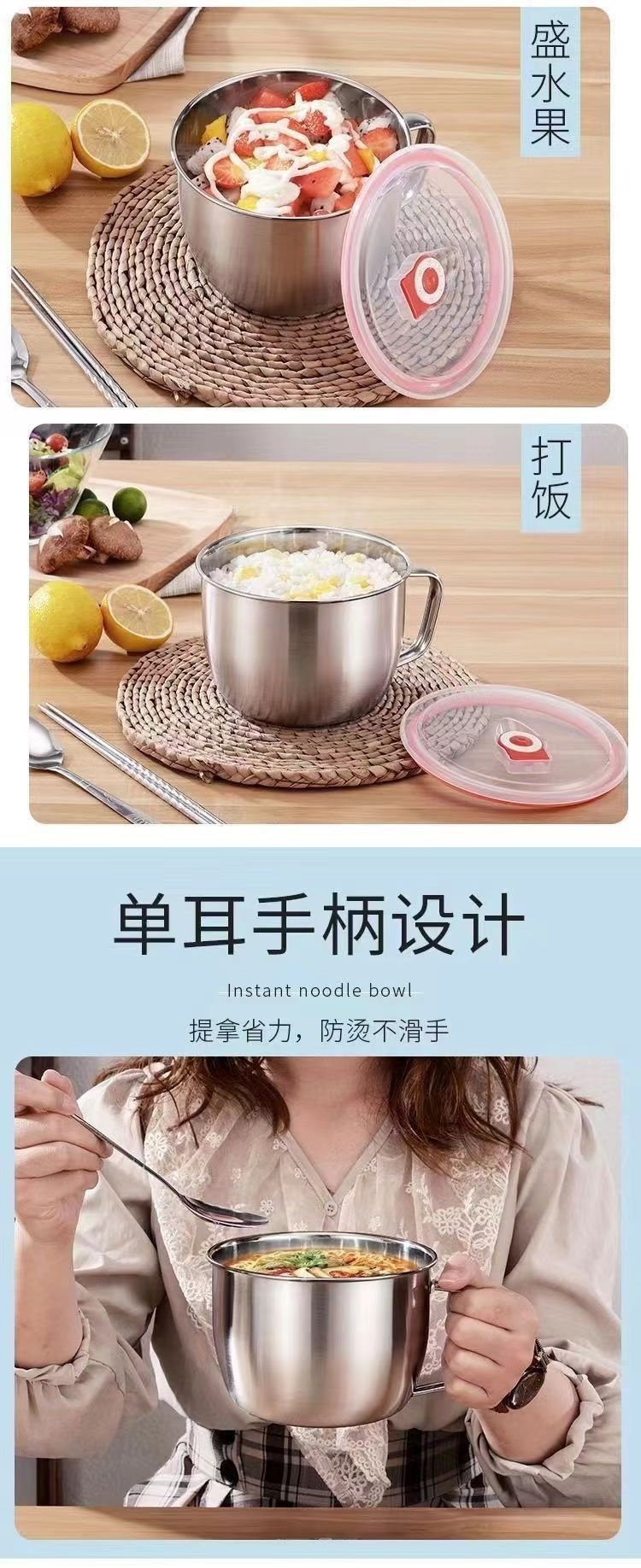 304 Stainless Steel Instant Noodle Bowl with Lid, Soup Noodle Bowl, Student Lunch Box, Canteen Rice Bowl, Fast Food Instant Noodle Cup