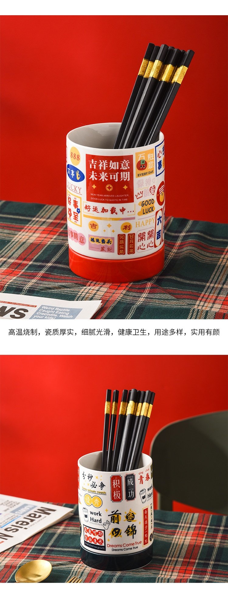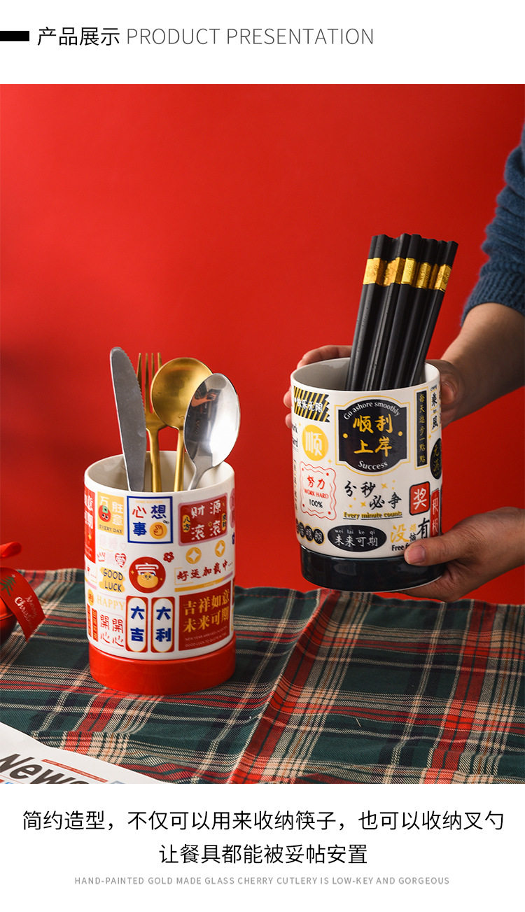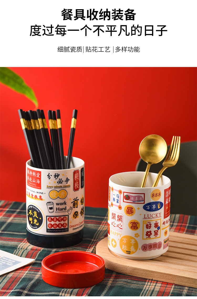 Chinese-Style Household Chopstick Holder Ceramic Creative Chopstick Basket with Drainage Kitchen Tableware Knife and Fork Storage Box Chopstick Cage Chopstick Bucket