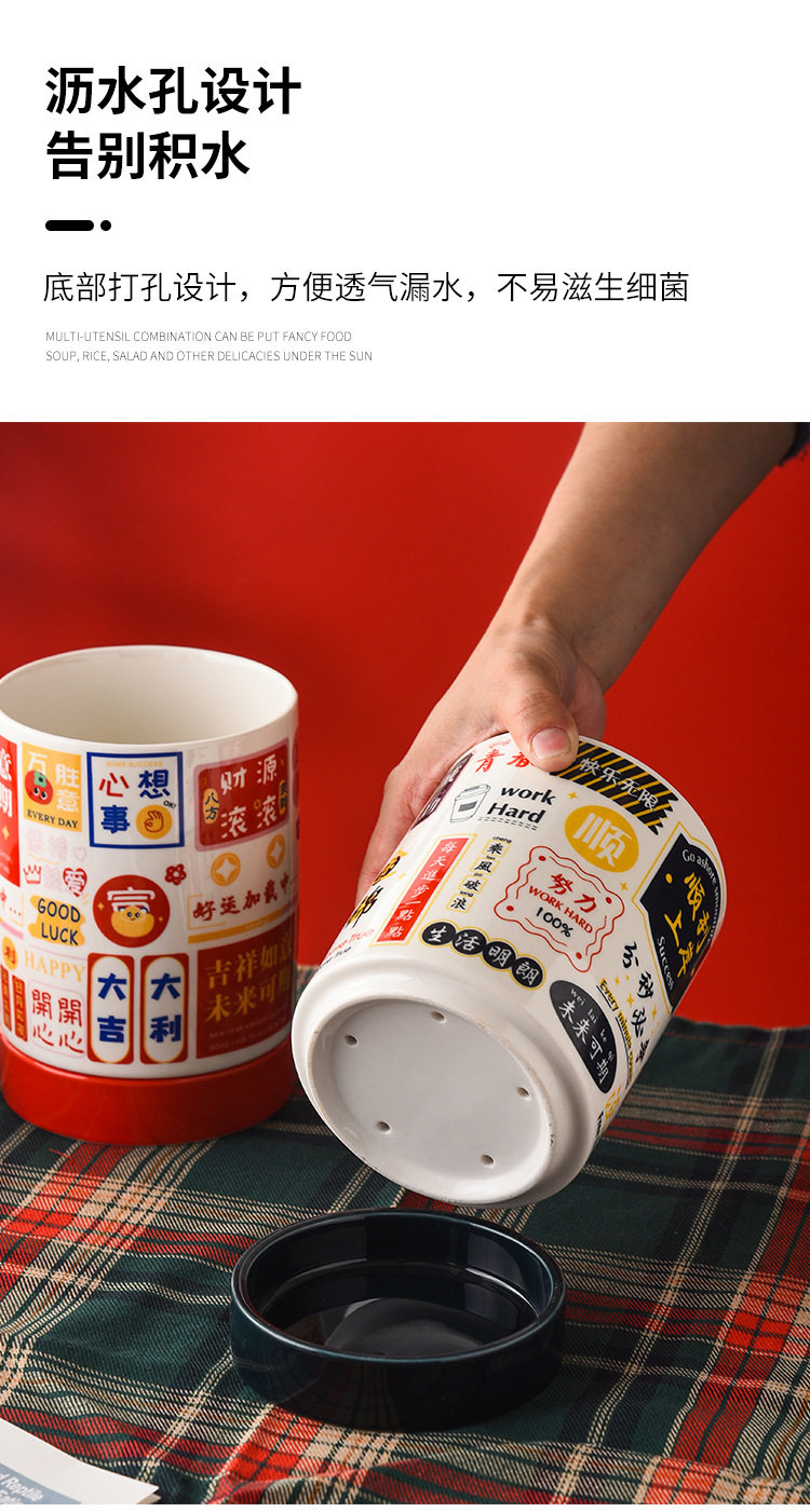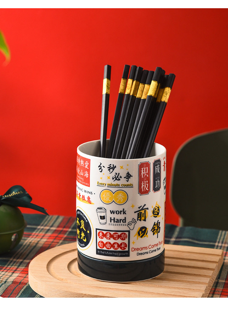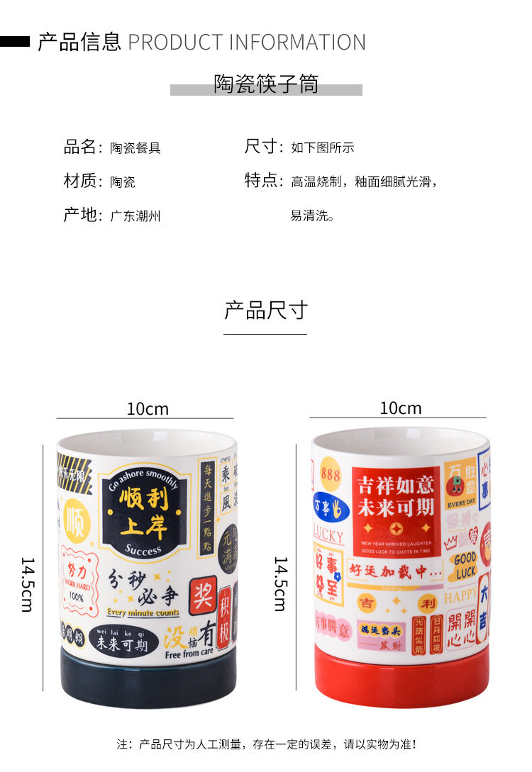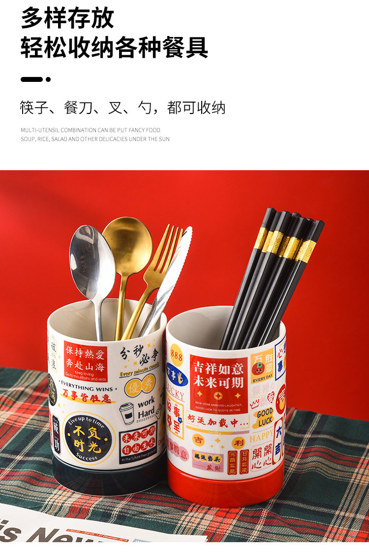 Chinese-Style Household Chopstick Holder Ceramic Creative Chopstick Basket with Drainage Kitchen Tableware Knife and Fork Storage Box Chopstick Cage Chopstick Bucket
