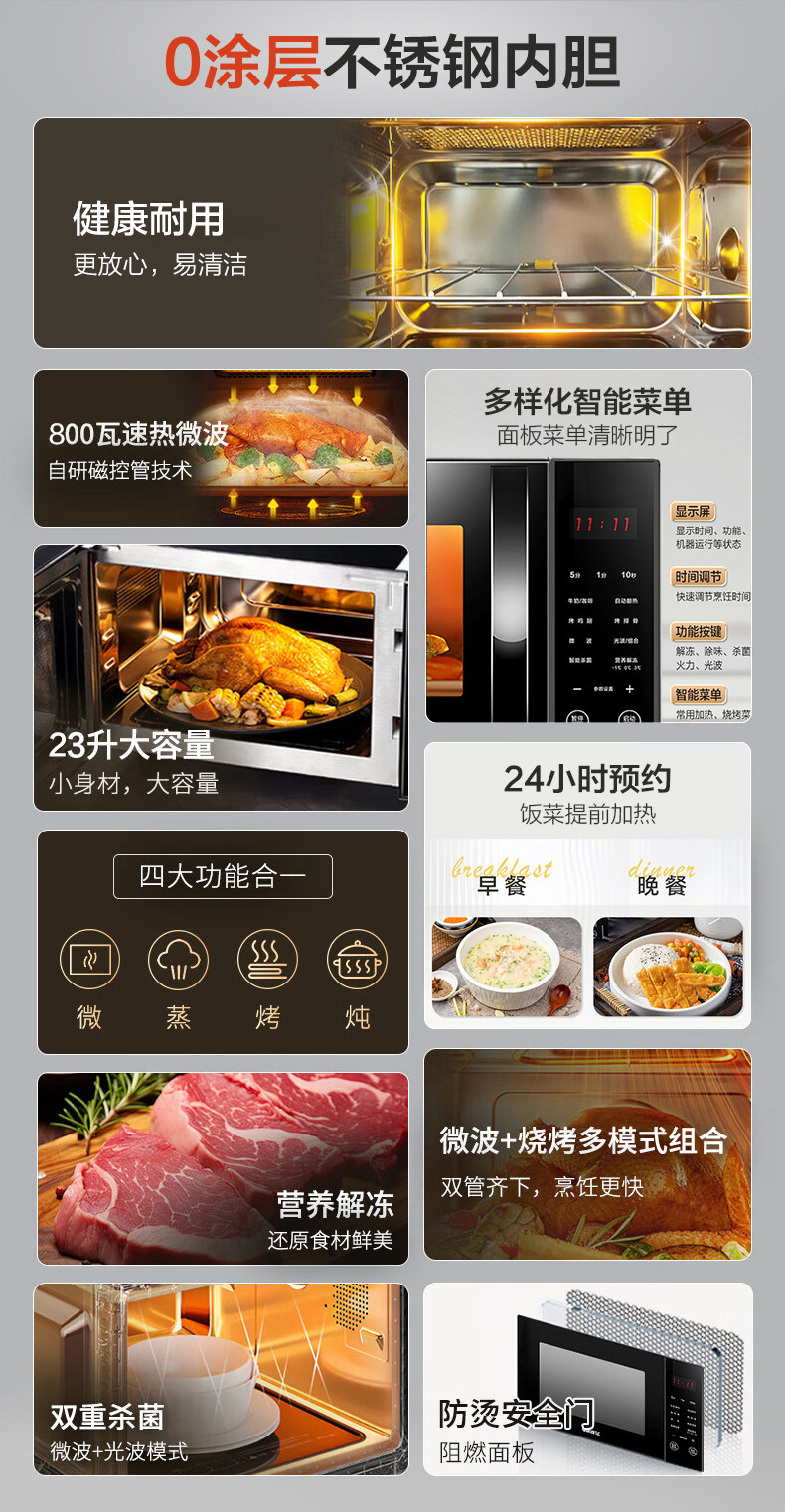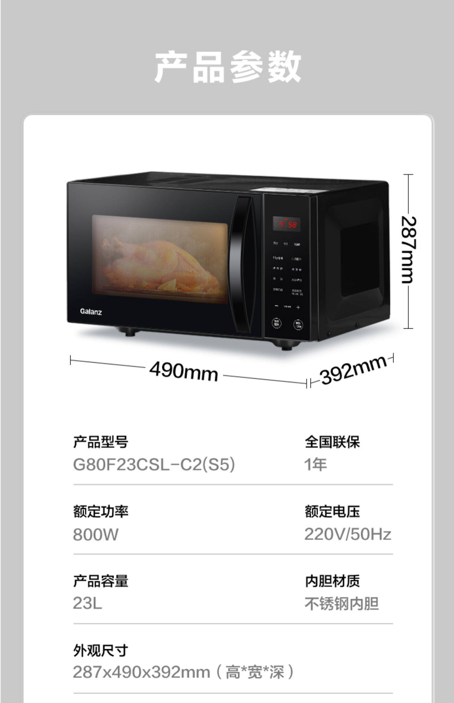 Galanz stainless steel inner liner microwave oven household micro steam oven integrated intelligent flat panel light wave genuine C2S5