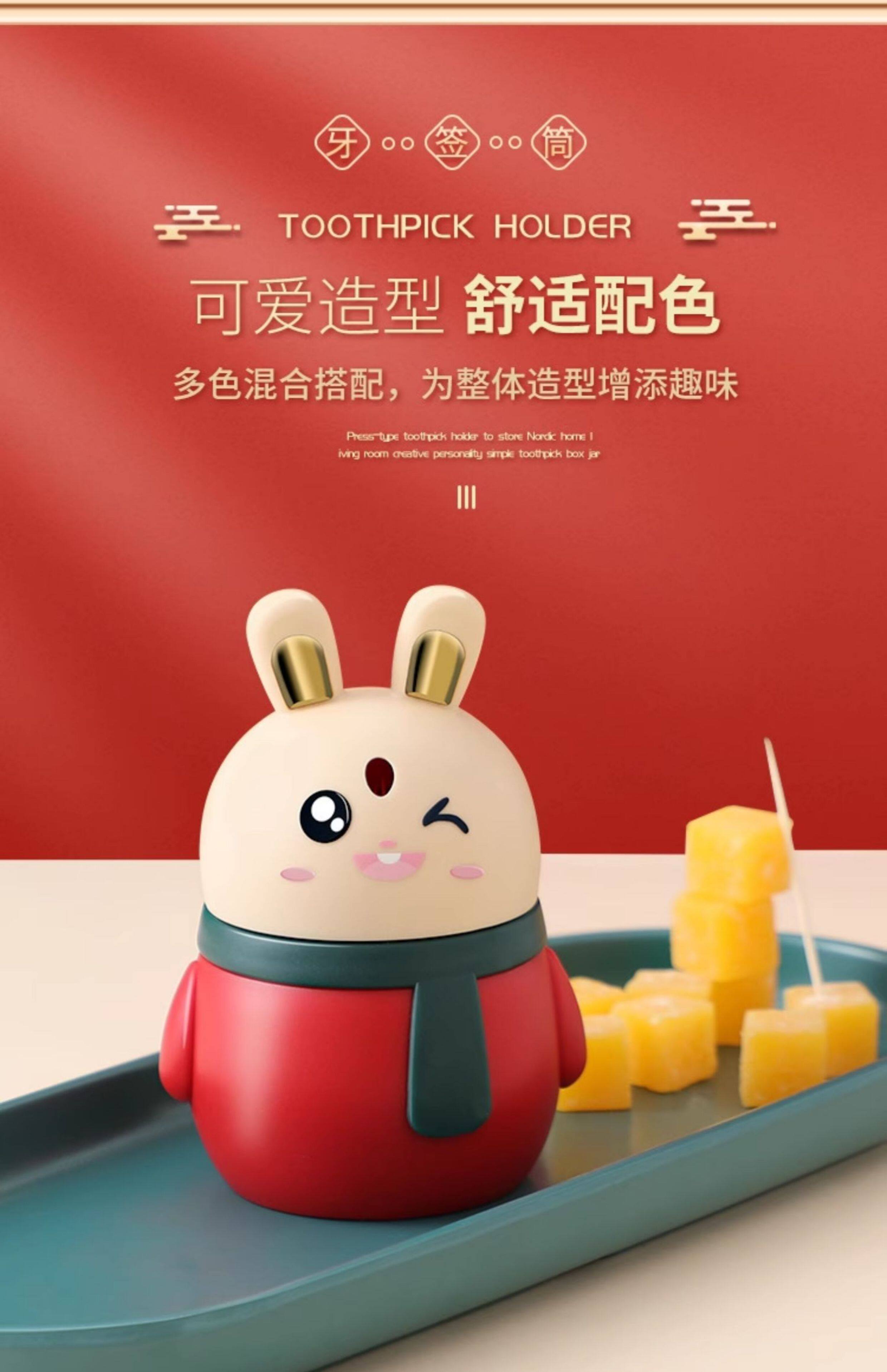Trendy Rabbit Toothpick Holder with Automatic Pop-Up, High Aesthetic Value, Personalized and Creative Fruit Toothpick Container for Home Use