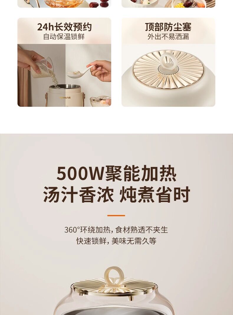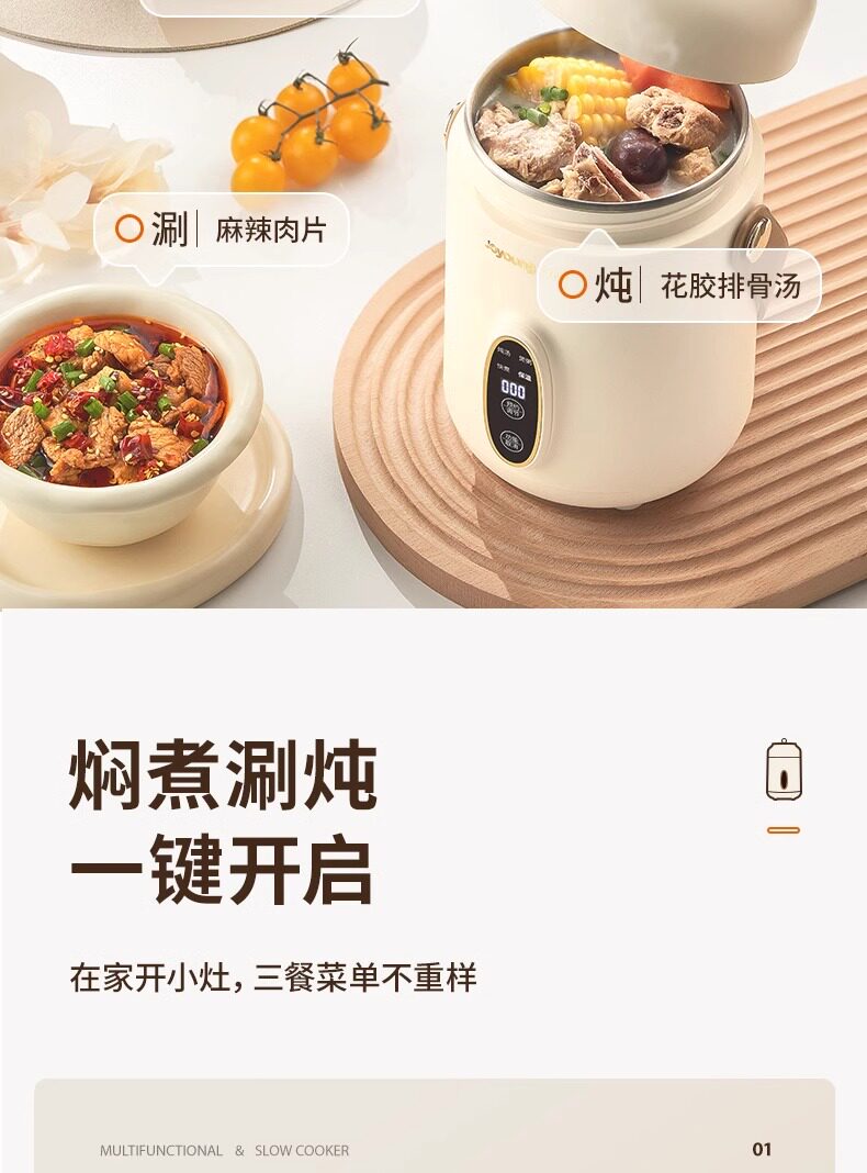 Joyoung Electric Stew Pot, Fully Automatic Multi-Functional Electric Stew Cup, Household Small Health Cup, Portable Porridge Cooker