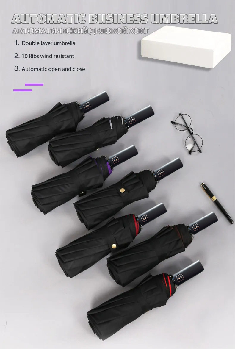 New Product: Fully Automatic Wind-Resistant Sun Umbrella with Ten Ribs, Double-Layer Business Umbrella for Sun and Rain, Simple Large Size 70% off Sunshade Umbrella