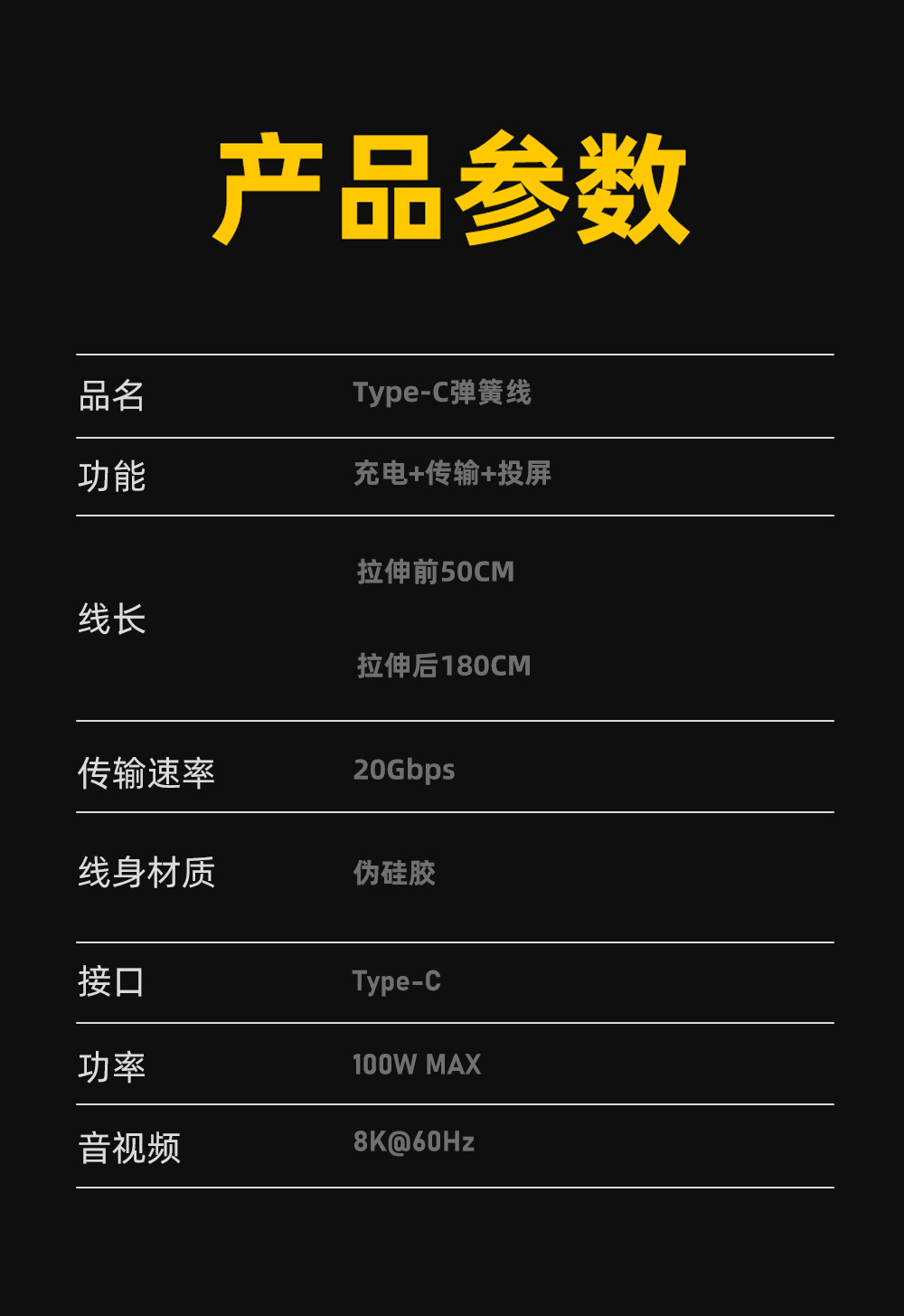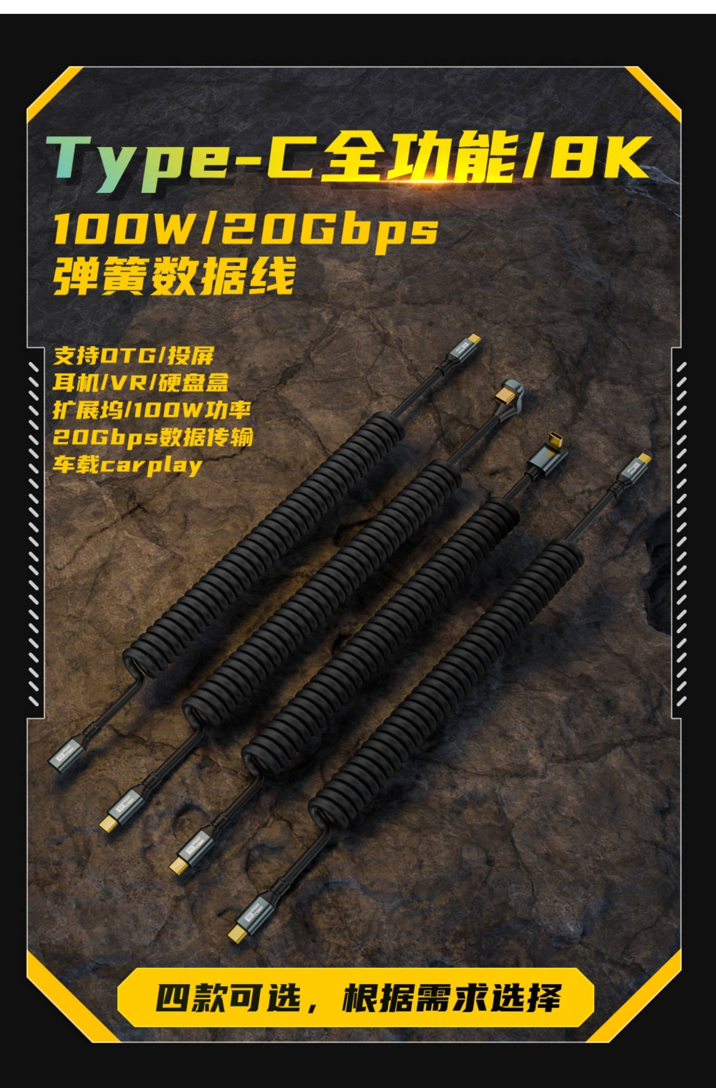 Color Classification 【Ne1】C Male to C Female Straight Spring Cable●20Gbps Transmission●100W Fast Charge●8K Screen Projection,【Ne1】C to C Straight Spring Cable●20Gbps Transmission●100W Fast Charge●8K Screen Projection,【Ne1】C to C Right-Angle Spring Cable ● 20Gbps Transmission ● 100W Fast Charge ● 8K Screen Projection,【 1.8m 】C Male to C Male U-Shaped Spring Wire●20Gbps Transmission●100W Fast Charge●8K Screen Projection