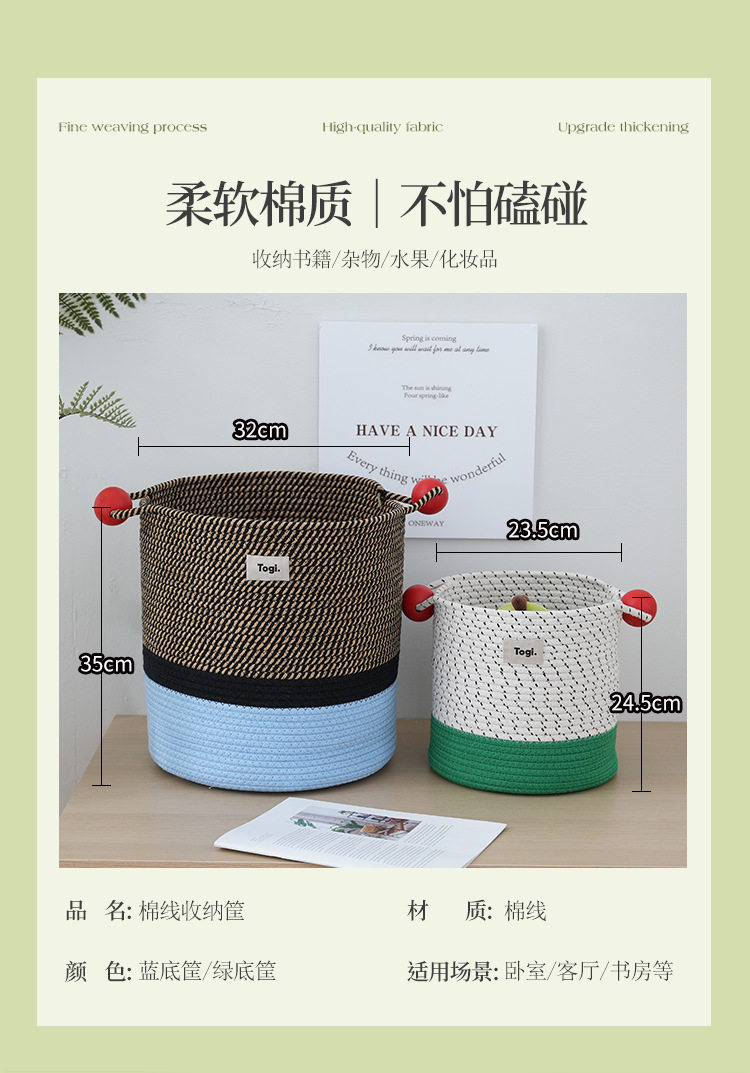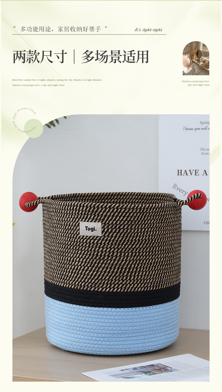 Togi Machine Lingmu Dirty Clothes Storage Basket ins Wind Internet Celebrity Home Cotton Rope Storage Bucket Dirty Clothes Basket Storage Box