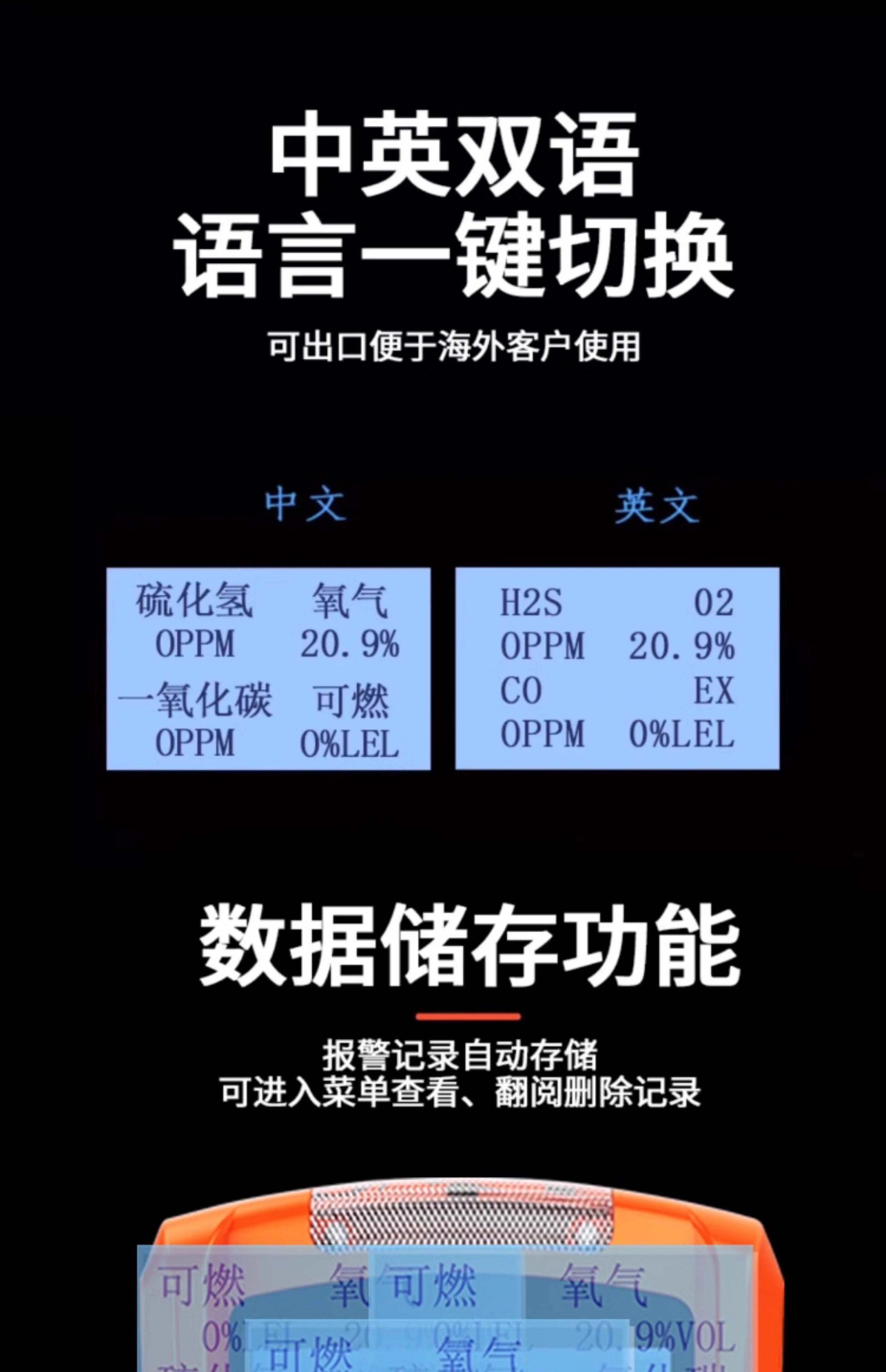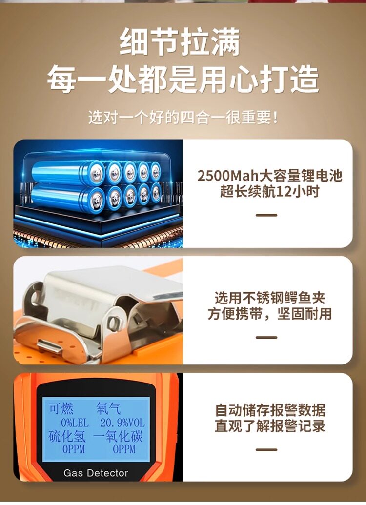 Portable Multifunctional Gas Detection Instrument, Four-In-One Alarm, Toxic Concentration Detector for Limited Spaces