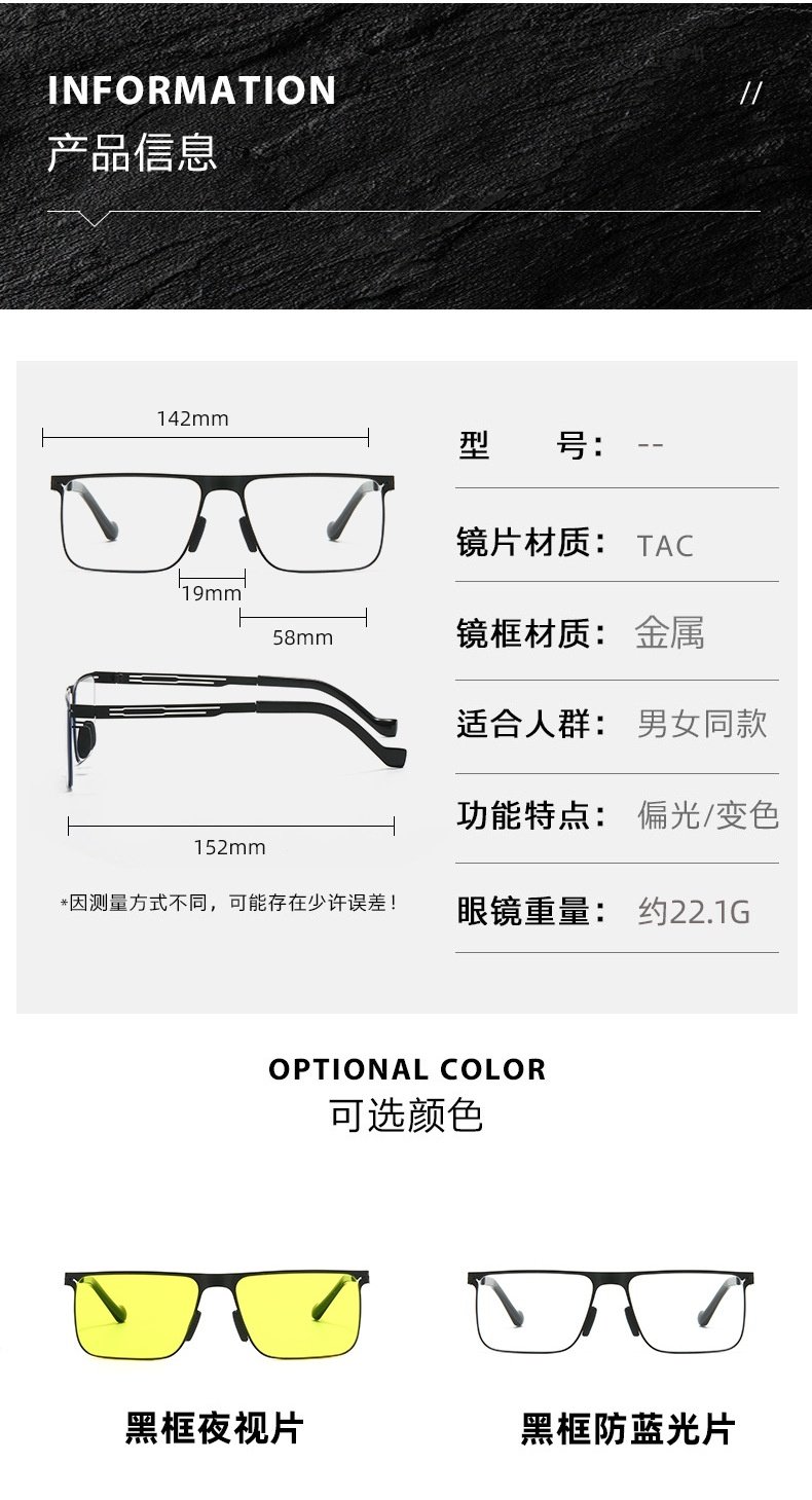 Sort by color Black frame night vision discoloration,Black frame black gray pieces,3-piece set,Black frame black and gray film (blue film coating)