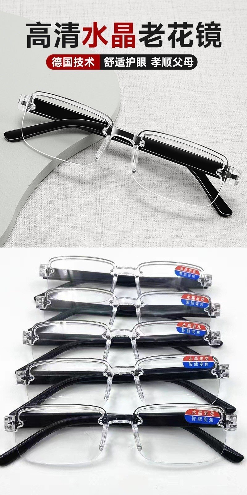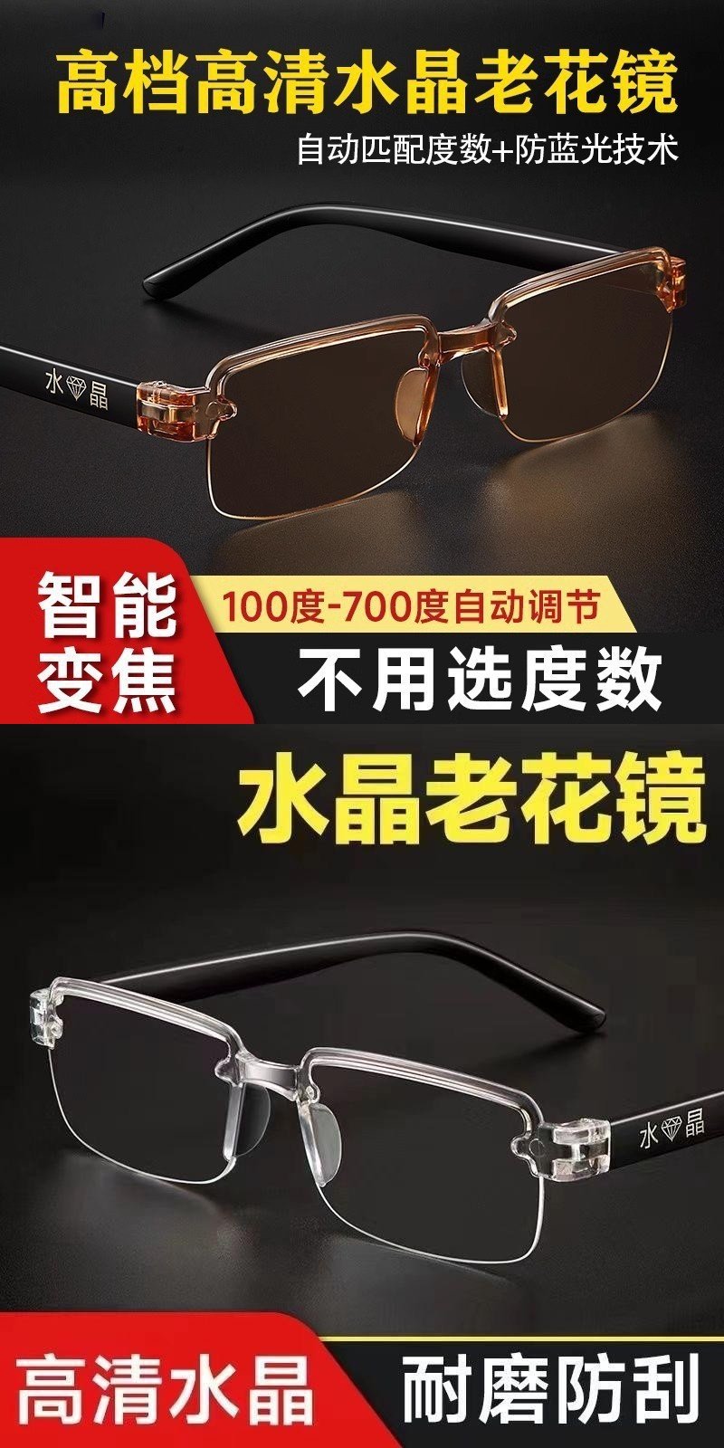 Automatic Zoom 100-700 Degrees Near and Far Reading Glasses Old Light Reading Glasses Radiation Protection Adult Frameless