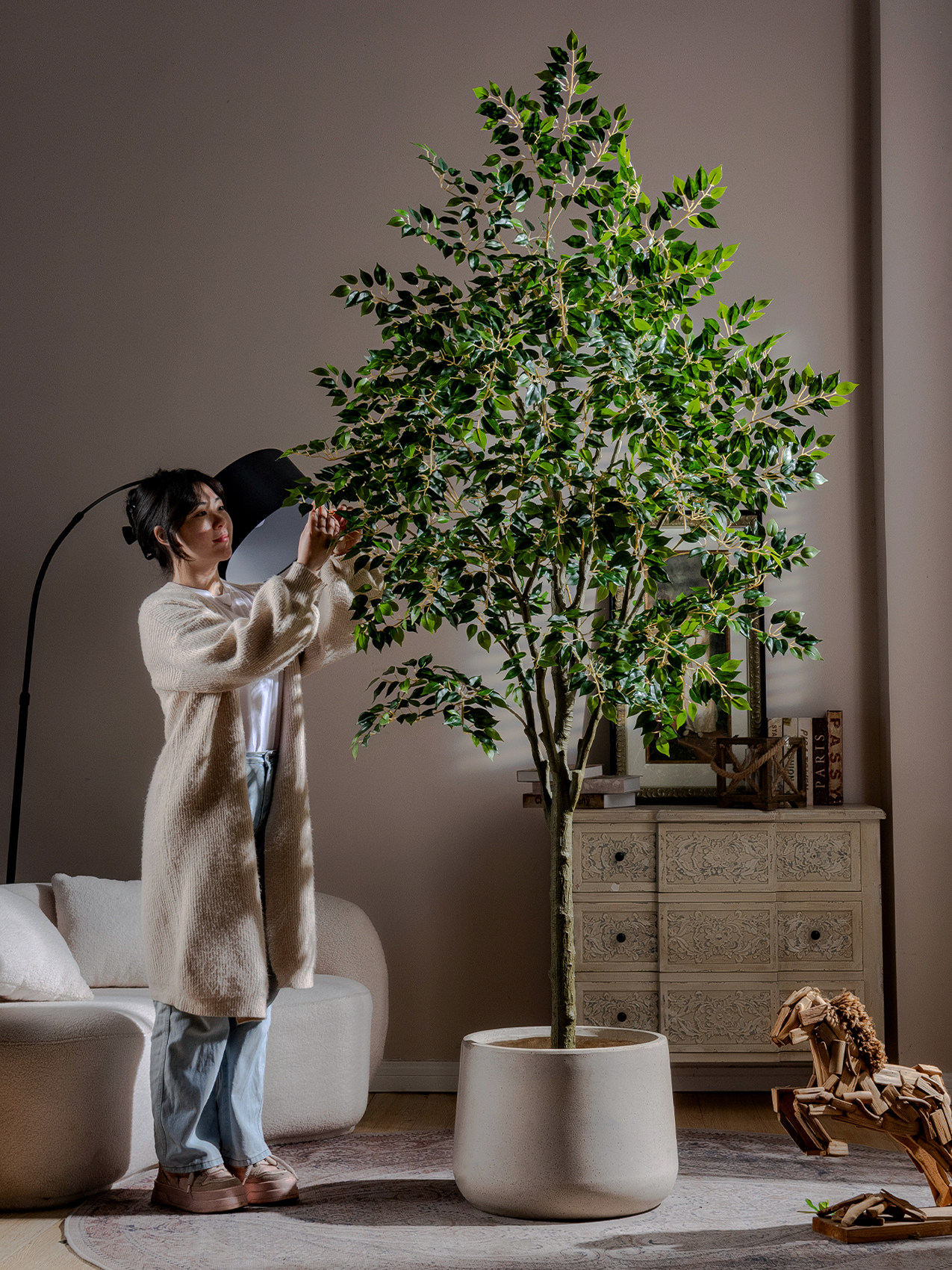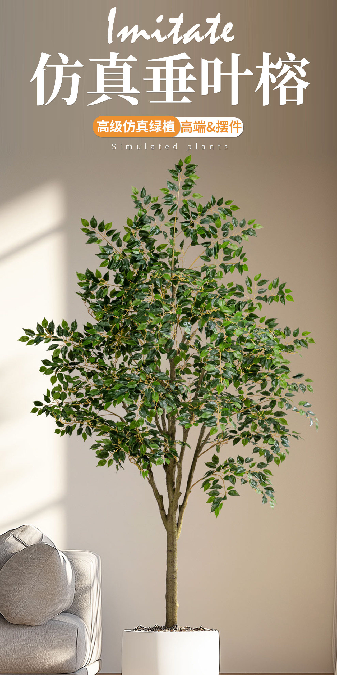 Simulated Banyan Tree, High-End Bionic Green Plant for Landscaping and Decoration, Indoor Living Room Artificial Tree, High-End Light Luxury Floor-Standing Plant Ornament
