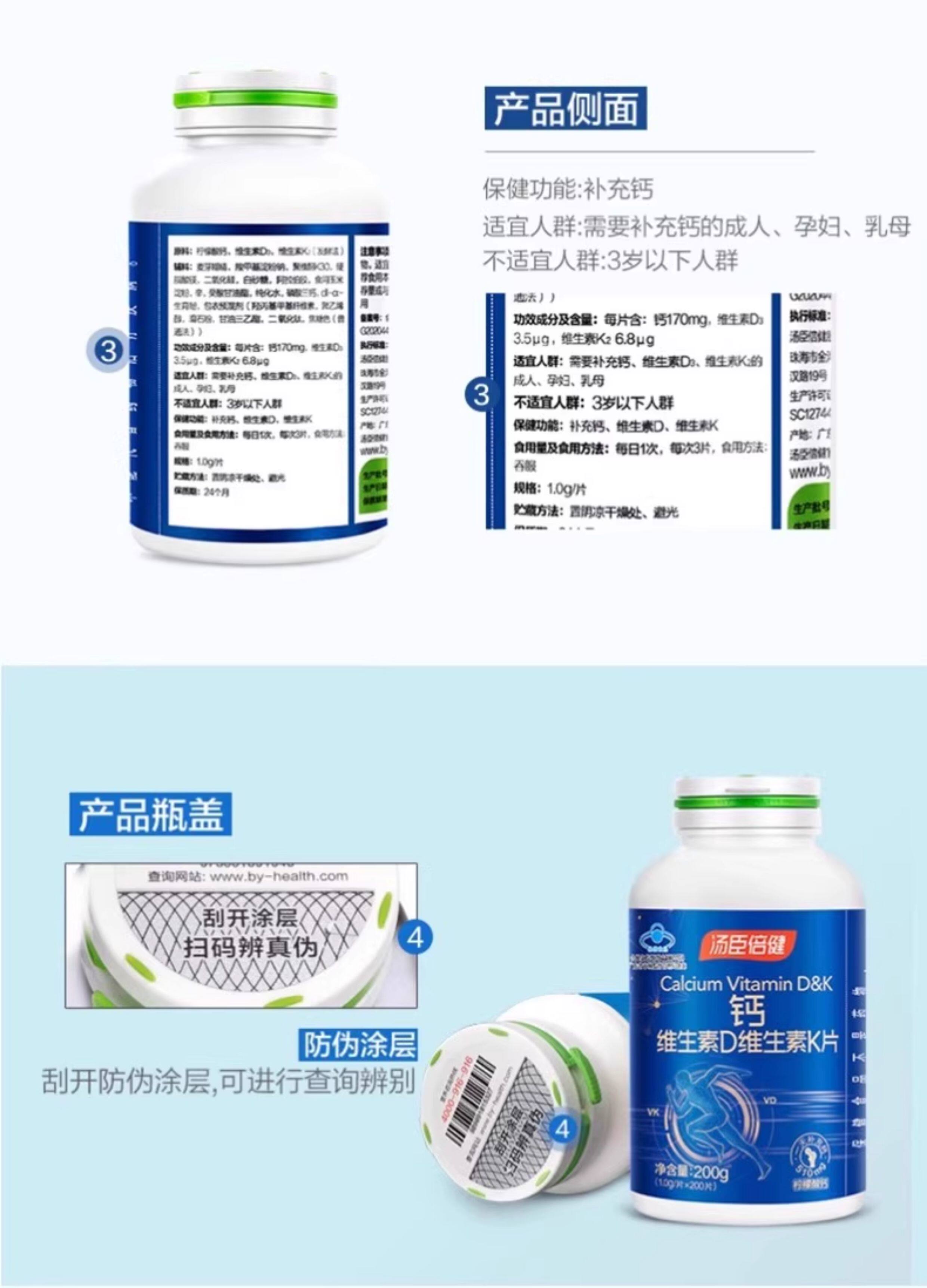 By-Health Calcium Citrate Vitamin D Vitamin K Calcium Supplement Tablets for Middle-aged and Elderly Pregnant Women Men and Women Official Authentic