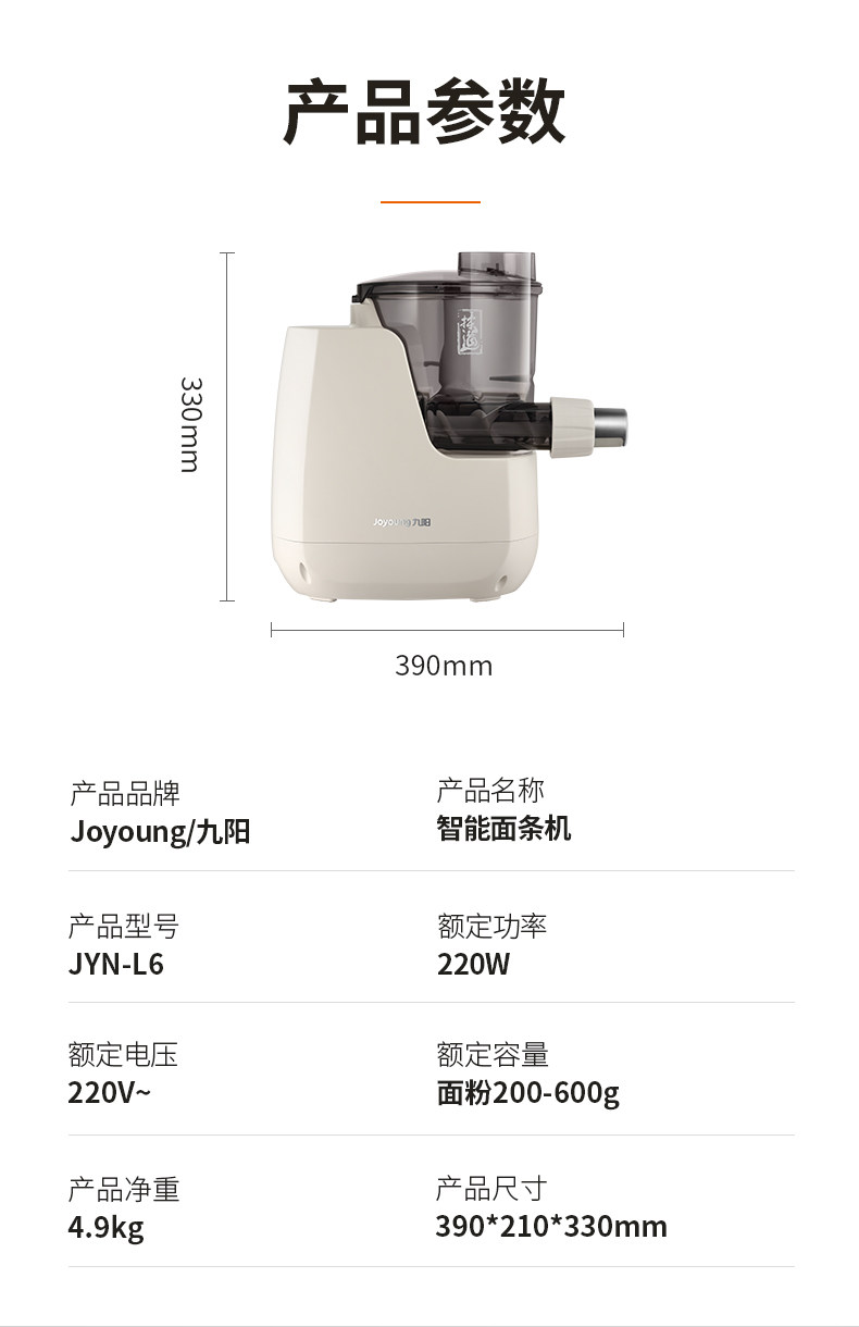 Joyoung Noodle Maker for Home Use, Fully Automatic Electric Noodle Press, Smart Cooking Machine, Multi-Function Dough Mixer L6