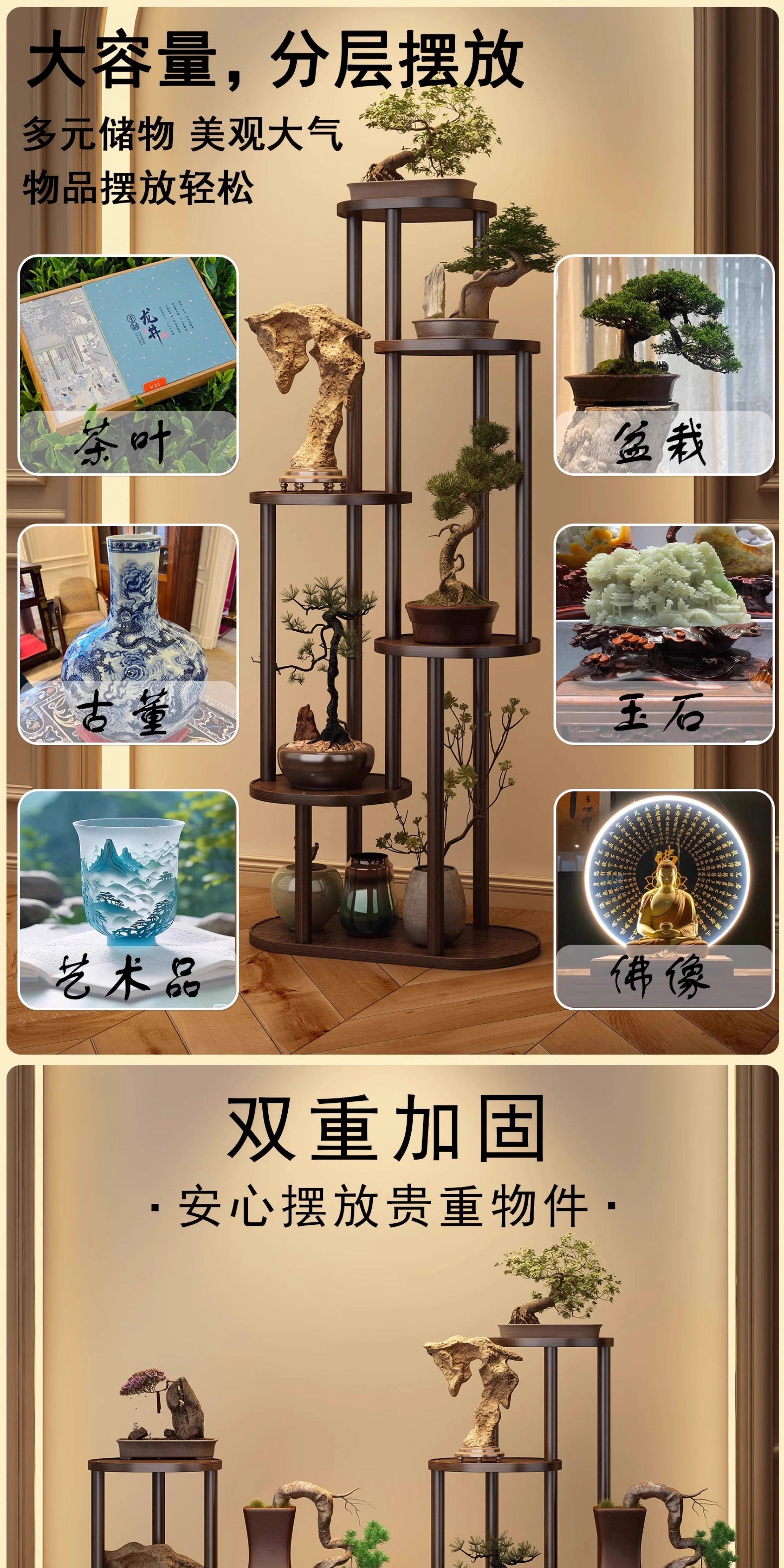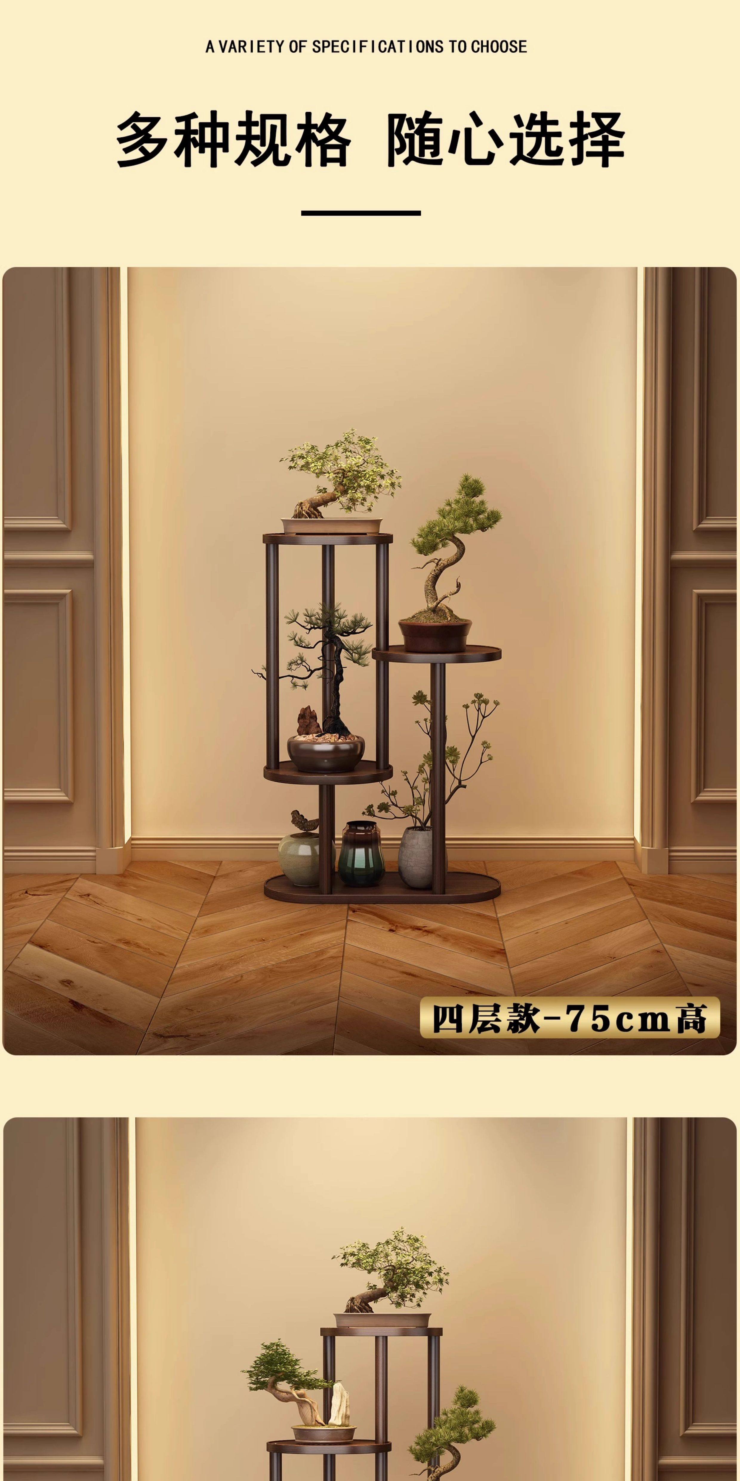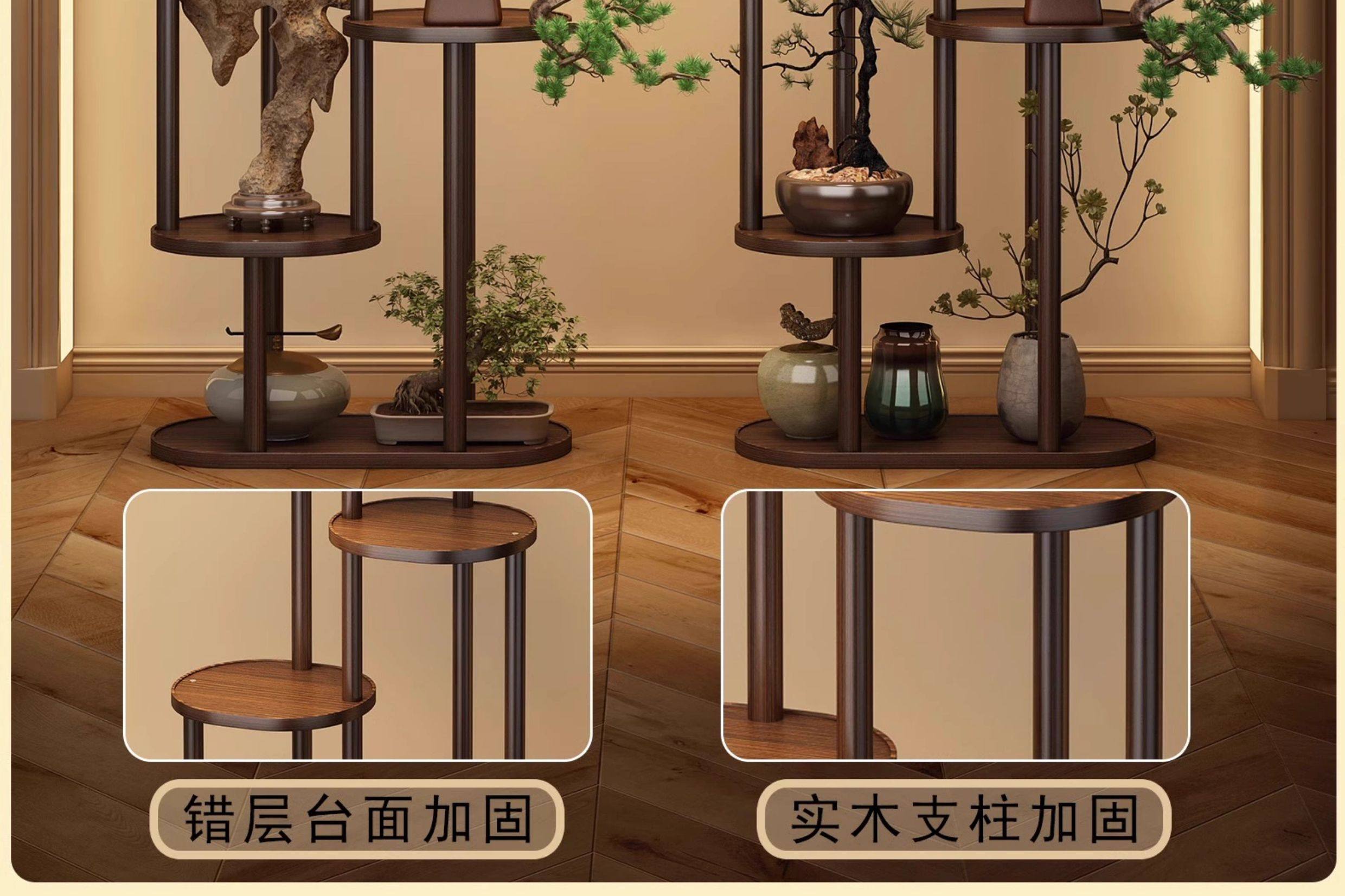 Solid Wood Tabletop Flower Stand, Simple Ornament Display Rack, Taihu Stone Tea Display Stand, Modern Tea Set and Antique Storage Rack