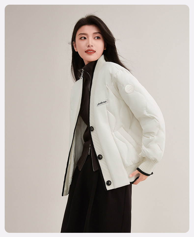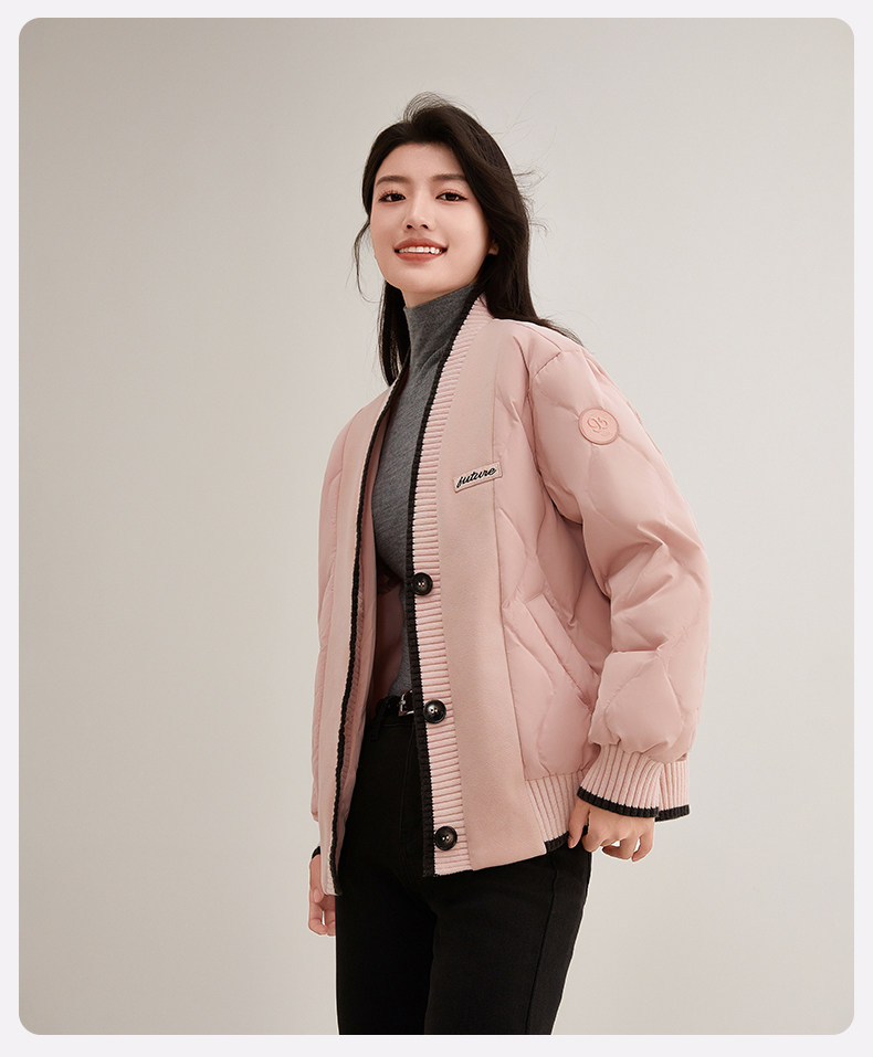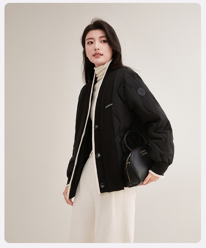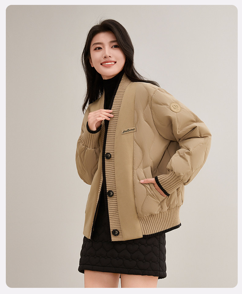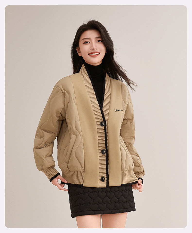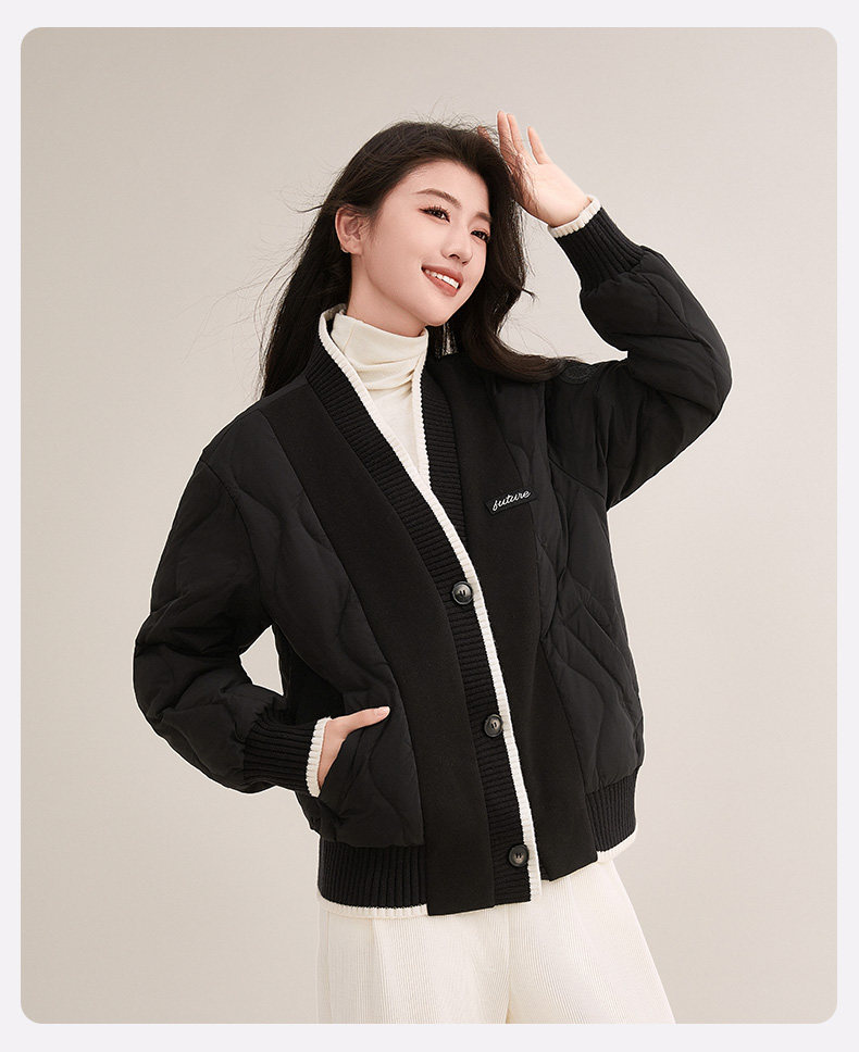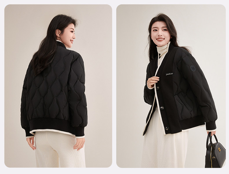 Duck Duck Knitted Patchwork down Jacket for Women, Short Style, 2025 New Autumn/Winter Fashionable Design, Petite Warm Coat