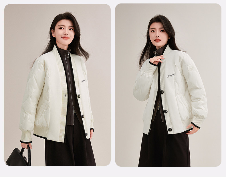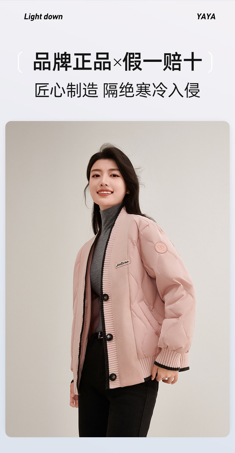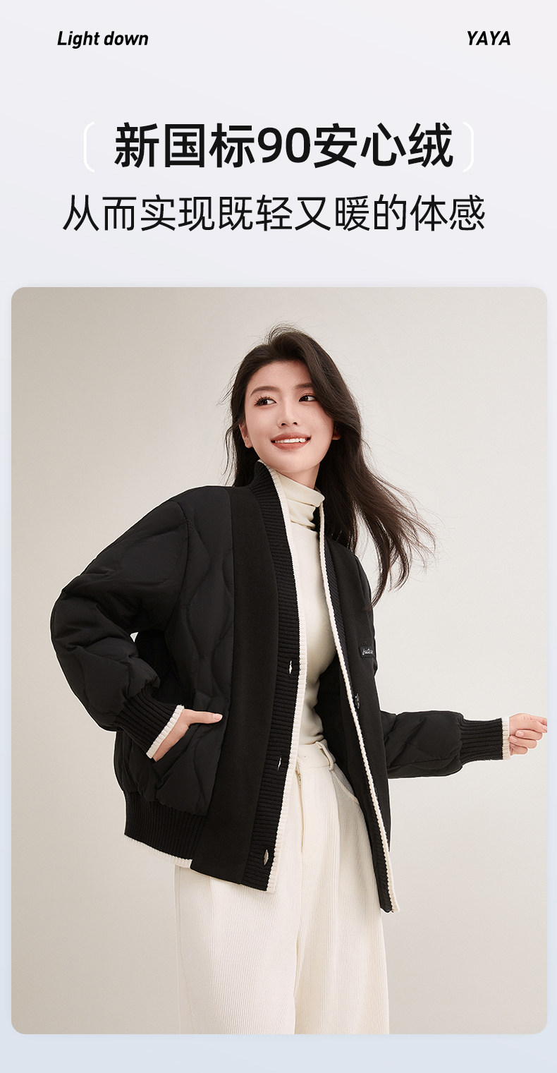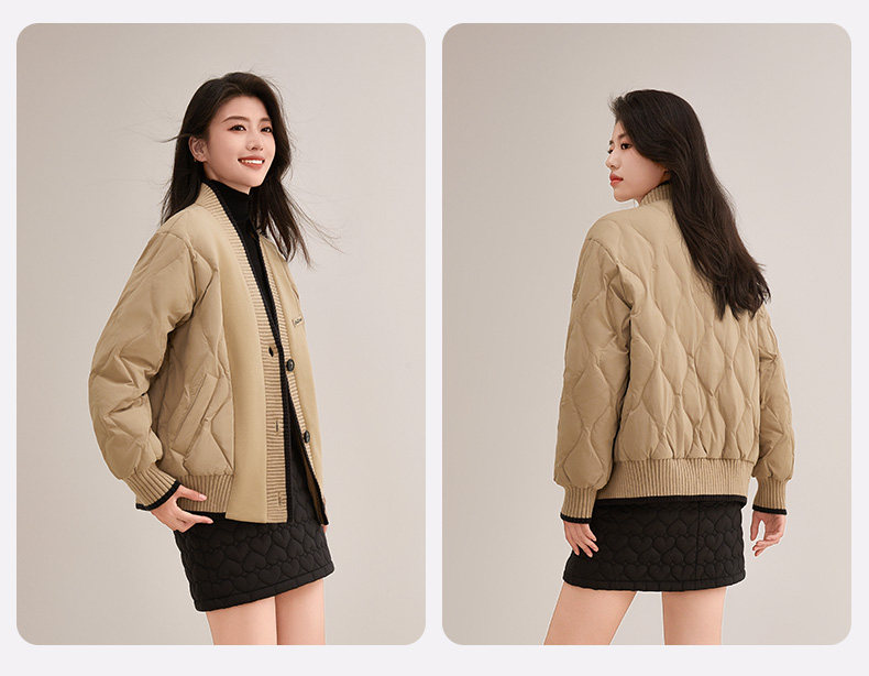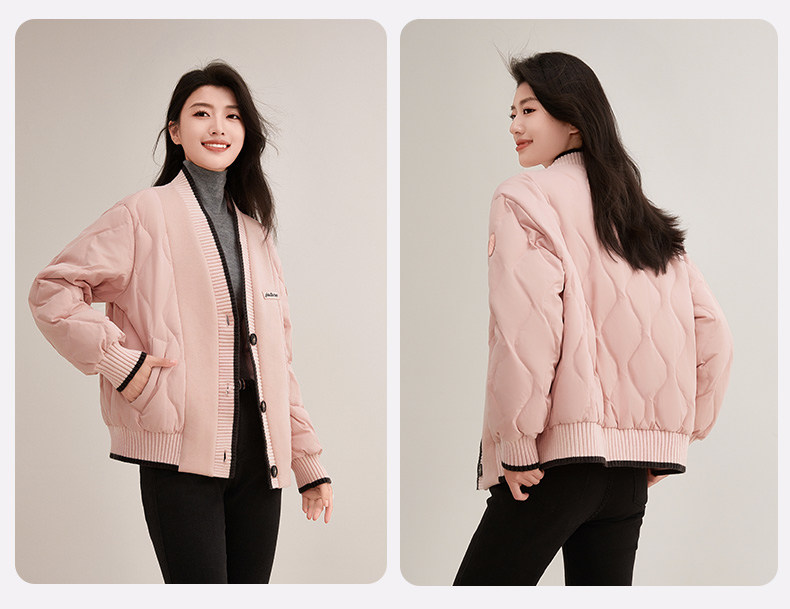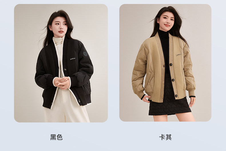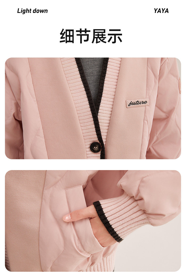 Duck Duck Knitted Patchwork down Jacket for Women, Short Style, 2025 New Autumn/Winter Fashionable Design, Petite Warm Coat