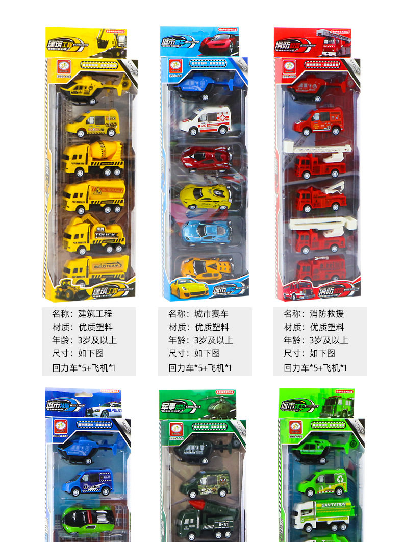 Children's 399 Cartoon Pull-Back Toy Car City Engineering Military Set Boys' Car Model Hot Sale at Street Stalls