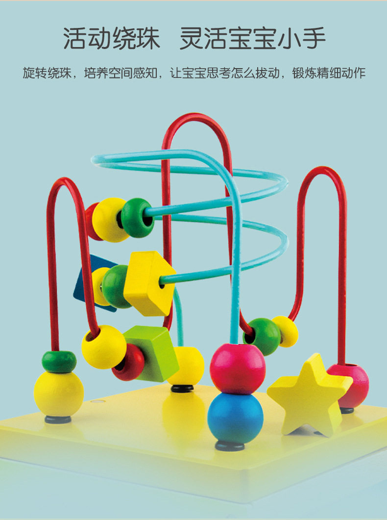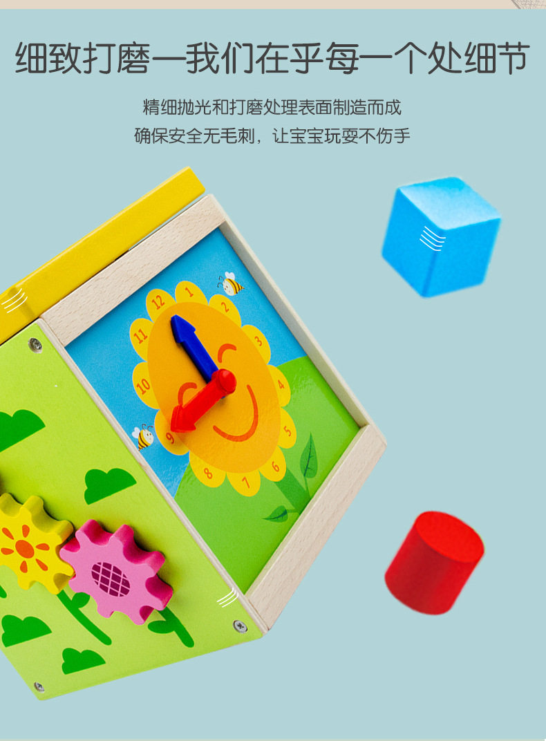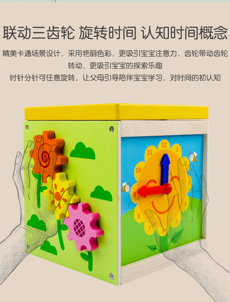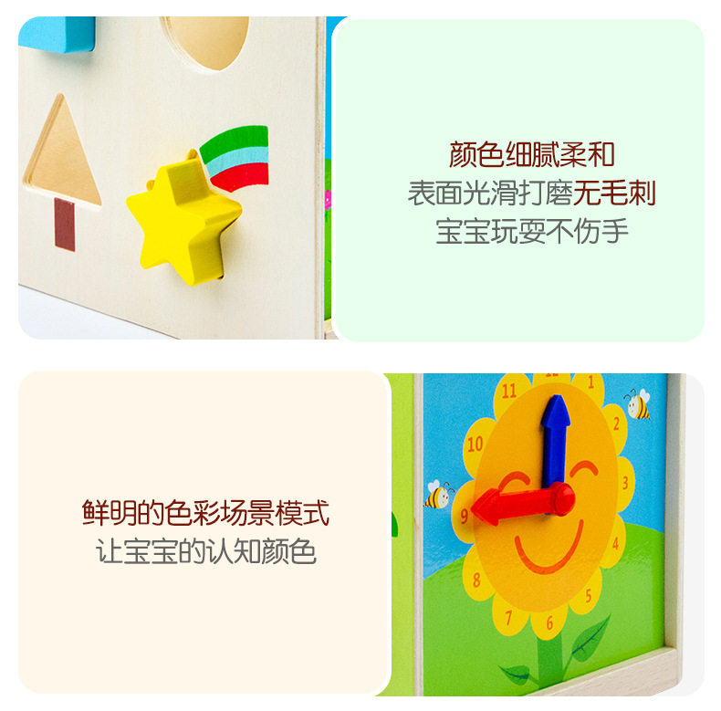 Wooden Four-Sided Multifunctional Geometric Shape Matching Bead Stringing Cognitive Clock Early Education Toy for Montessori Early Education