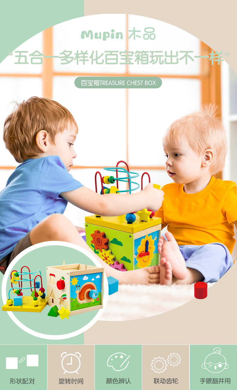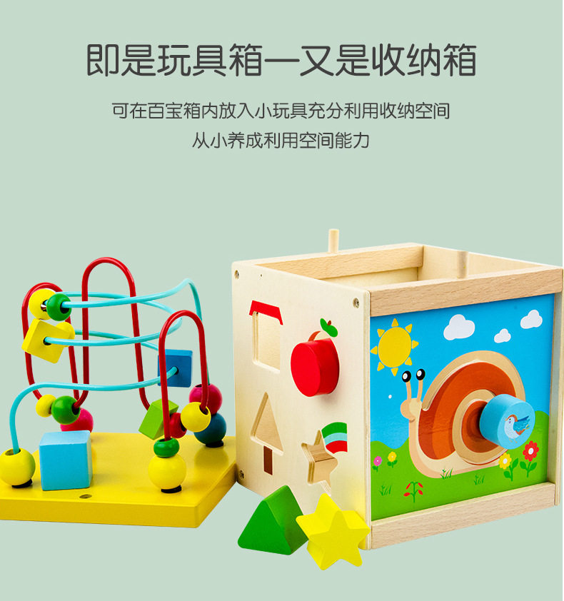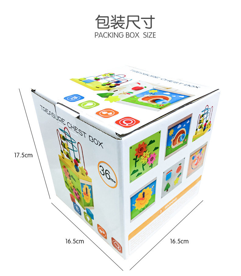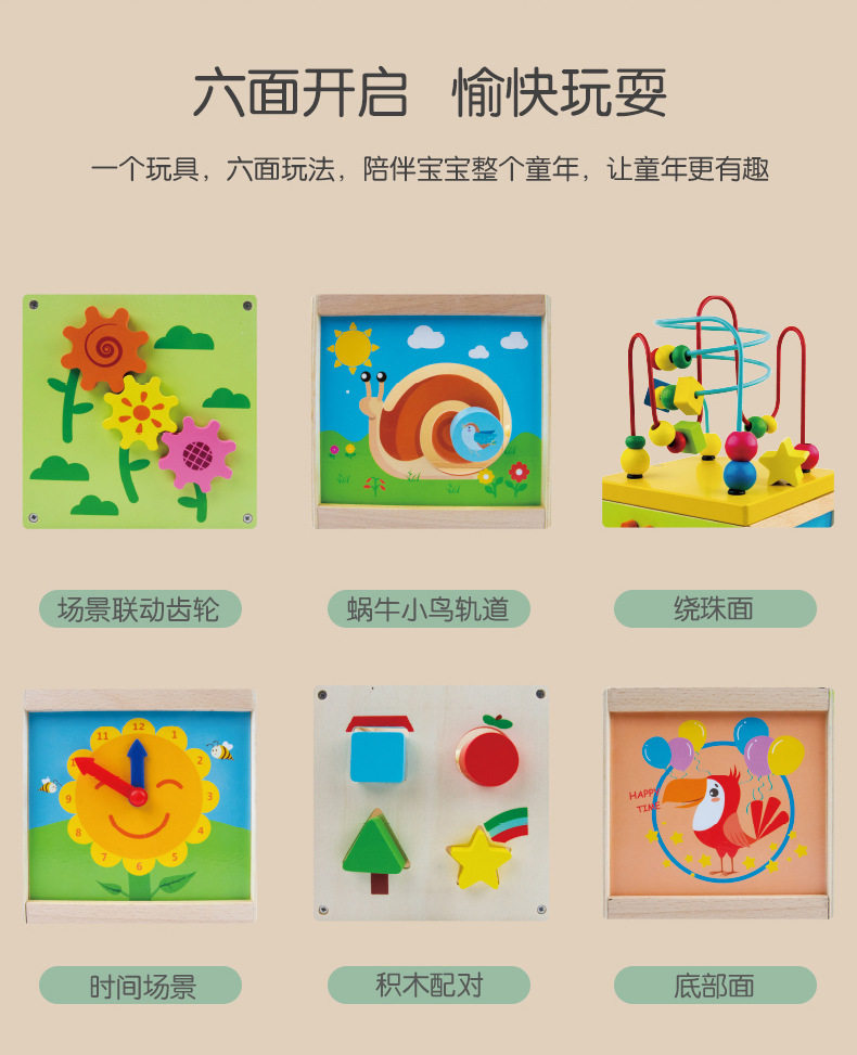 Wooden Four-Sided Multifunctional Geometric Shape Matching Bead Stringing Cognitive Clock Early Education Toy for Montessori Early Education