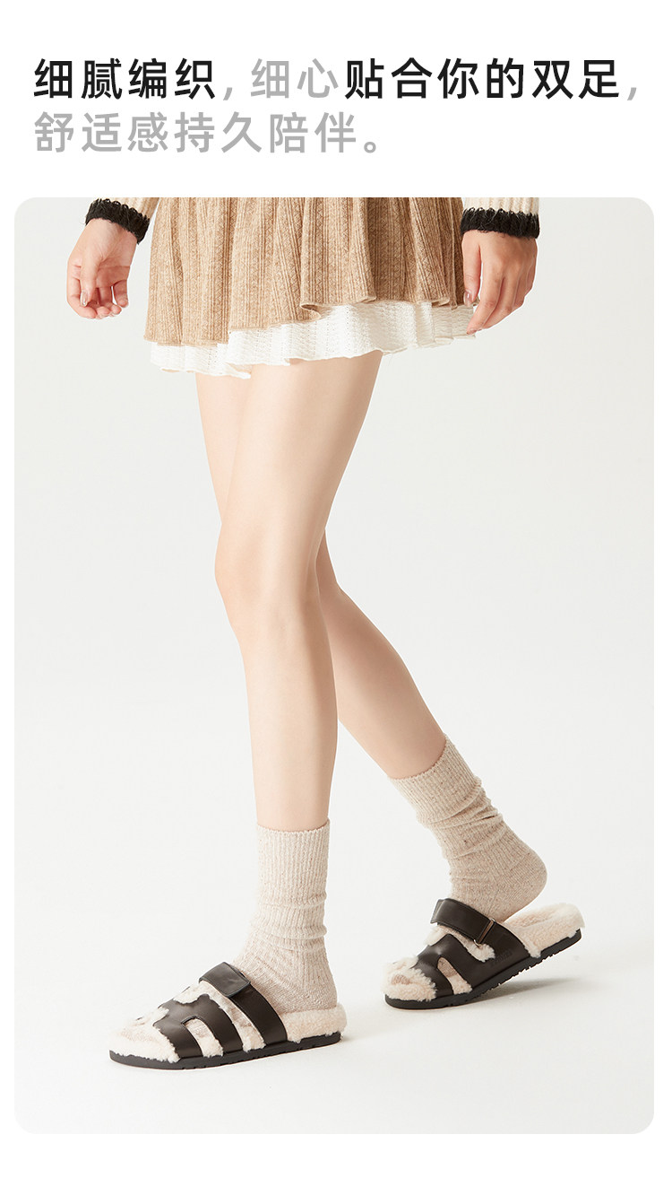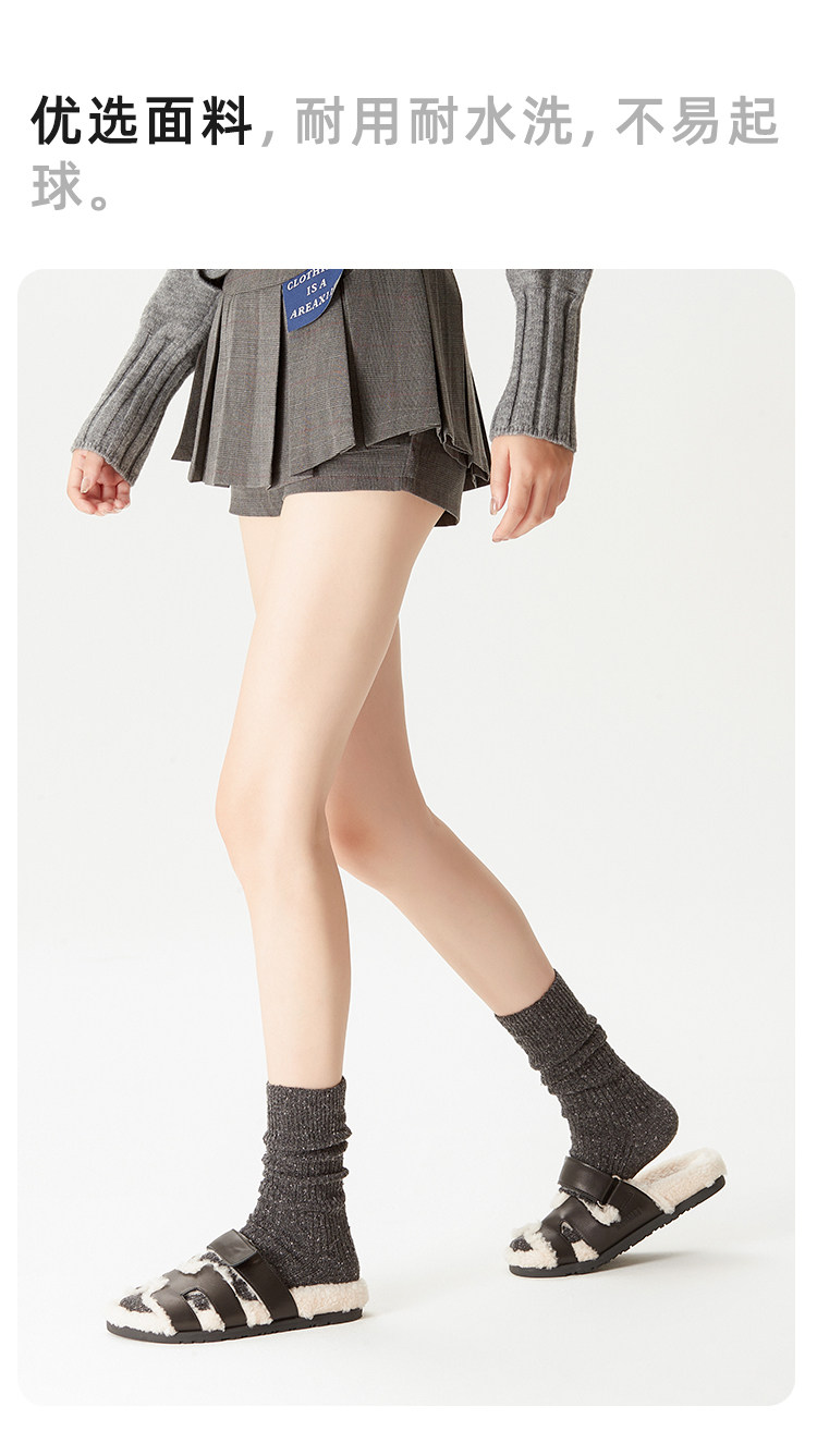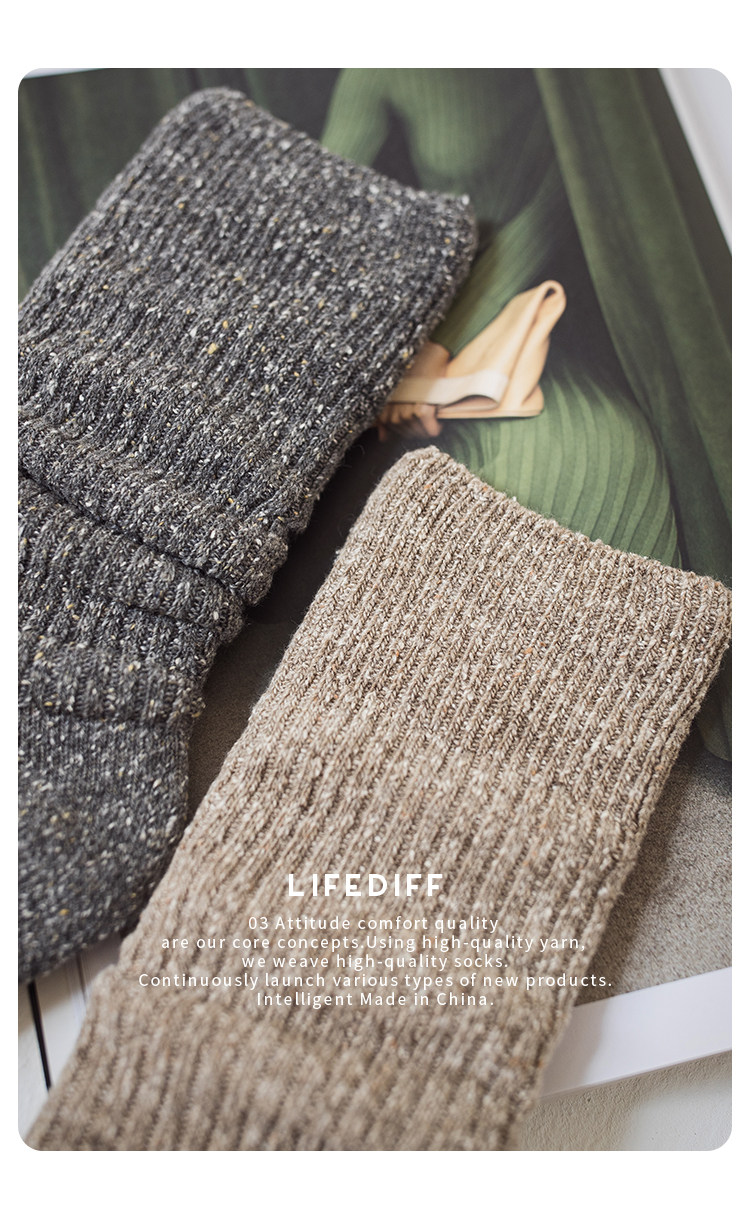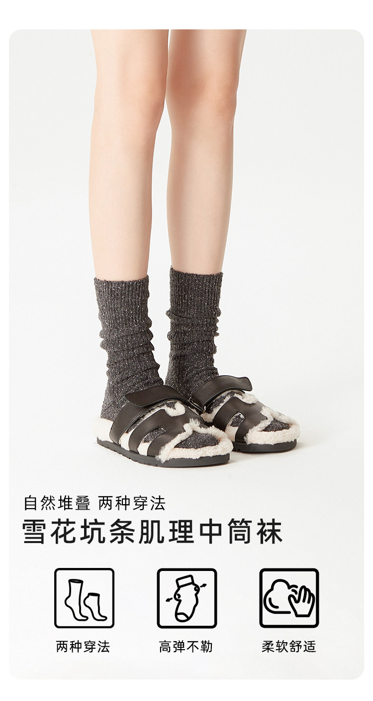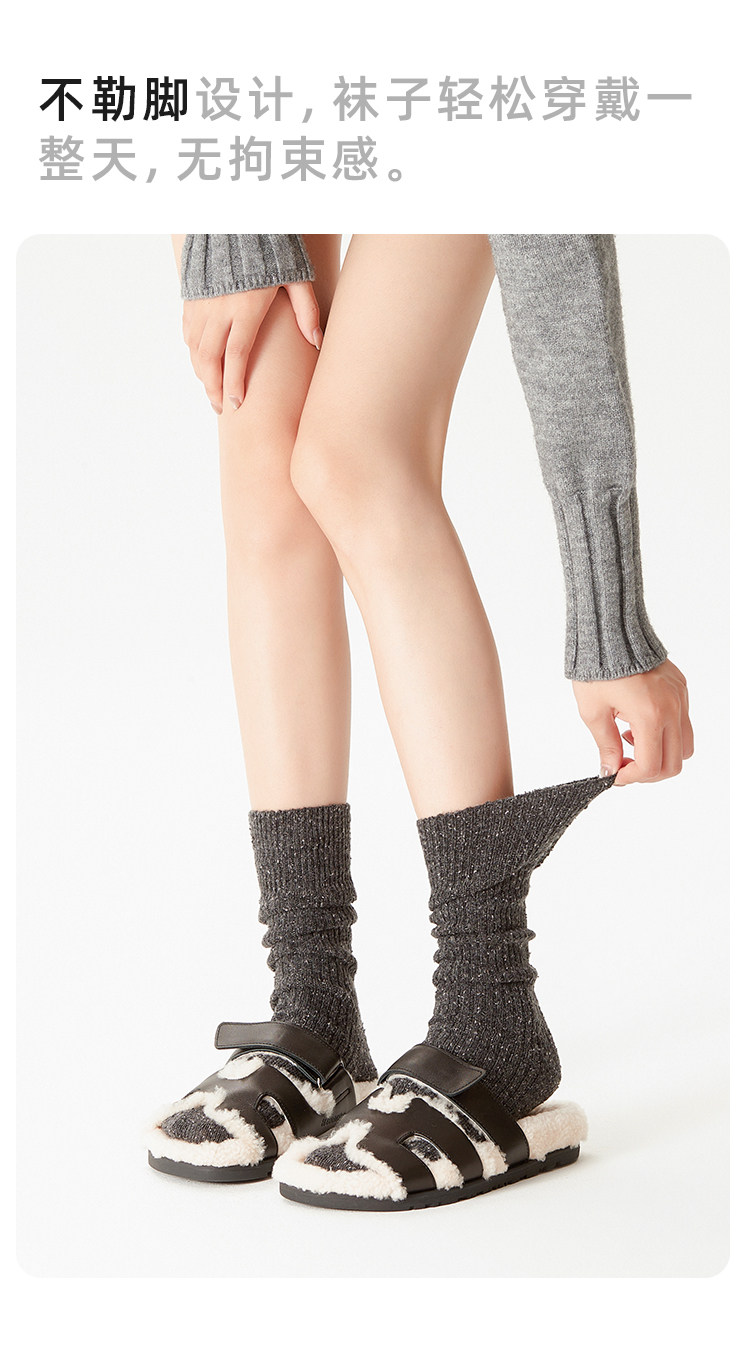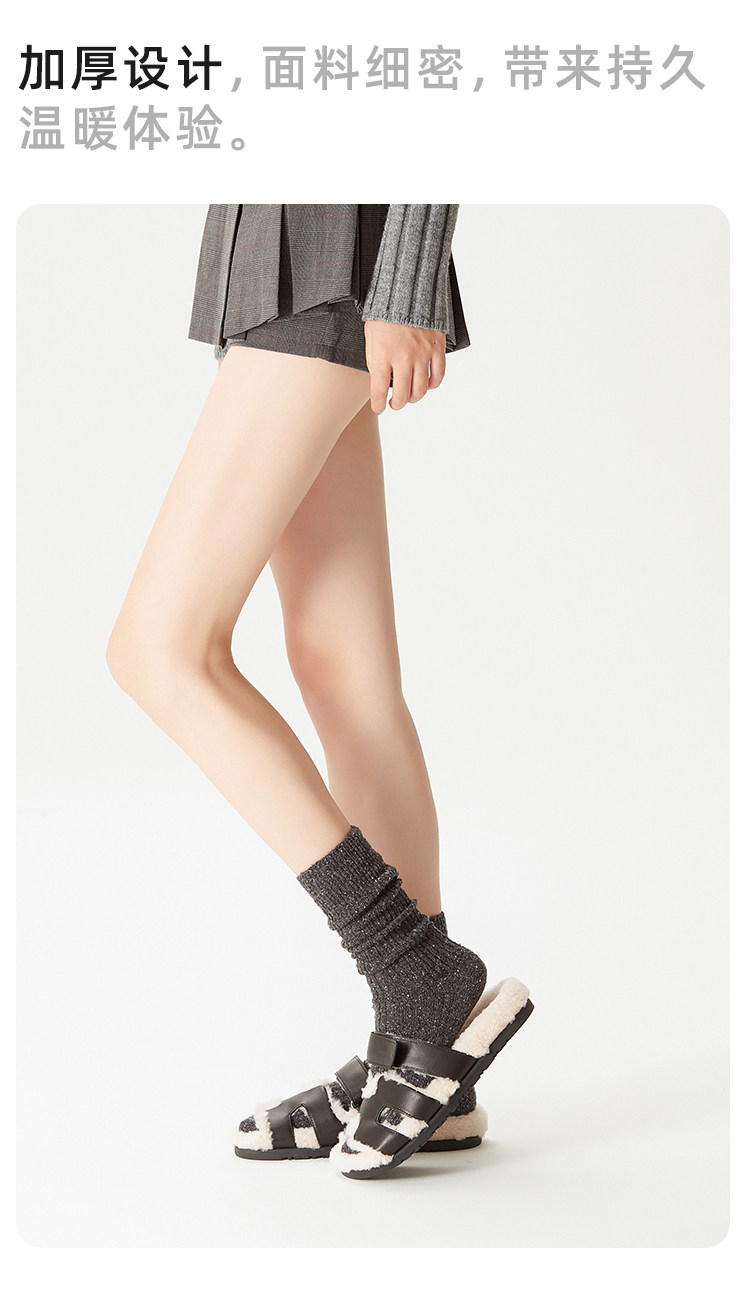 Dark gray vertical pattern heating socks for women in autumn and winter yarn stockings pile socks with small leather shoes and short boot socks