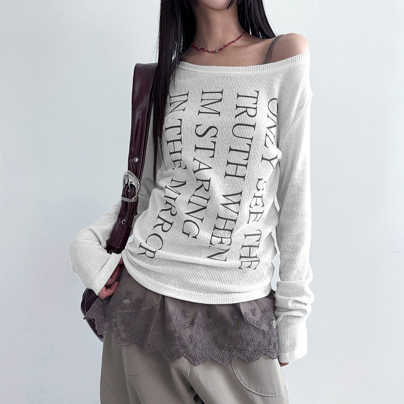 Slanted collar single shoulder casual top slanted collar single shoulder casual top