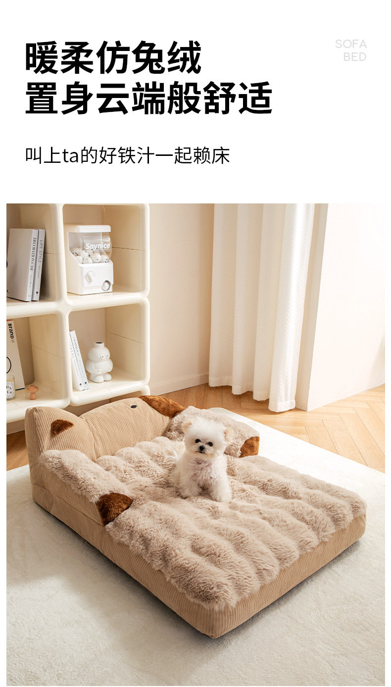 Dog Bed for All Seasons, Fully Removable and Washable, Dog Backrest Sofa, Dog Bed, Long Plush Sleeping Mat, Cat Bed, Thickened Pet Bed