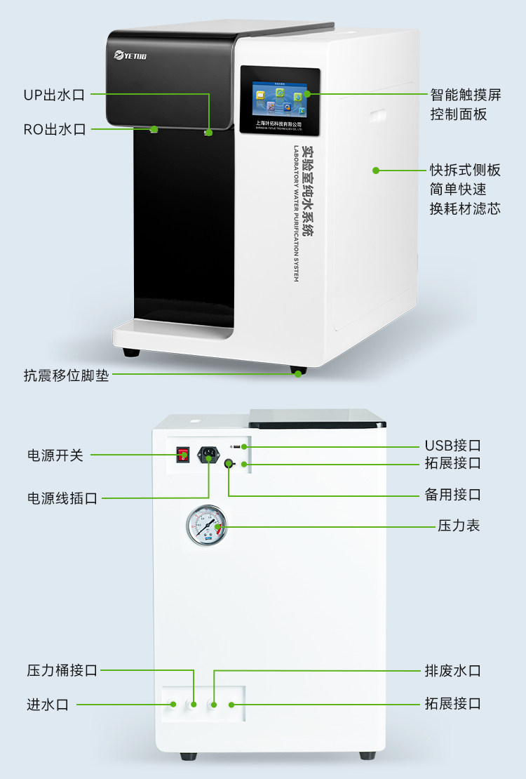 Shanghai Yetuo Ultra-Pure Water Machine Ytup-10E Laboratory Ultra-Pure Water Machine with Intelligent Control and Lcd Screen