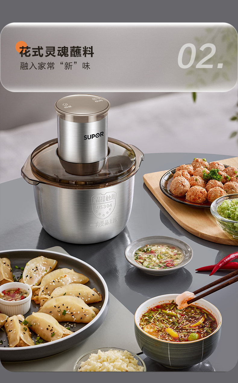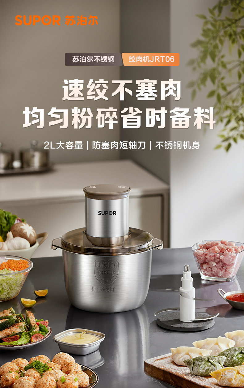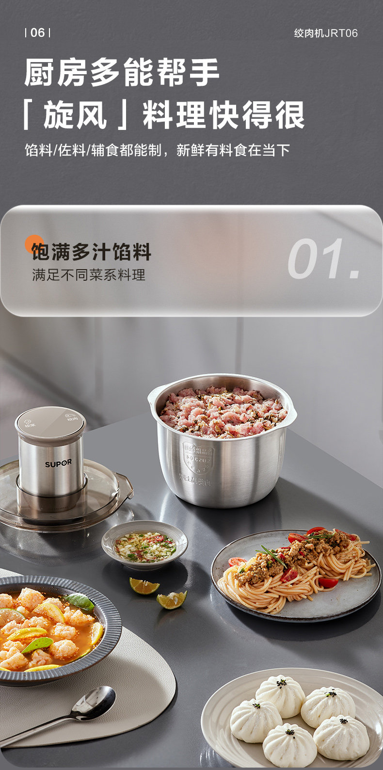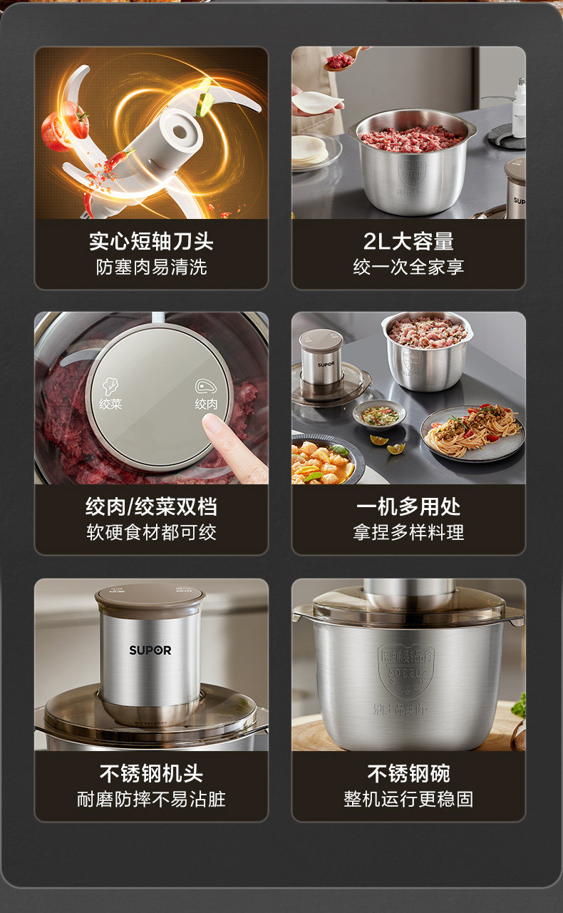 Supor Meat Grinder for Home Use, Fully Automatic Multifunctional Small Electric Food Processor, Meat Mincer, and Blender