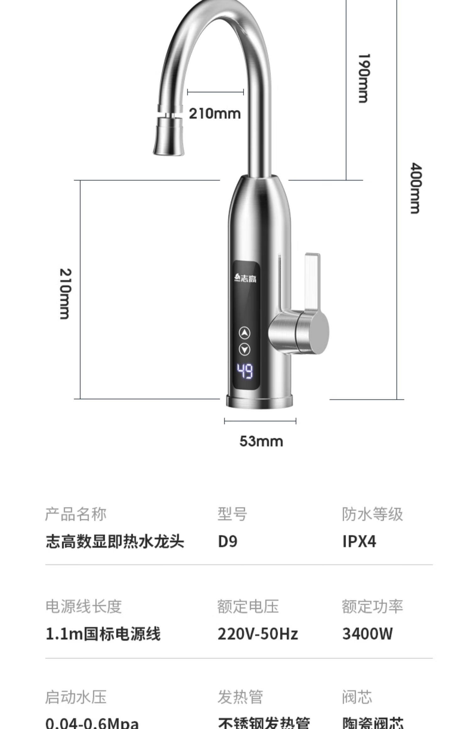Chigo electric hot water faucet tap water instant heating household kitchen balcony bathroom cold water heater
