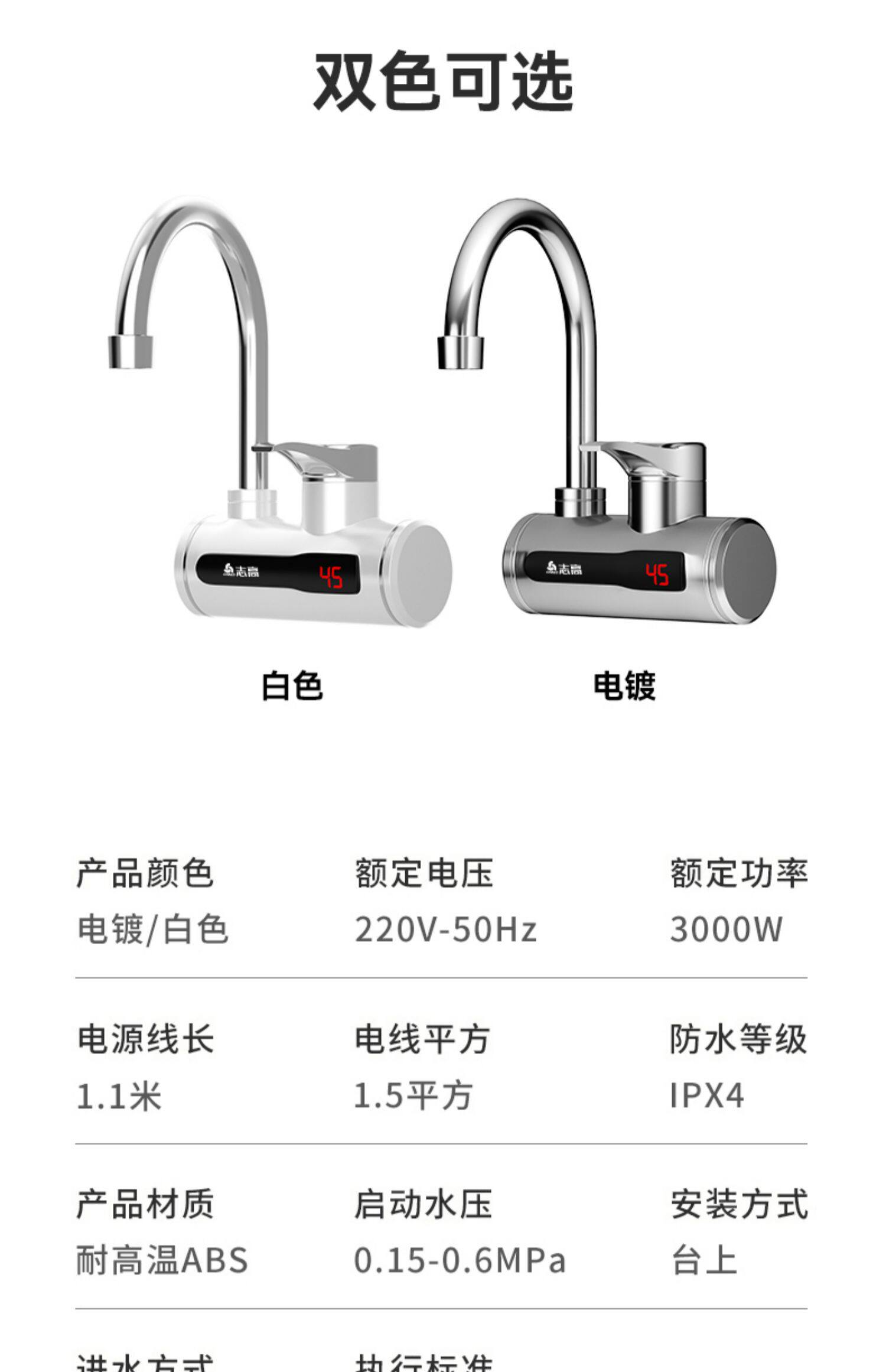 Color Classification White + Leakage Protection,Silver + Leakage Protection,[Adjustable Temperature]Side Water Inlet - White + Leakage Protection,[Adjustable Temperature]Side Water Inlet - Silver + Leakage Protection,White + Missing Warranty,White Leakage Guarantee,Silver Leakage Guarantee,White with Leakage Guarantee,Silver Leakage Guarantee