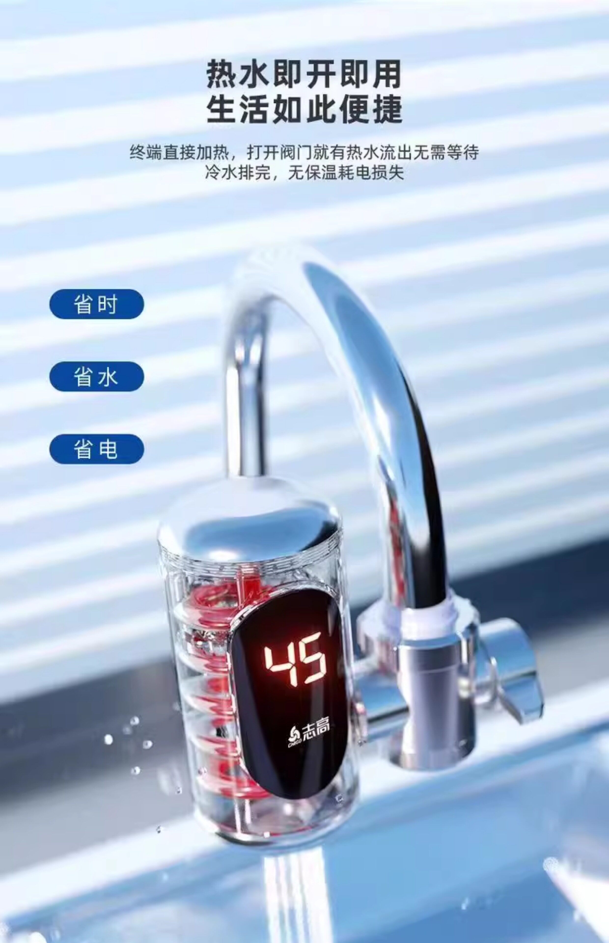 Zhigao Electric Hot Water Faucet for Home Use, Instant Heating Type, Suitable for Bathroom and Balcony, Small Water Heater for Tap Water