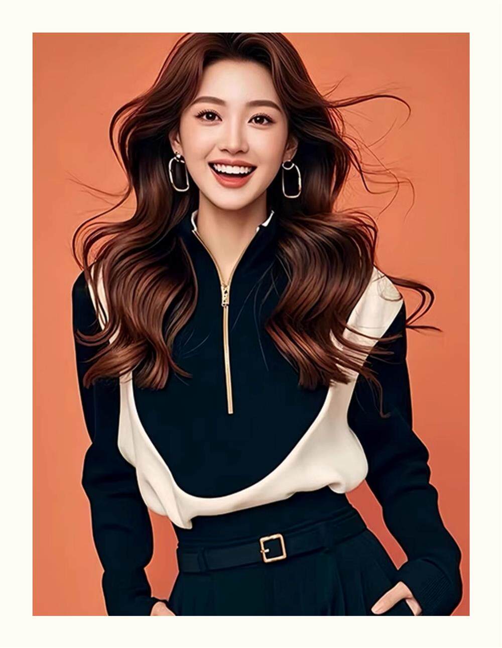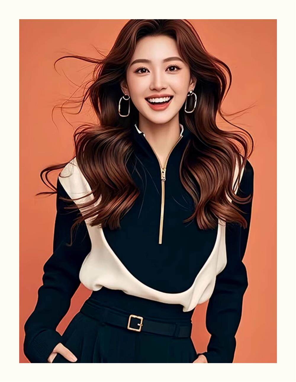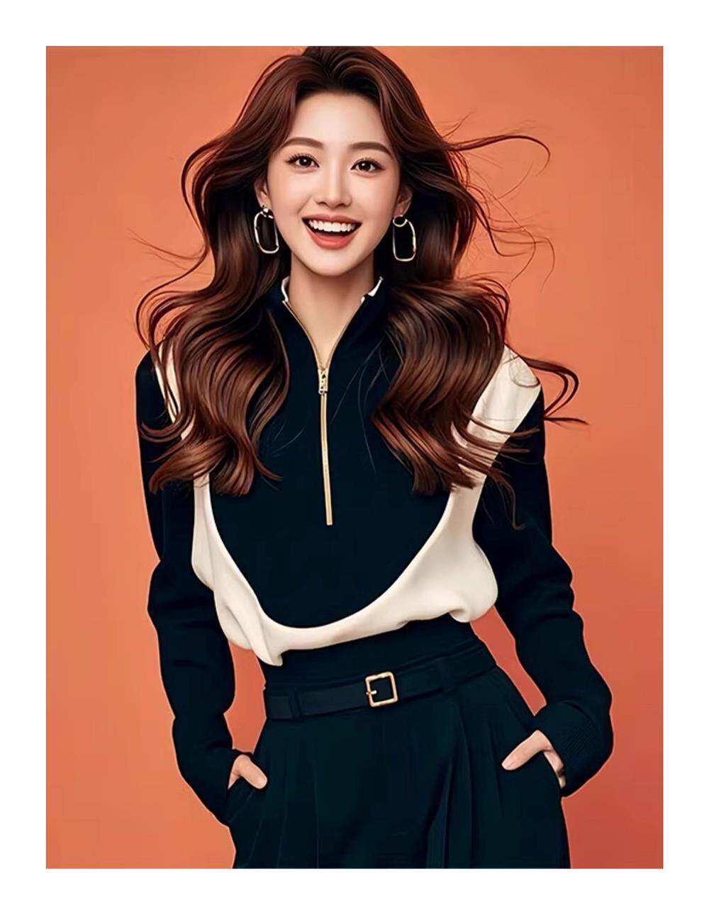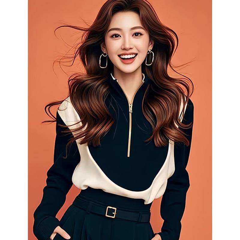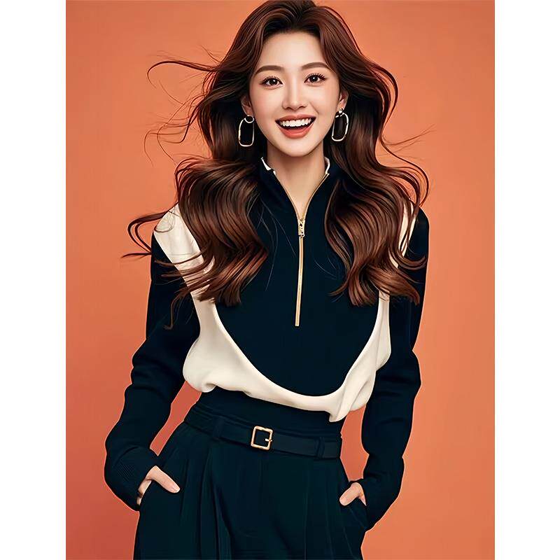 Korean-Style Chic Black and White Color-Blocking Half-Zip Sweatshirt, New Early Autumn Model, Cool and Stylish, Super Attractive and Stylish Top