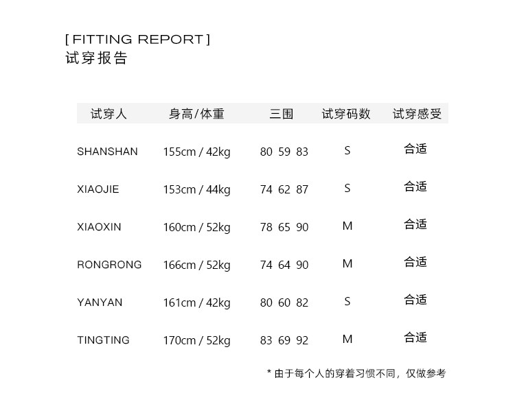 China (cm) 160-165/84-86 165-170 / 88-90 167-172 / 92-96 168-173 / 98-102 170-176 / 106-110