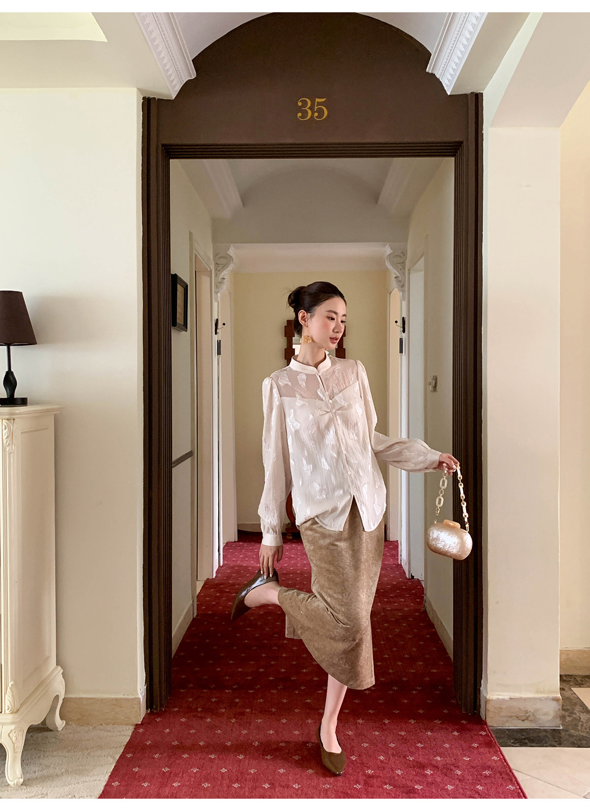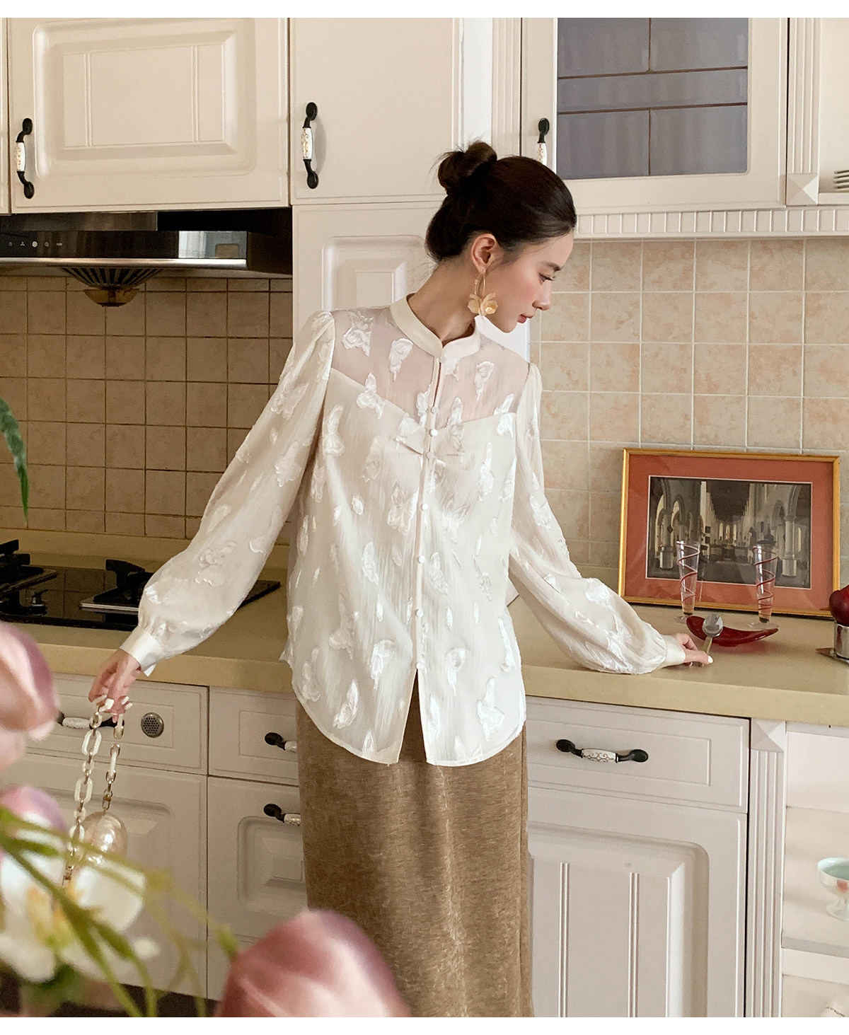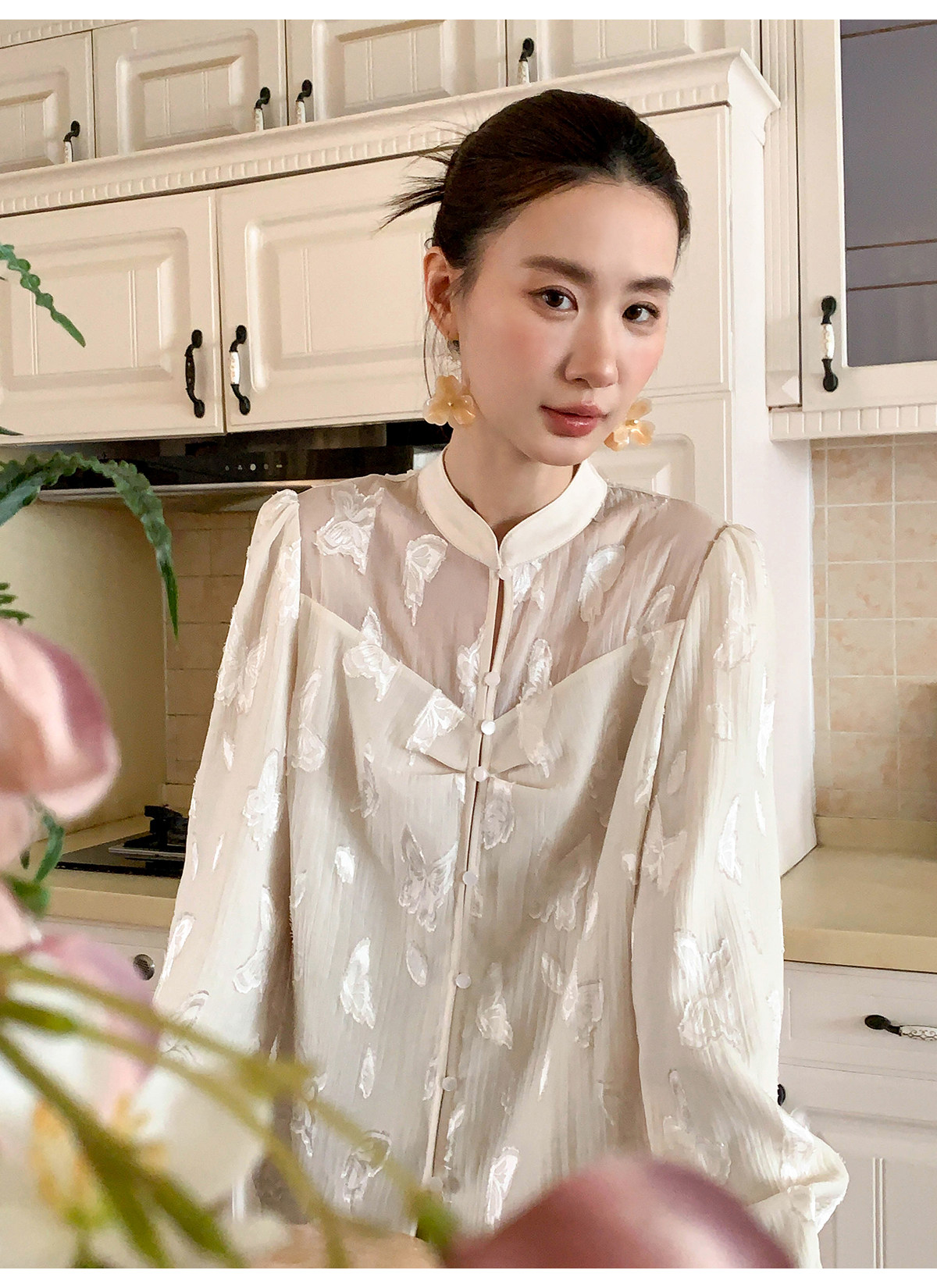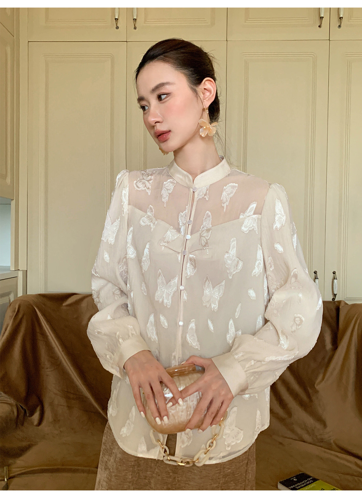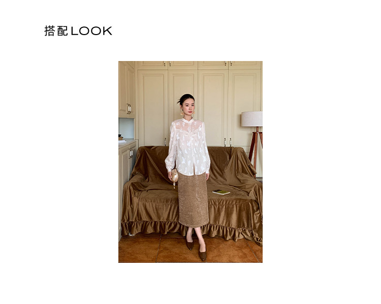 Xxning New Chinese Style Butterfly Jacquard Satin Shirt for Women, Early Spring National Style Long Sleeve Versatile Niche Casual Top