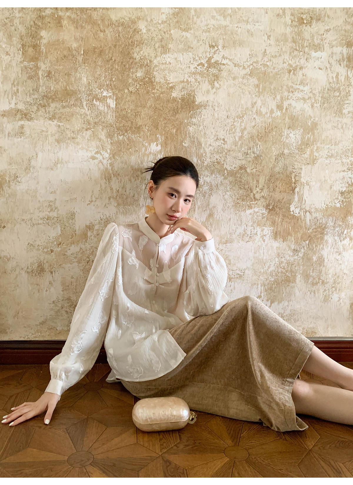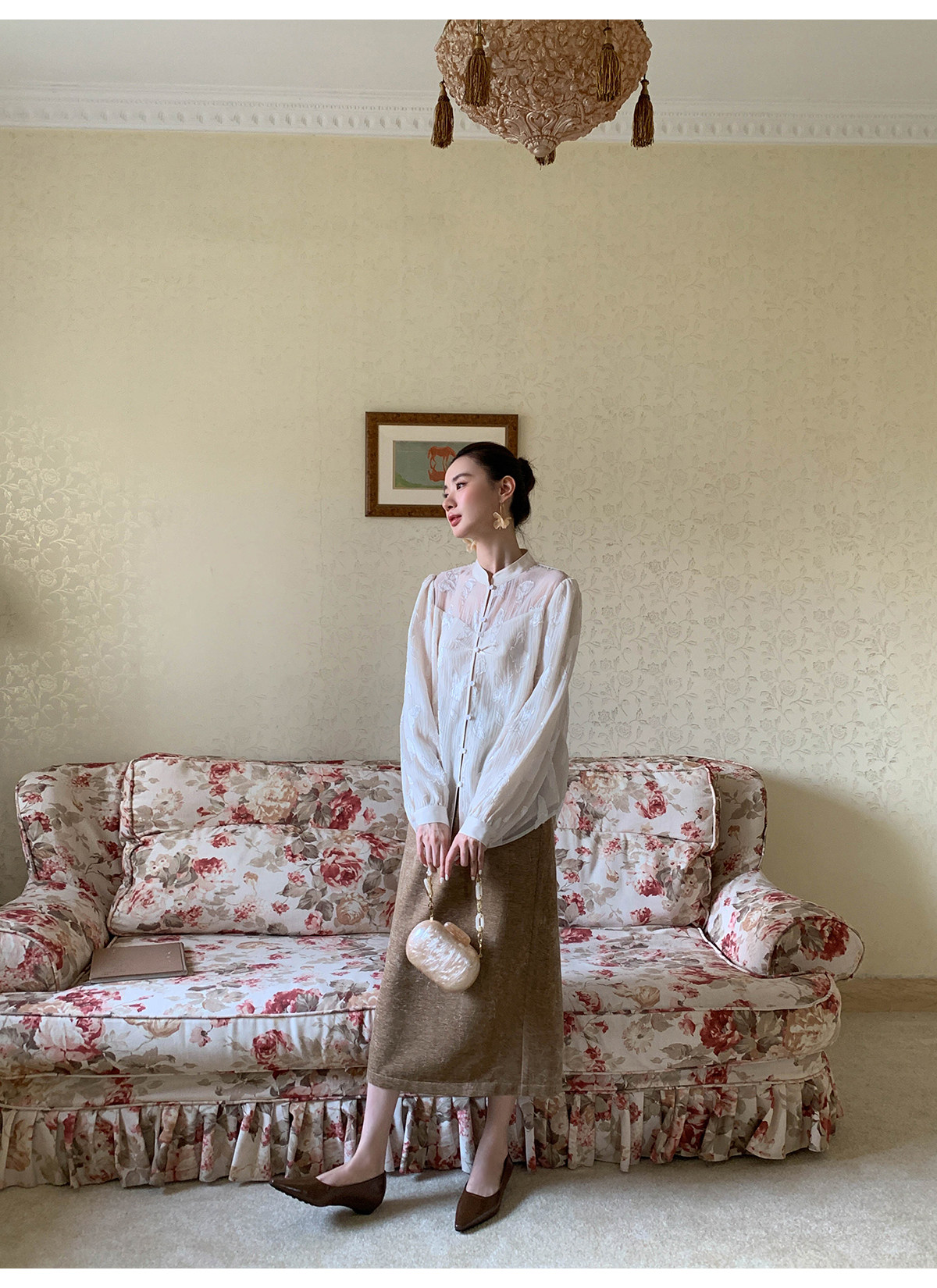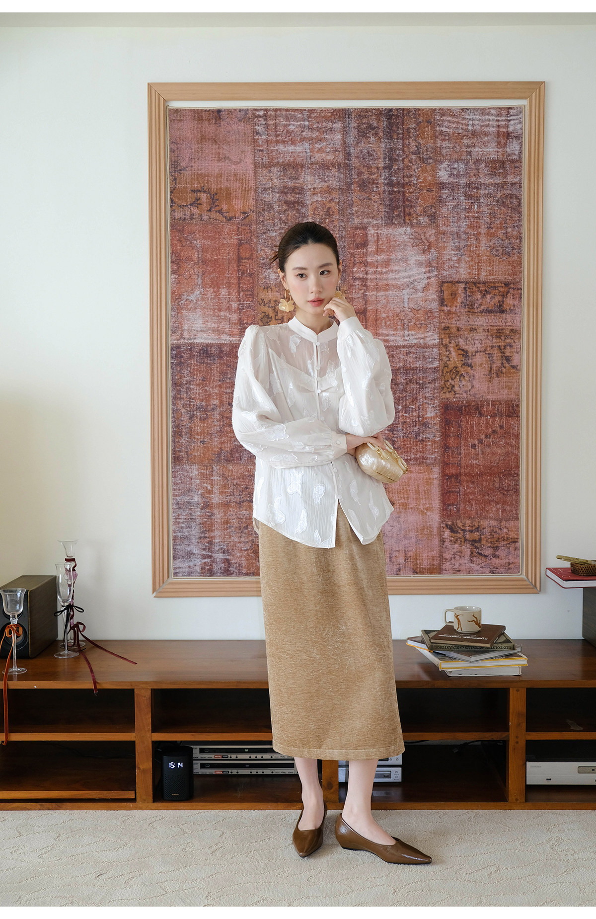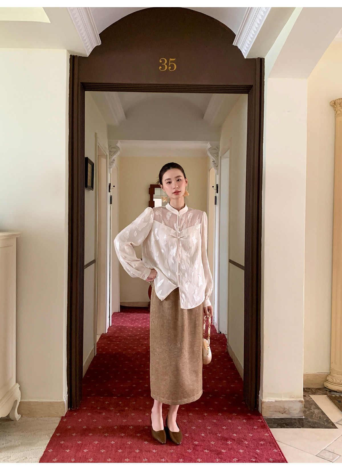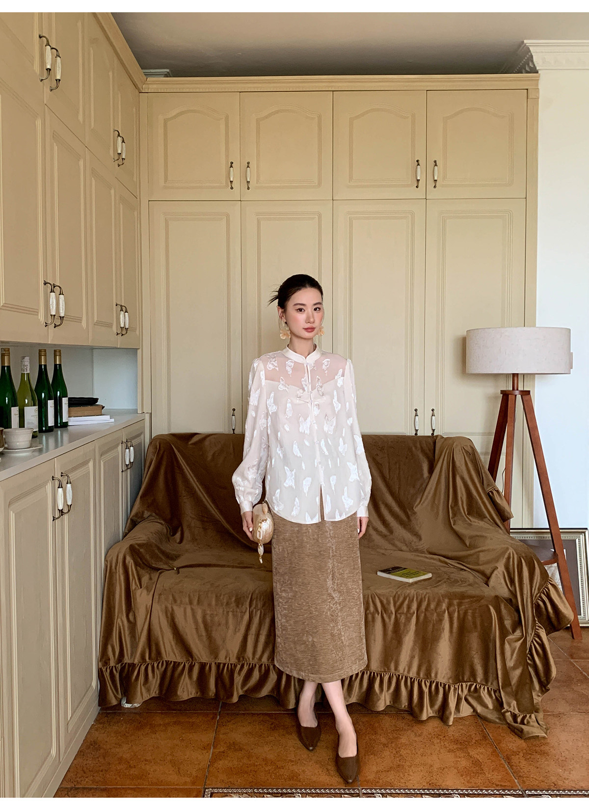 Xxning New Chinese Style Butterfly Jacquard Satin Shirt for Women, Early Spring National Style Long Sleeve Versatile Niche Casual Top