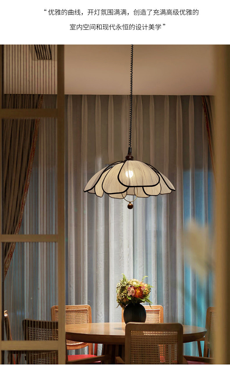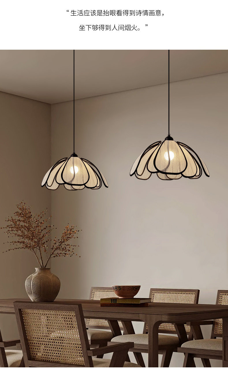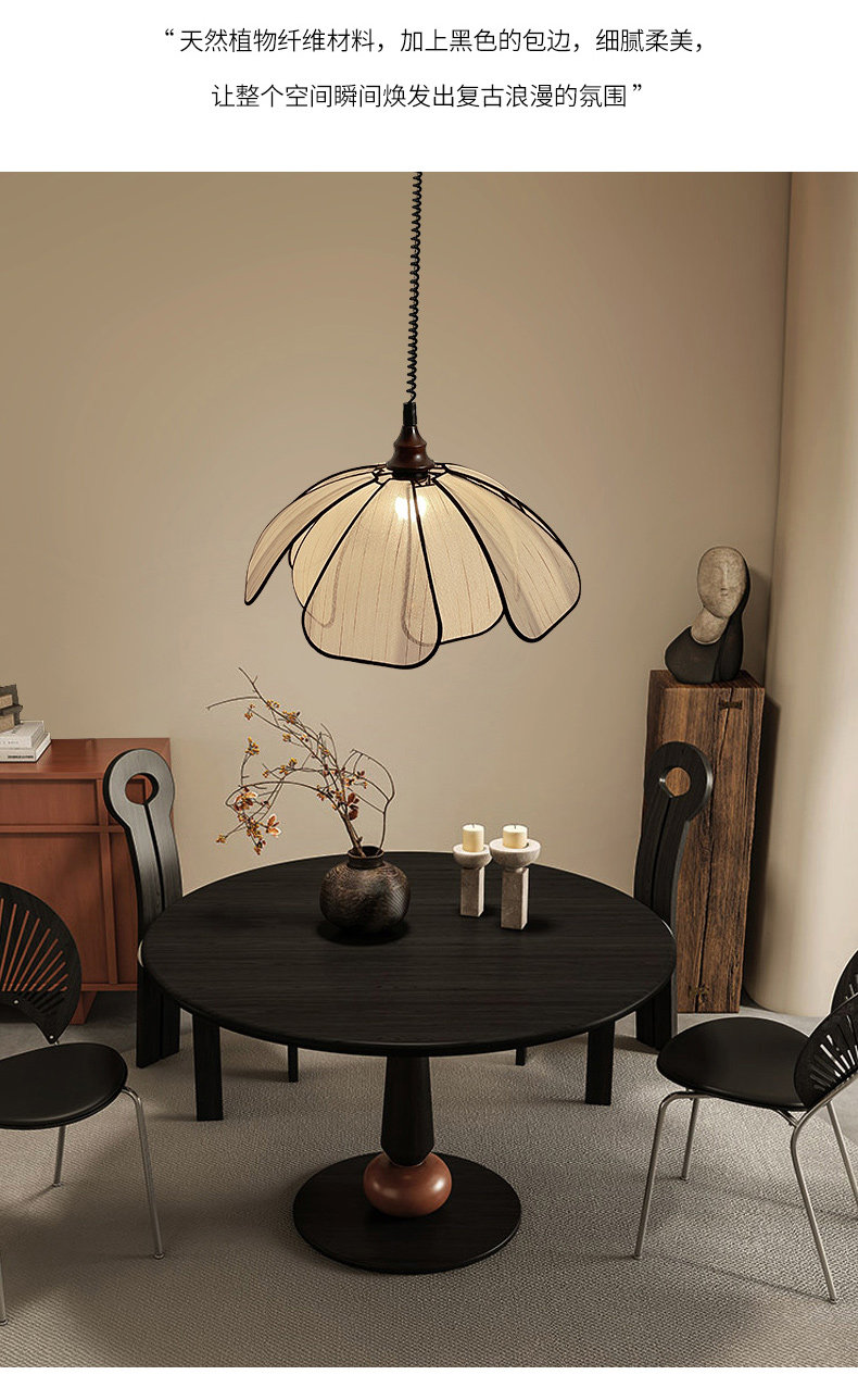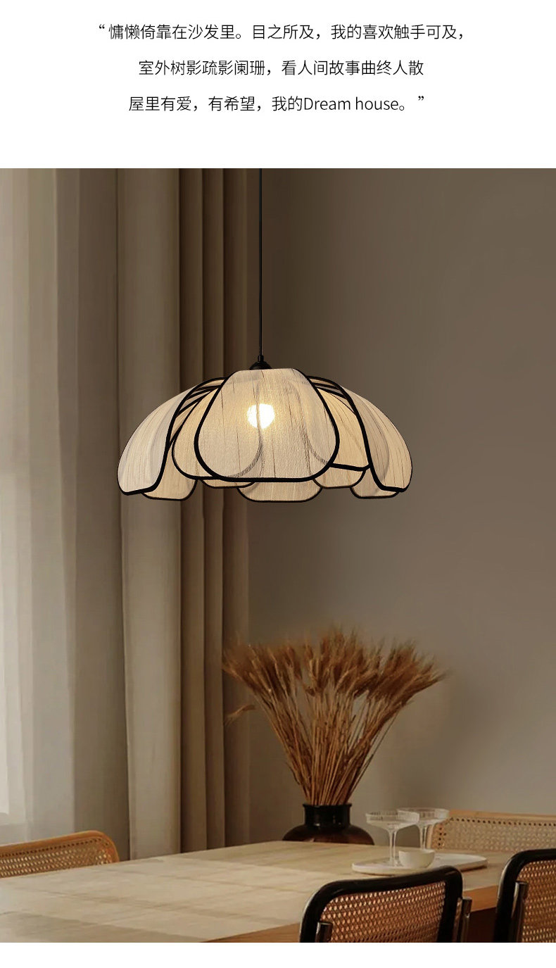 French Vintage Fabric Petal Dining Room Chandelier, Japanese Wabi-Sabi Style, Adjustable Height Bar Counter Tea Room Lighting