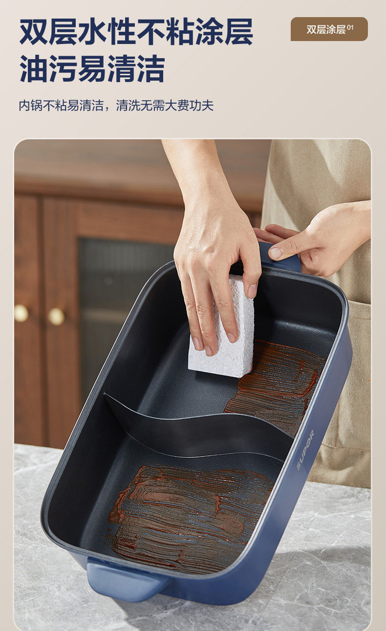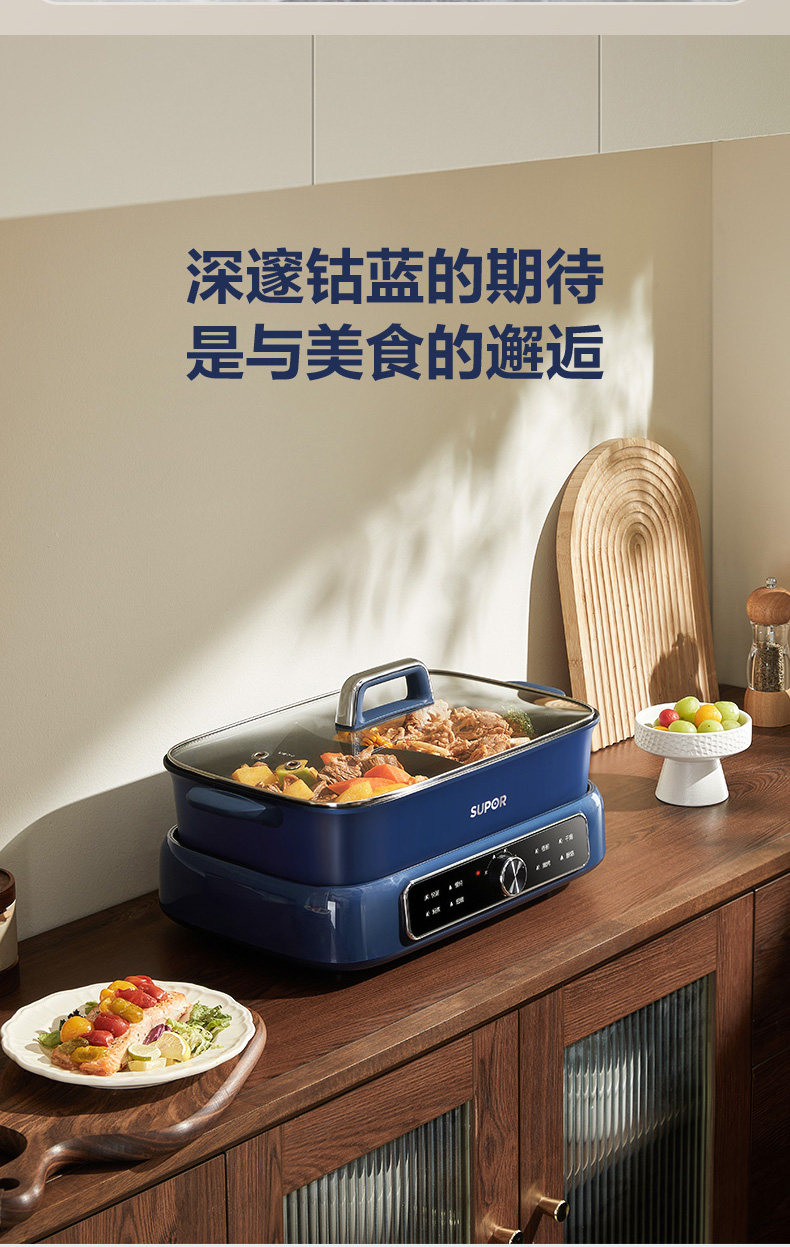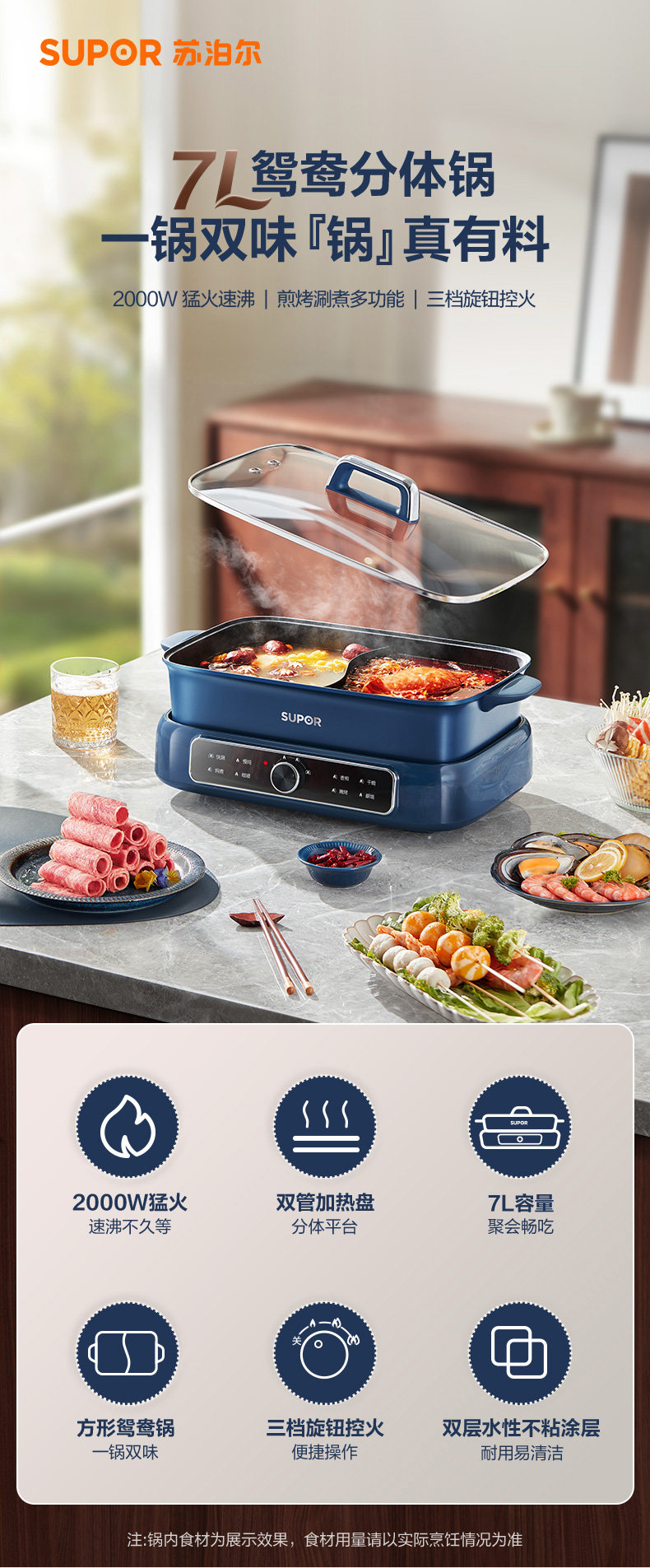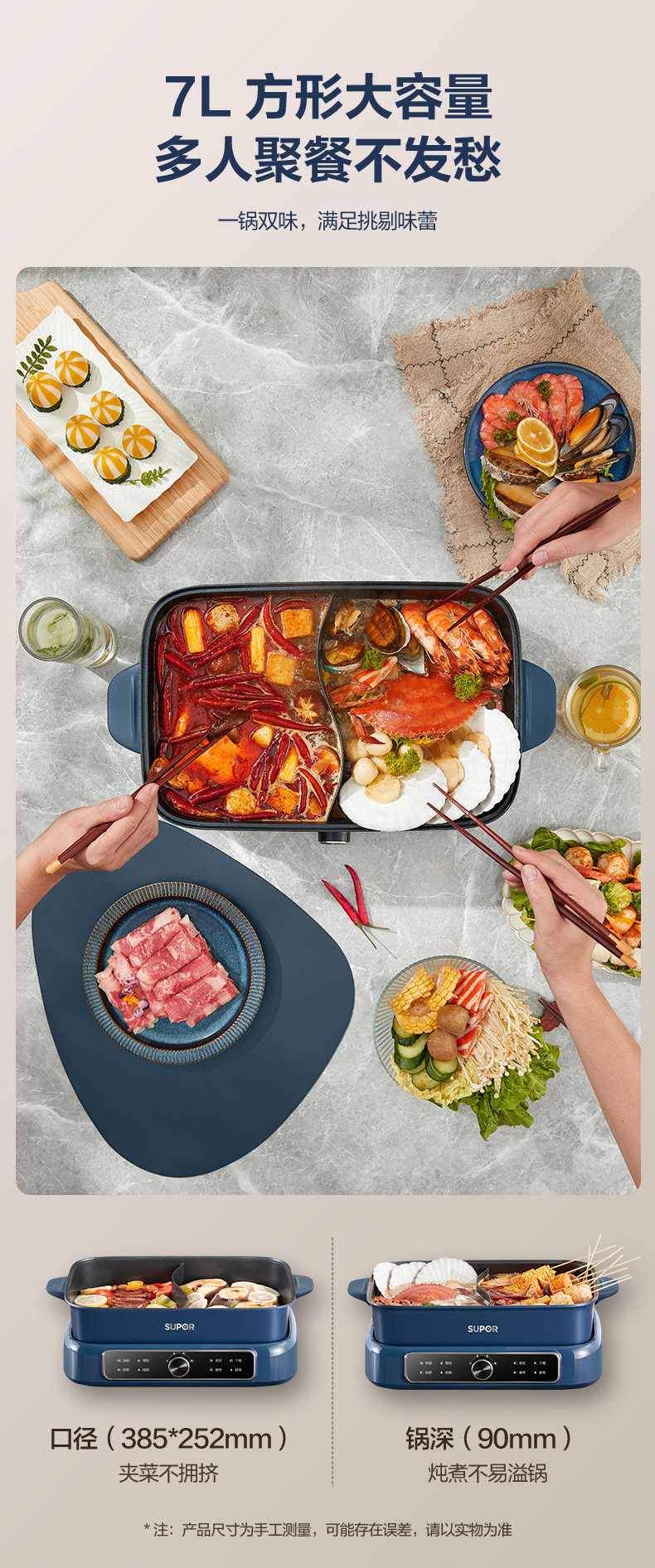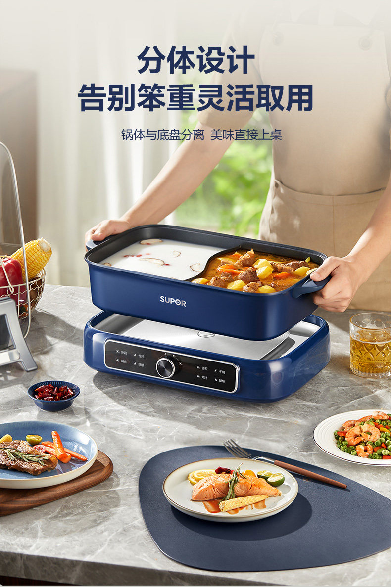 Supor Detachable Hot Pot for Home Use, 7L Large Capacity Electric Cooking Pot, Multifunctional Dual-Compartment Electric Hot Pot