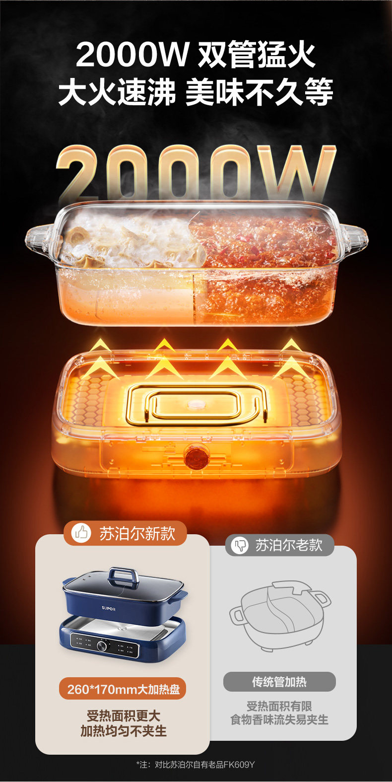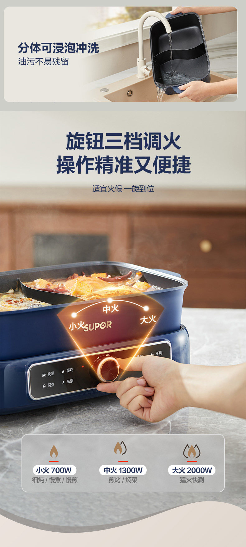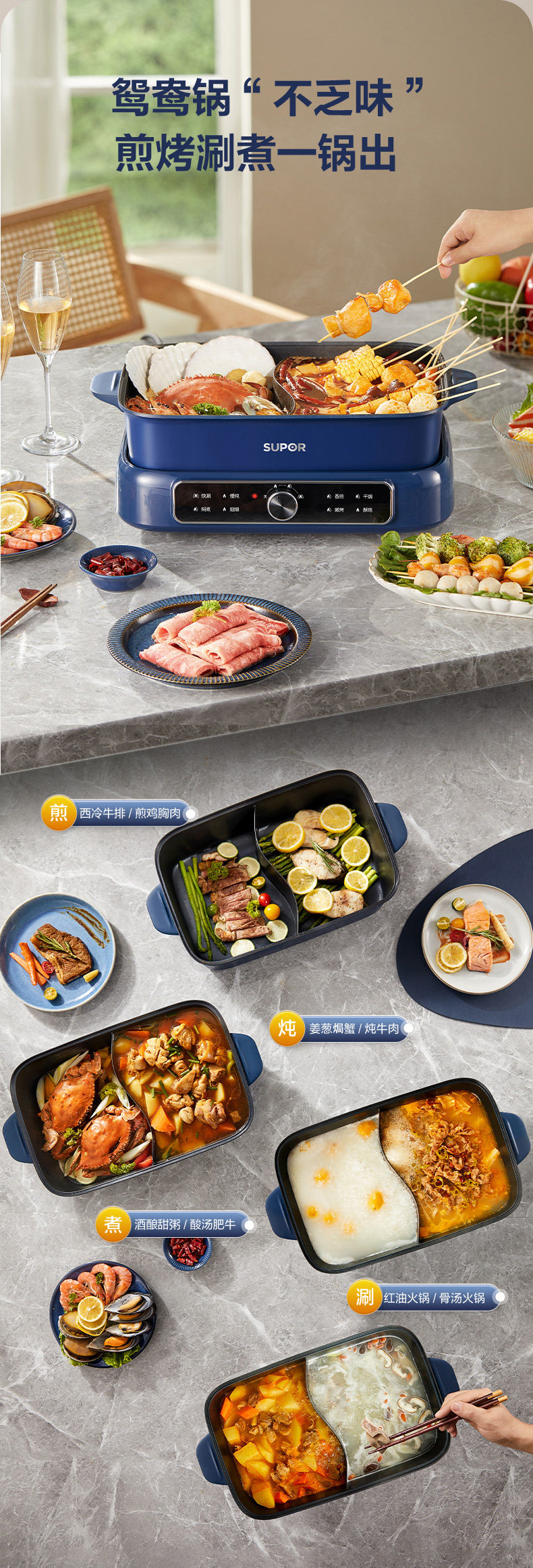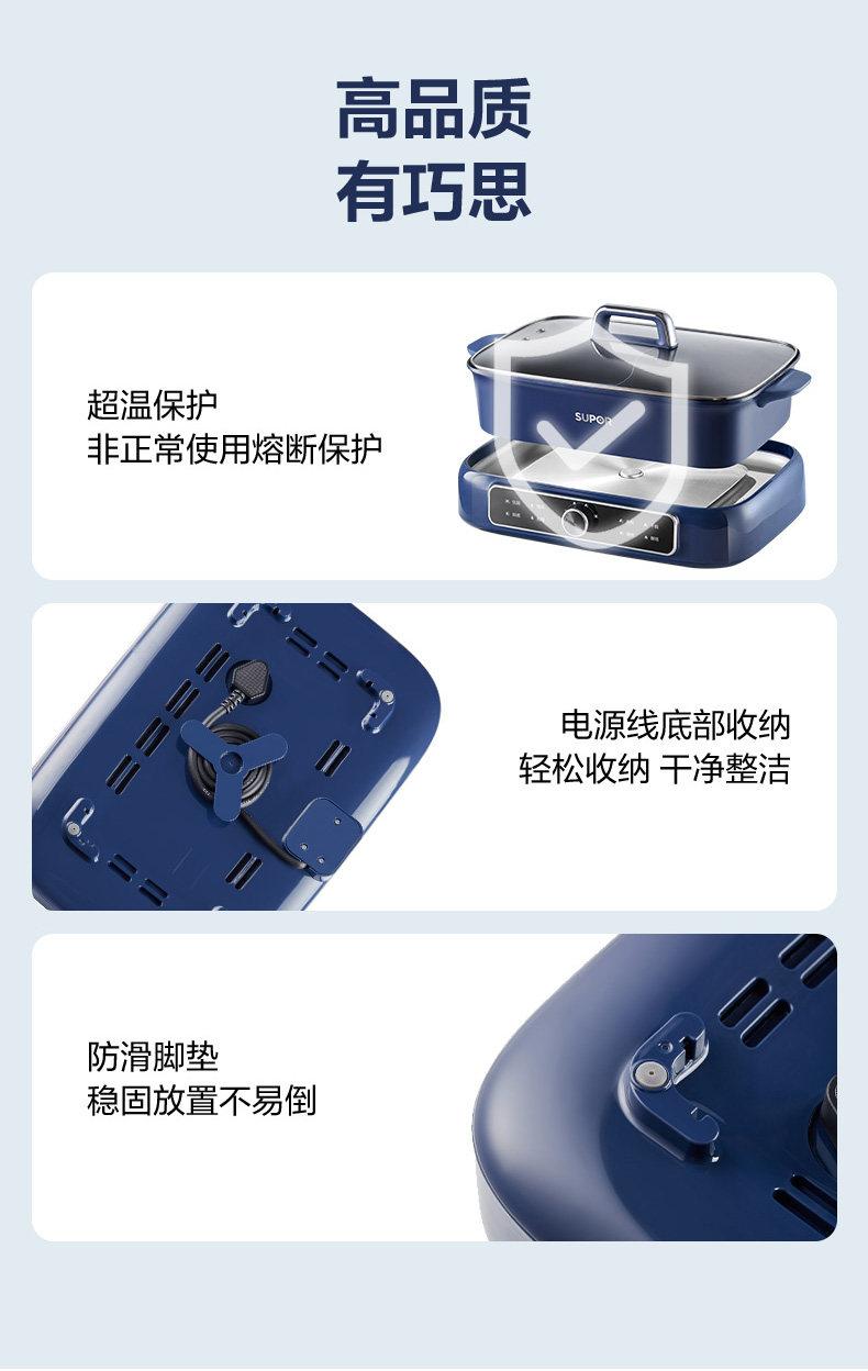 Supor Detachable Hot Pot for Home Use, 7L Large Capacity Electric Cooking Pot, Multifunctional Dual-Compartment Electric Hot Pot
